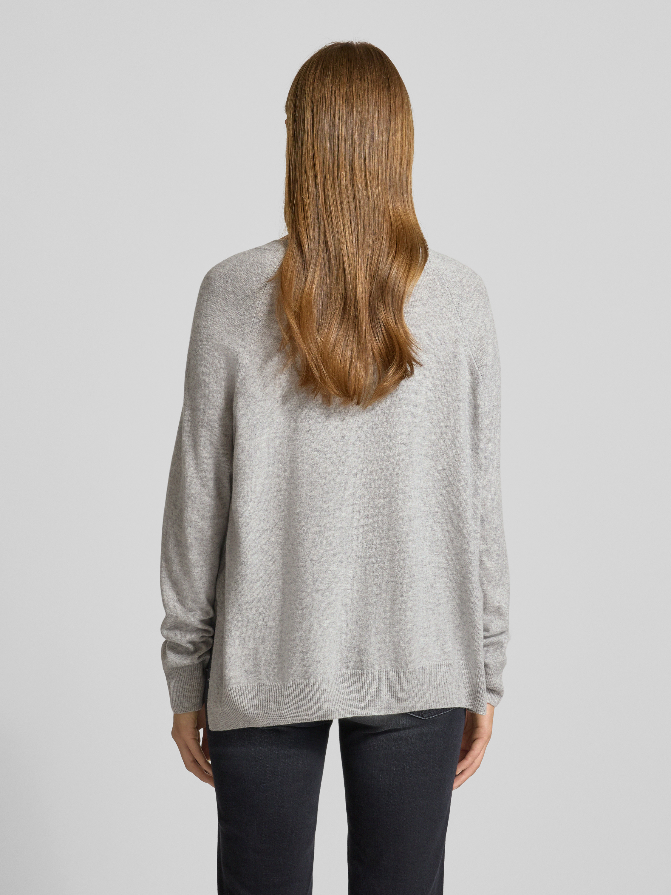 Gebreide pullover van kasjmiermix met raglanmouwen, model 'NIKITA' in lichtgrijs