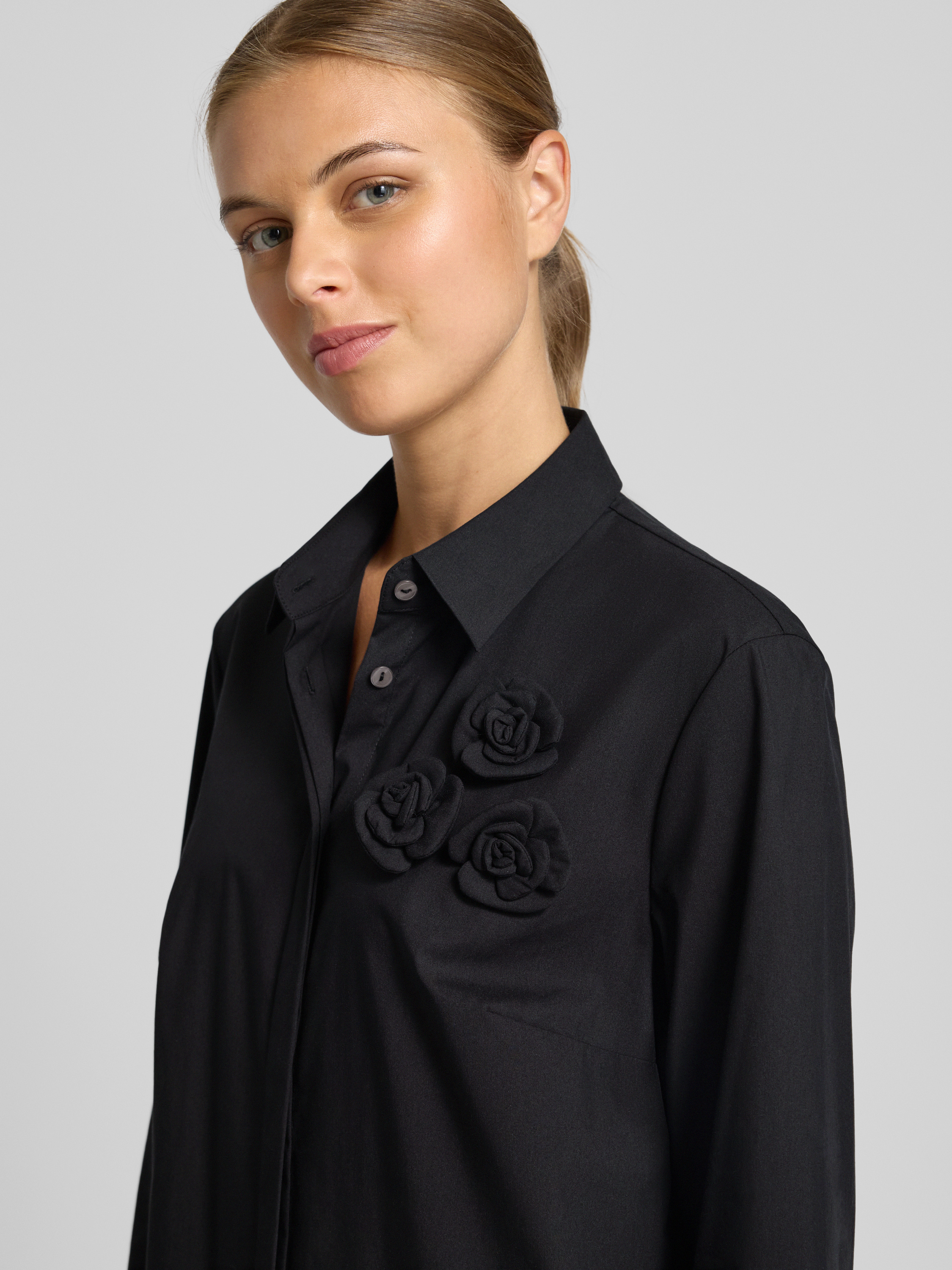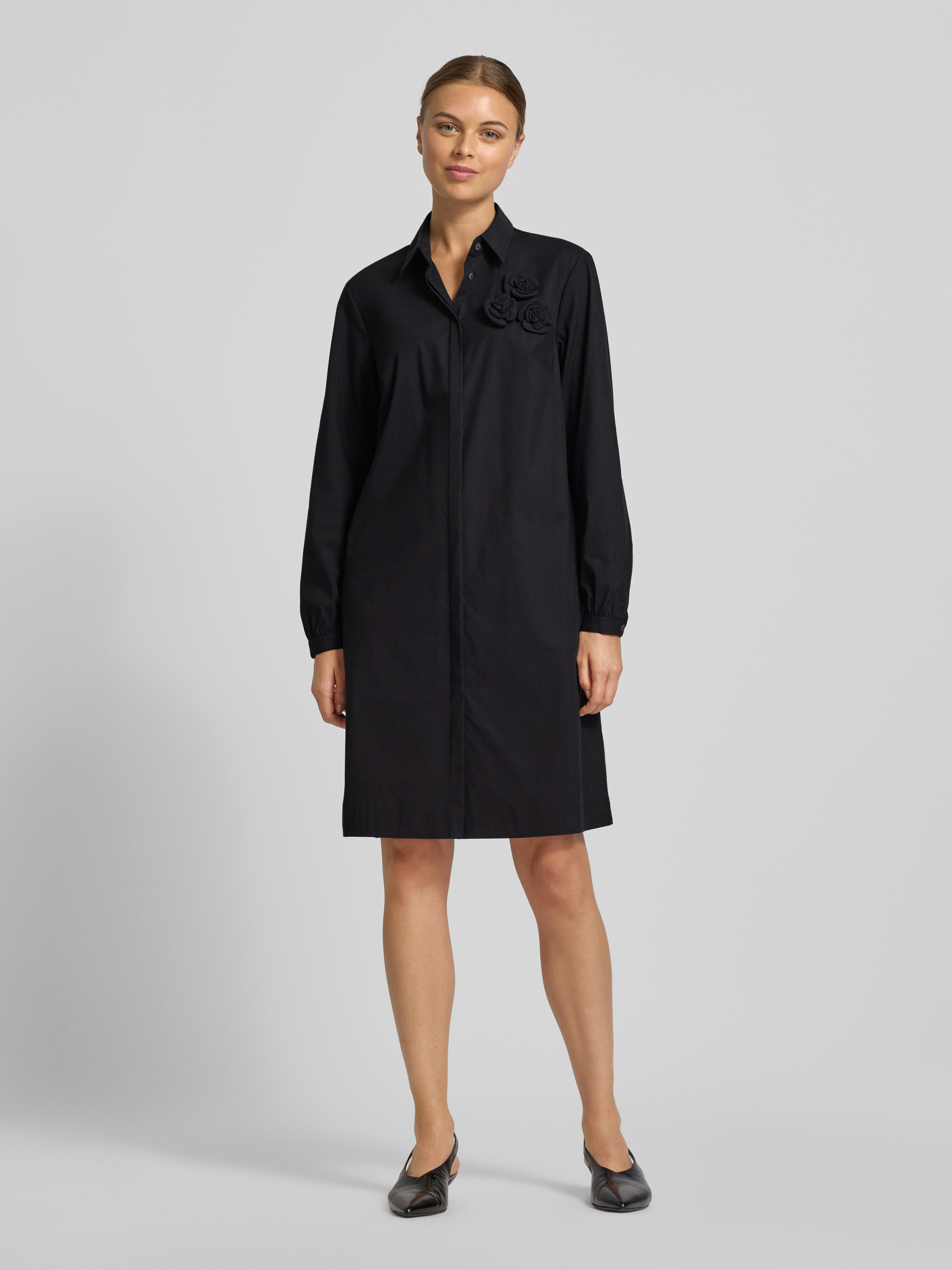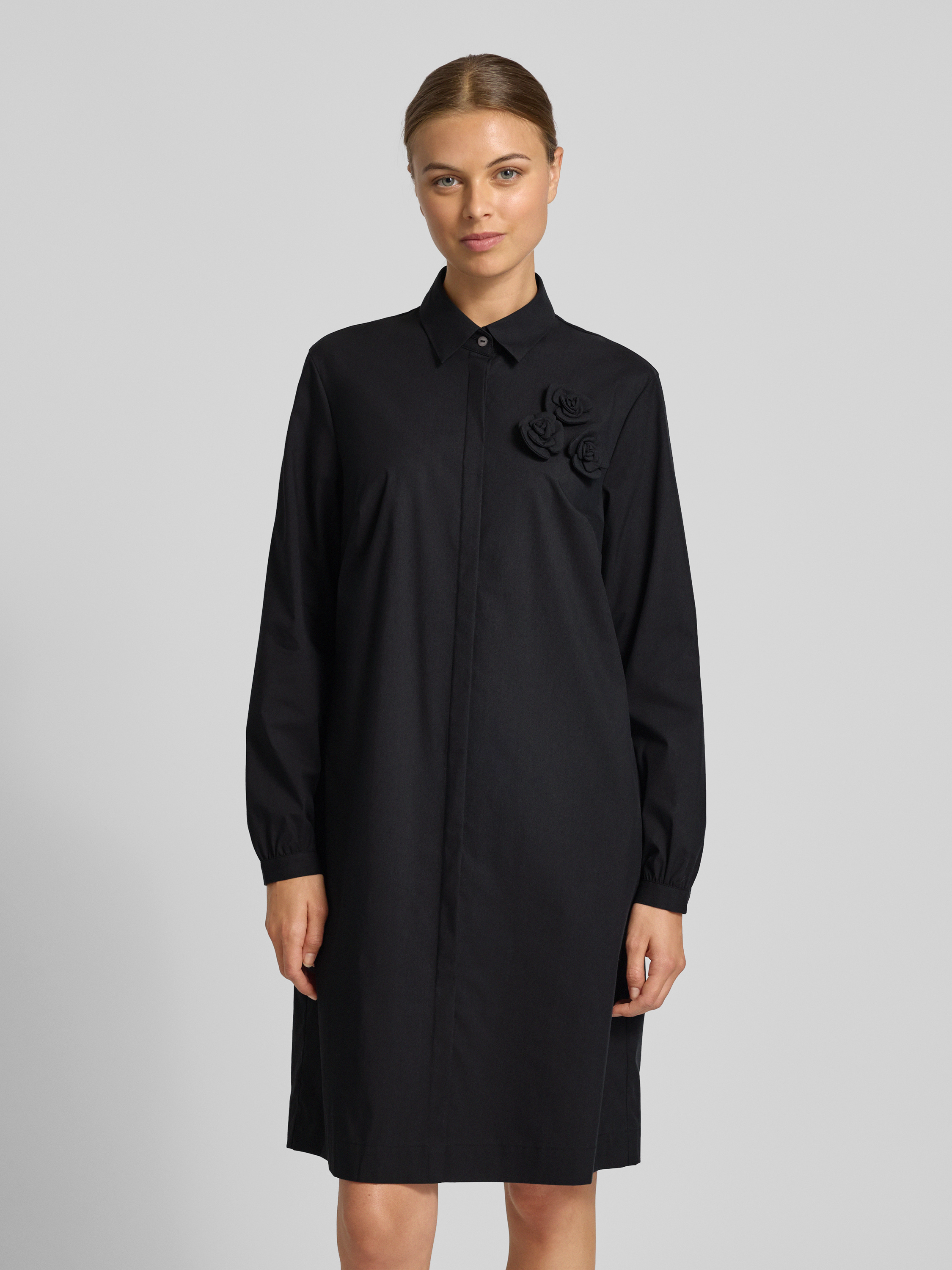 0039 ItalyKnielange jurk met siergarnering, model 'DANNIKA' in zwart