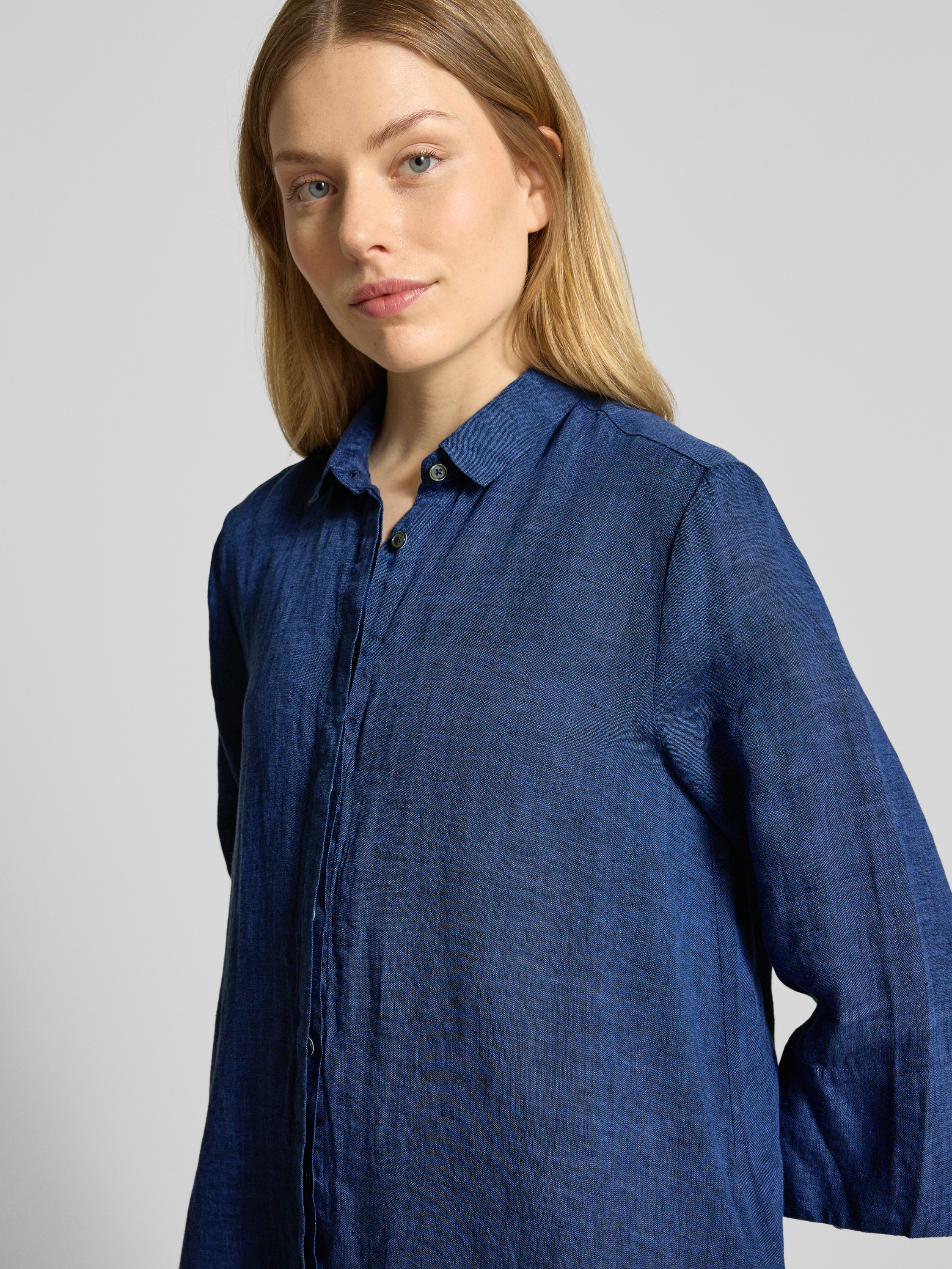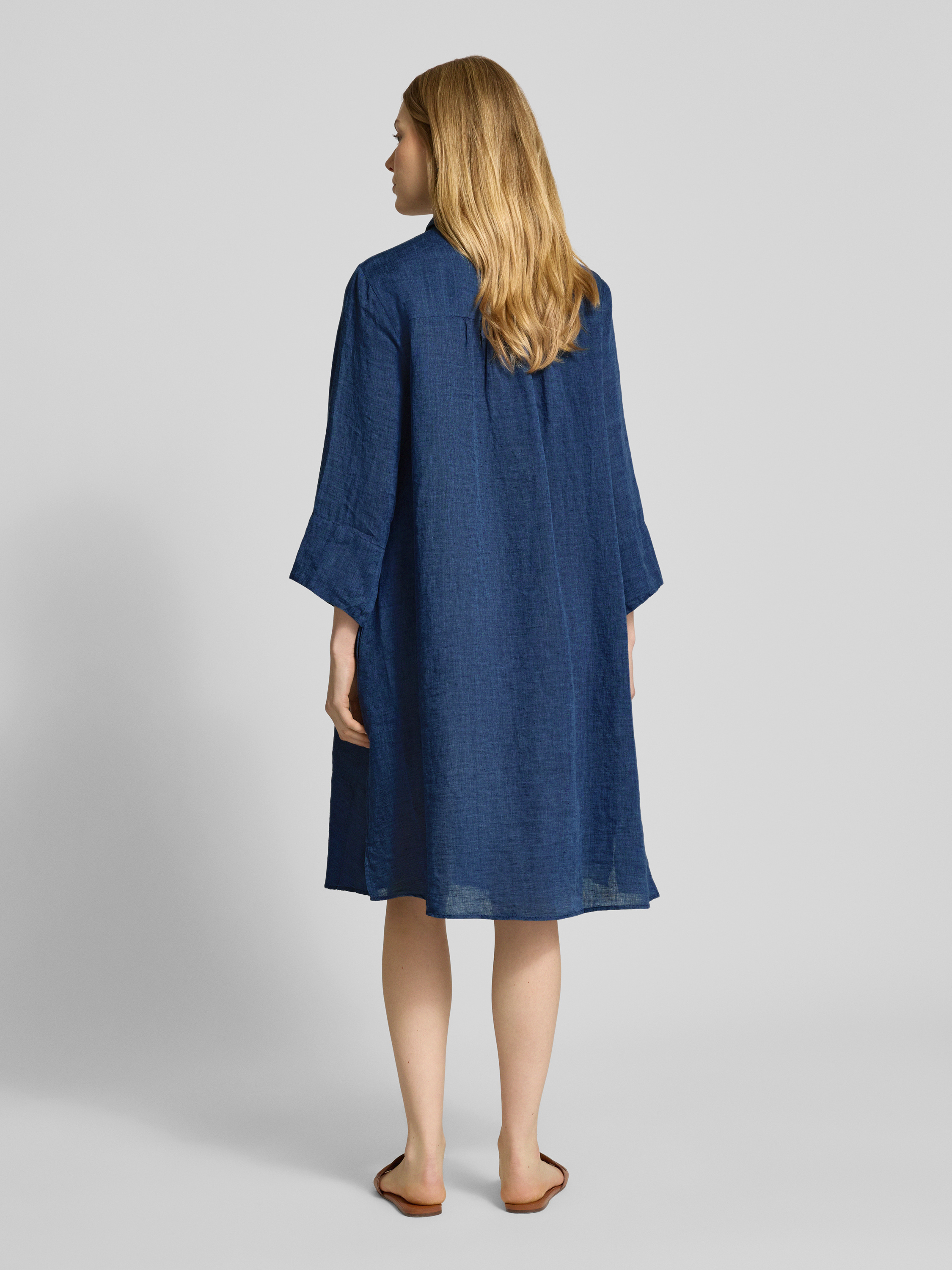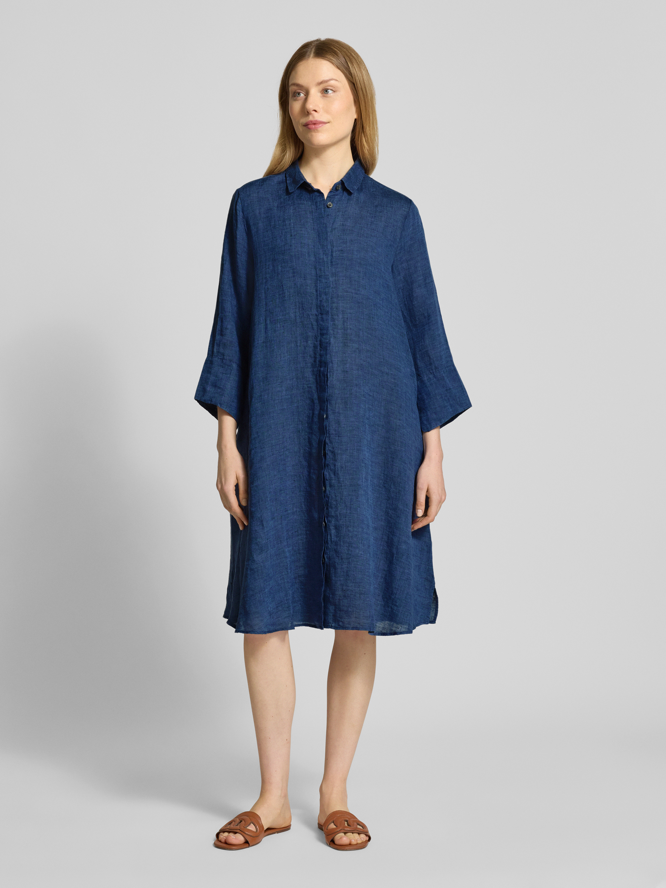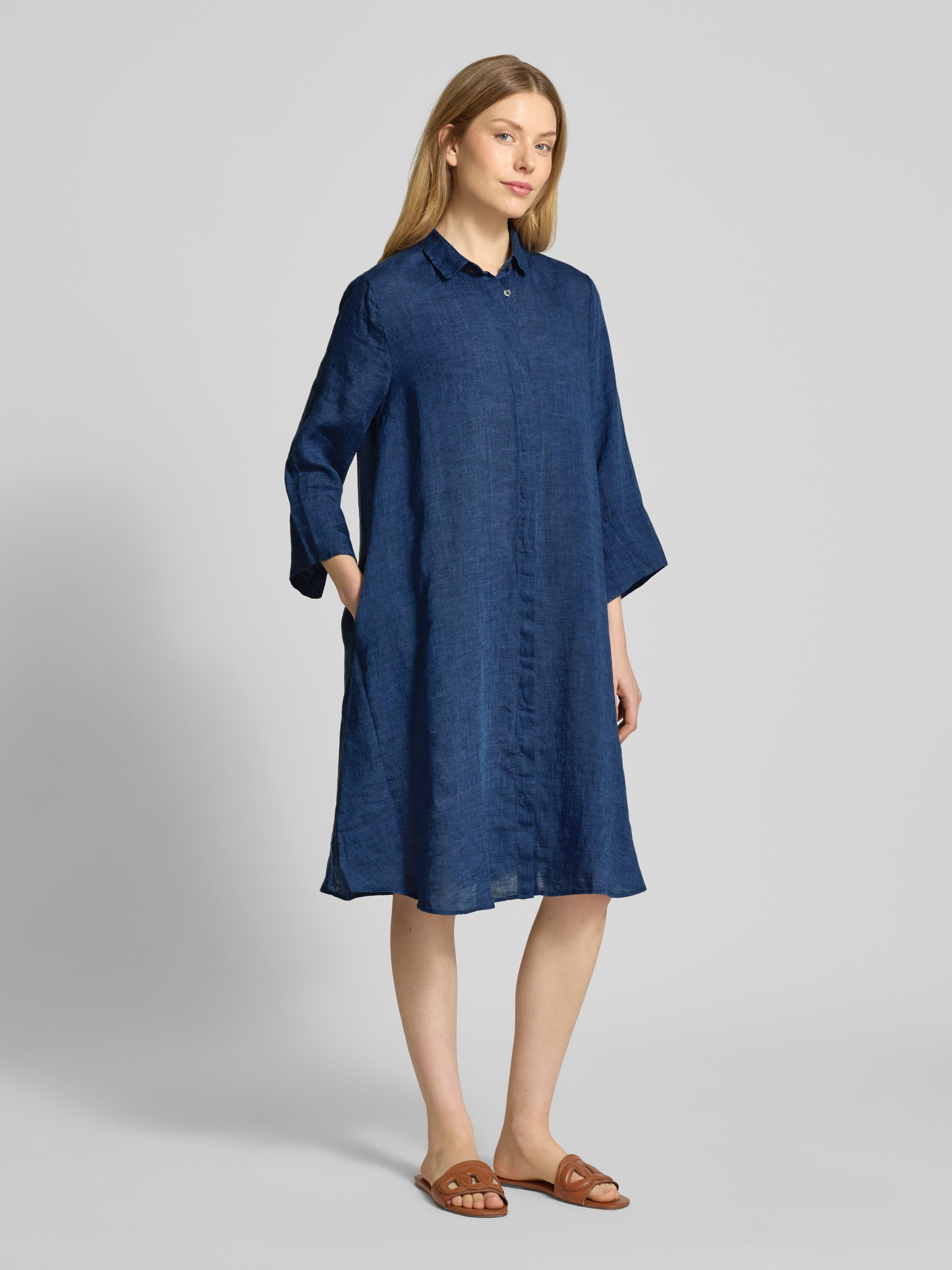 Knielange overhemdjurk van linnen met 3/4-mouwen, model 'GRACY' in marineblauw