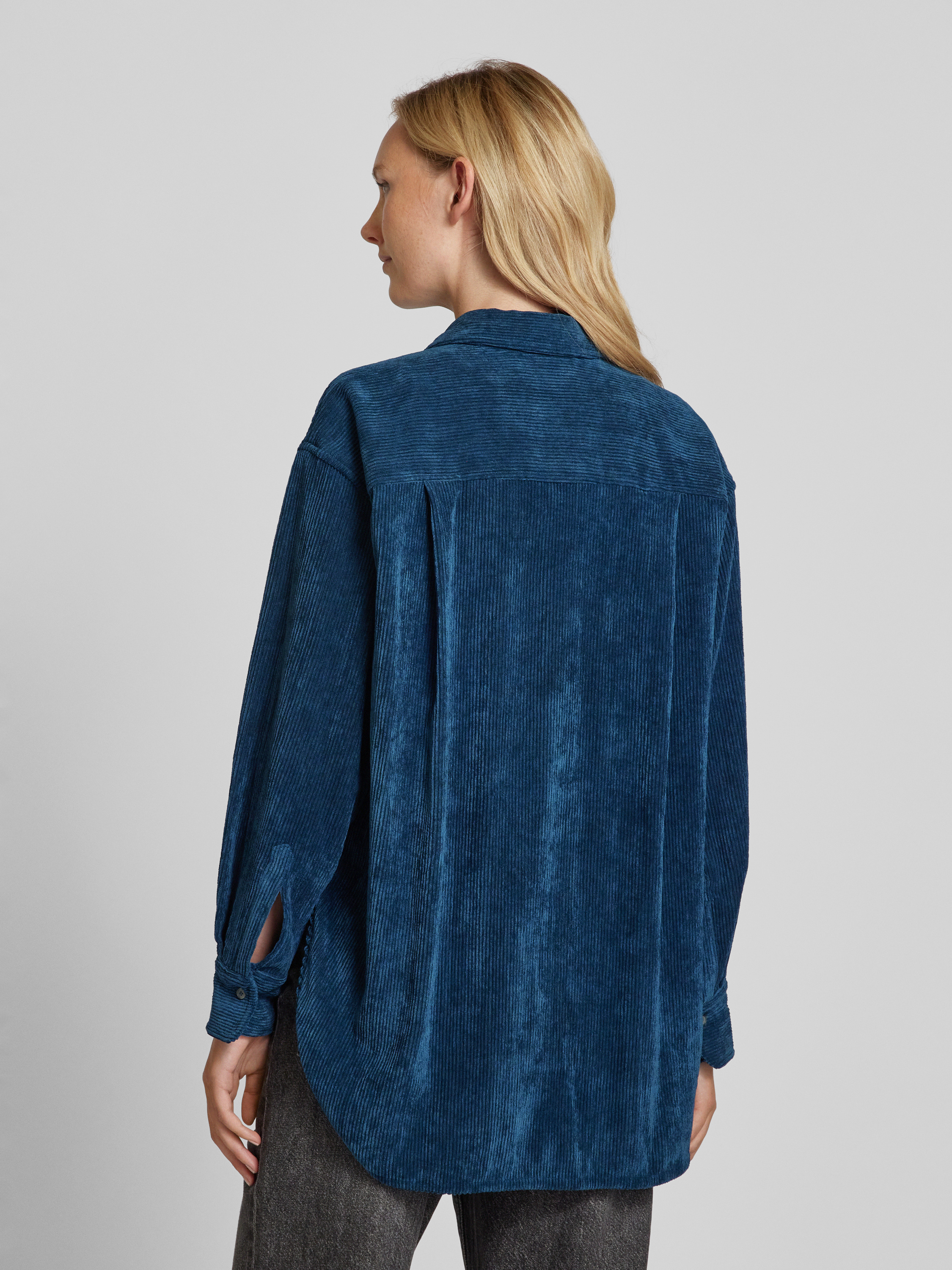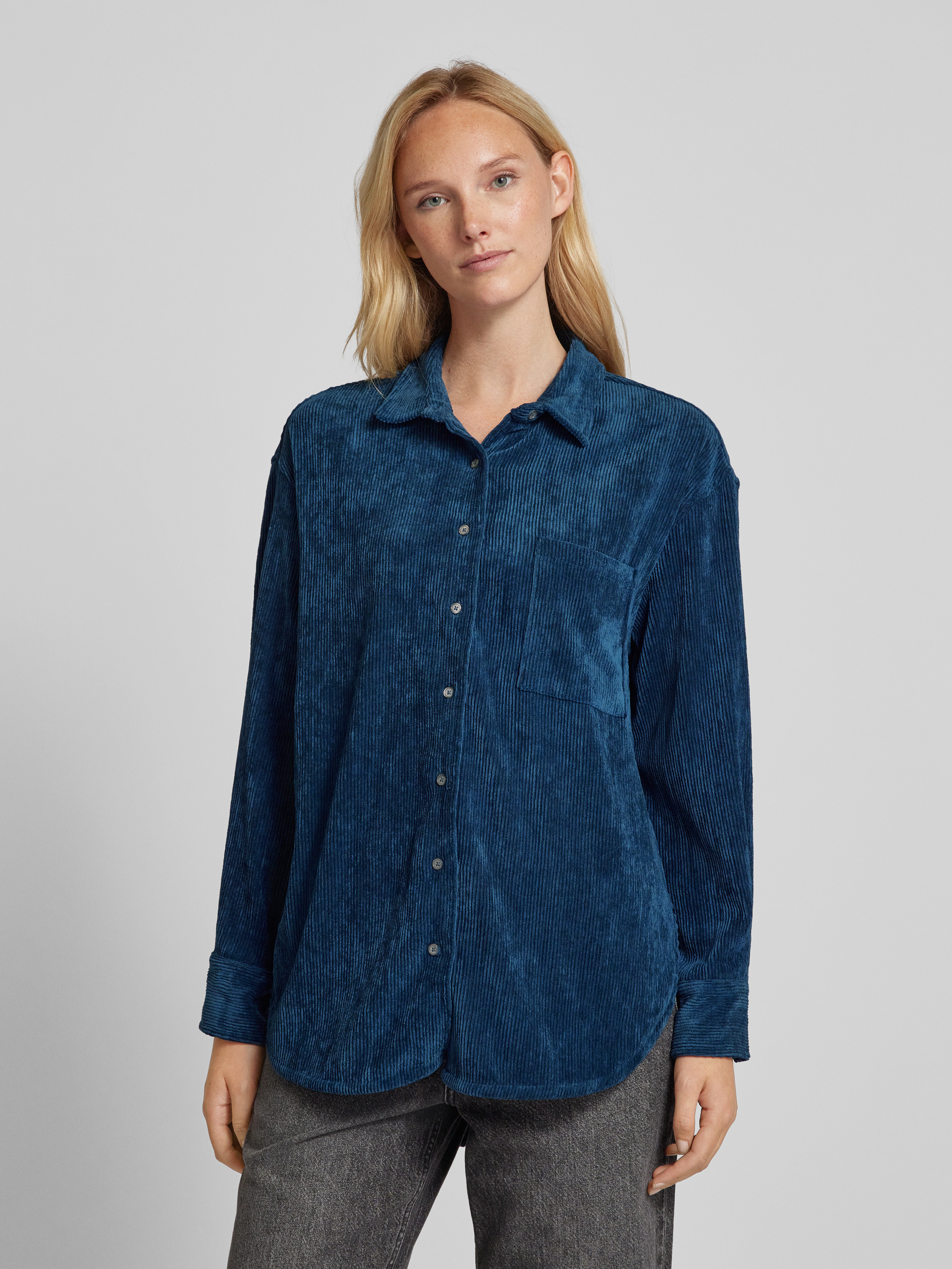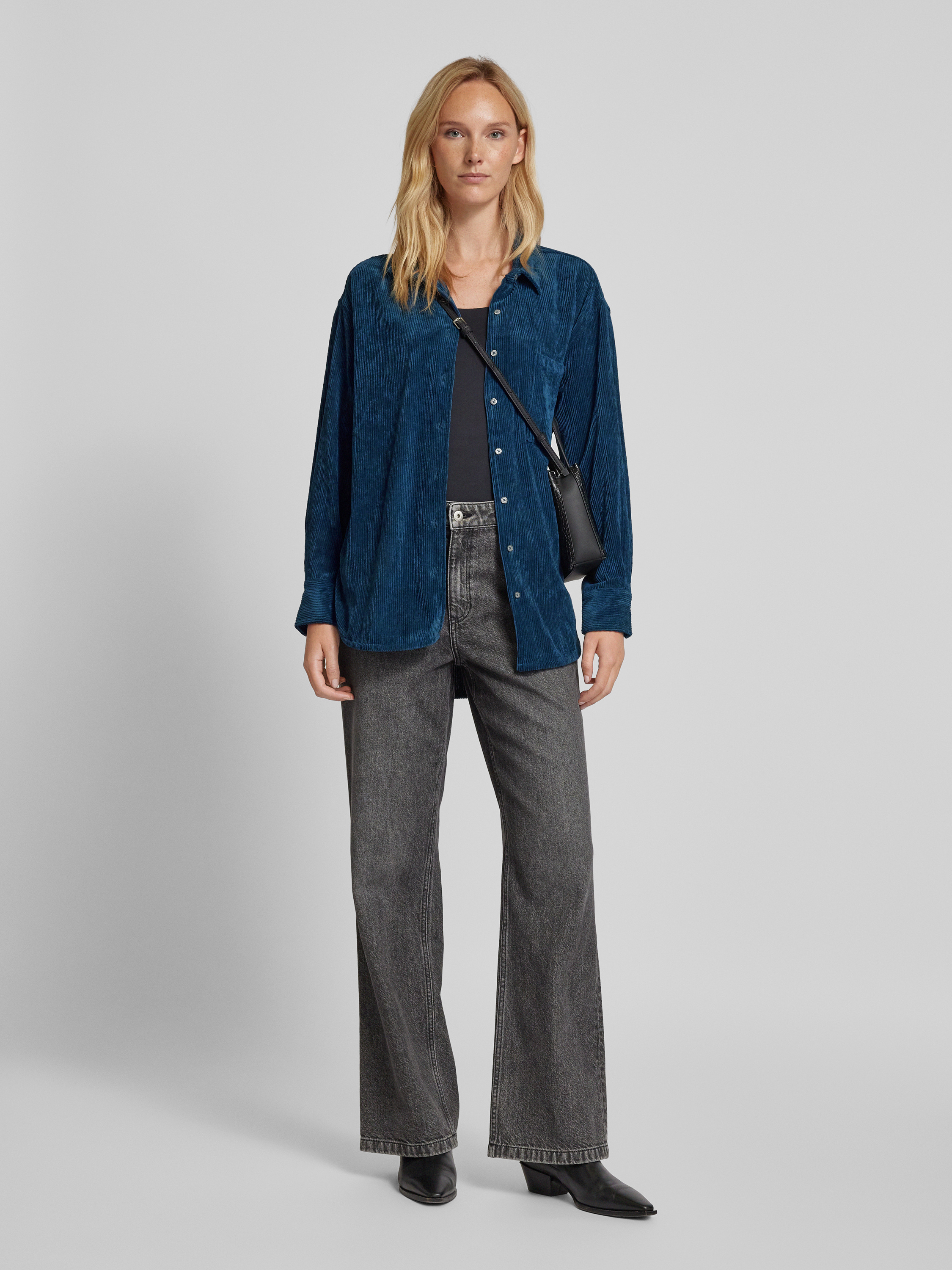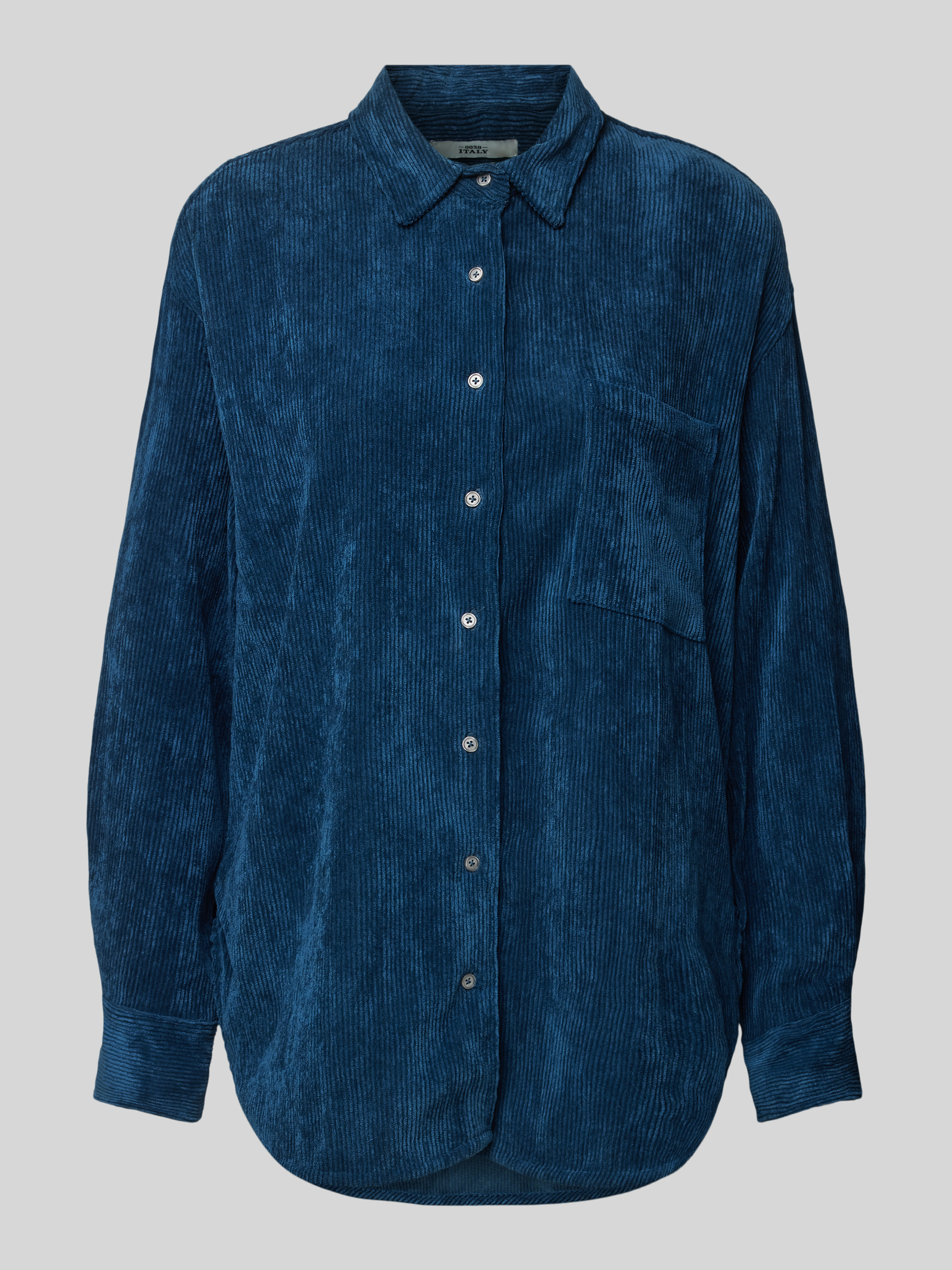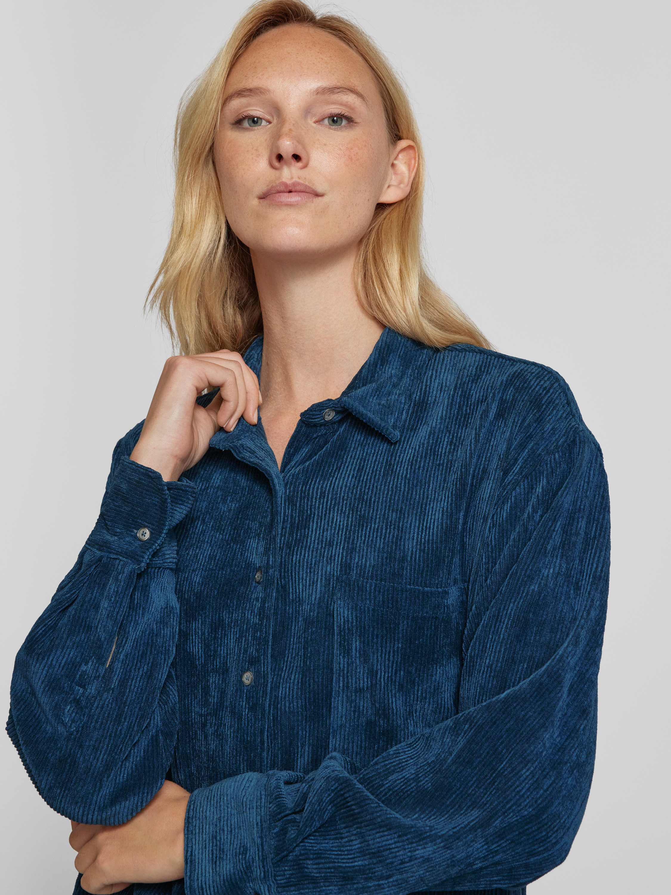 Lange blouse met platte kraag, model 'BETTY' in petrol