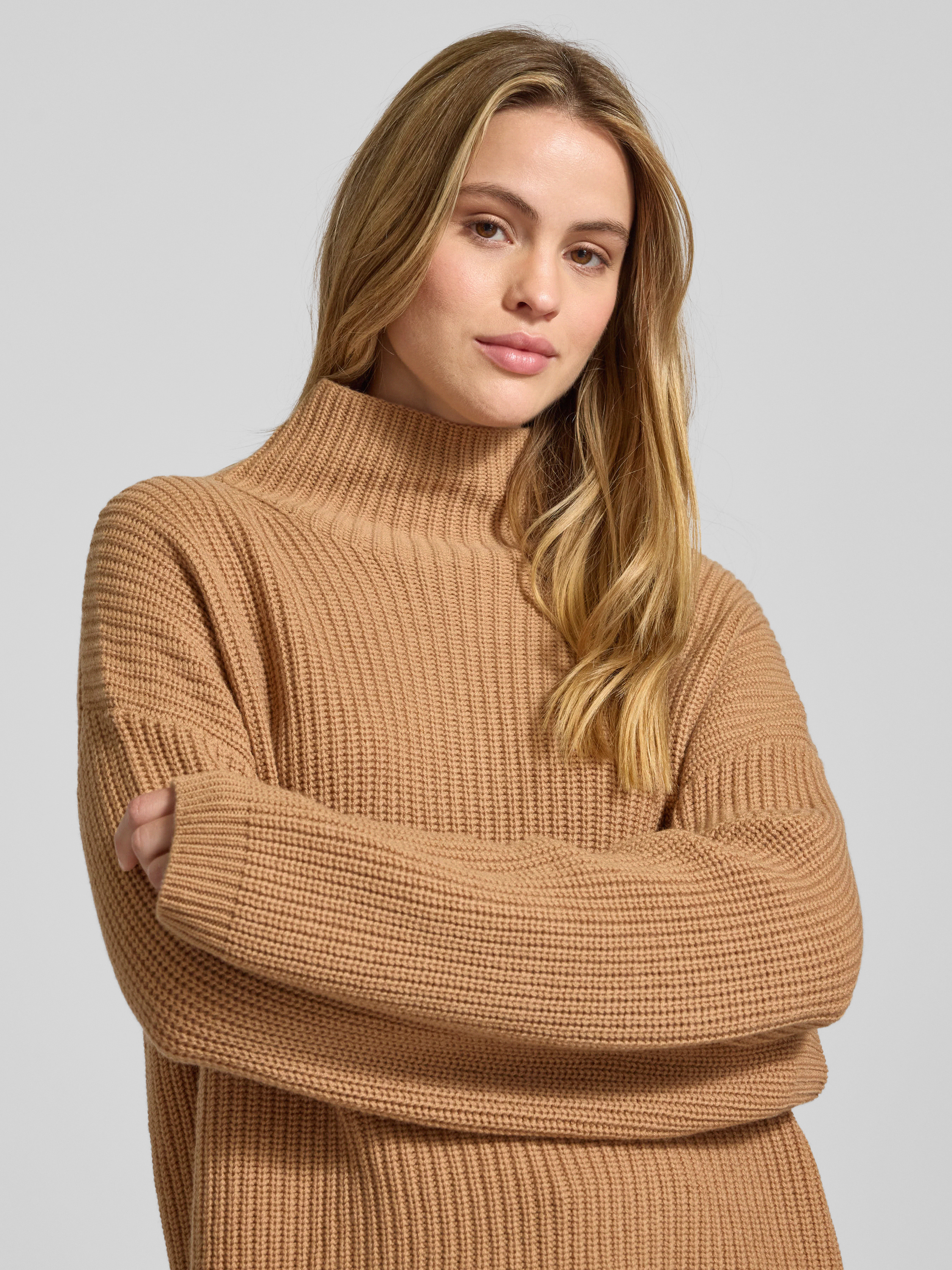 Loose fit gebreide pullover van een mix van kasjmier en wol, model 'LONA' in camel