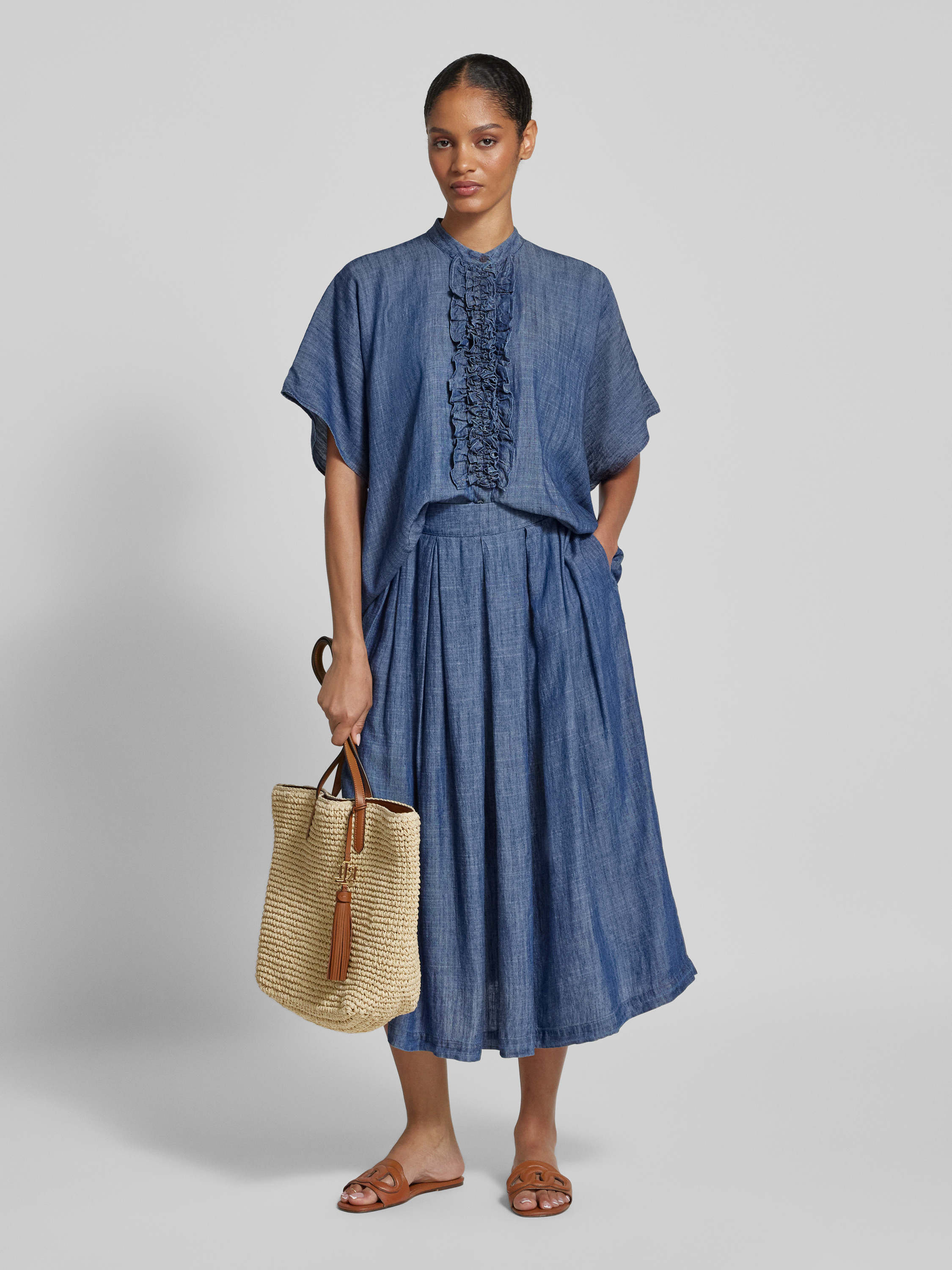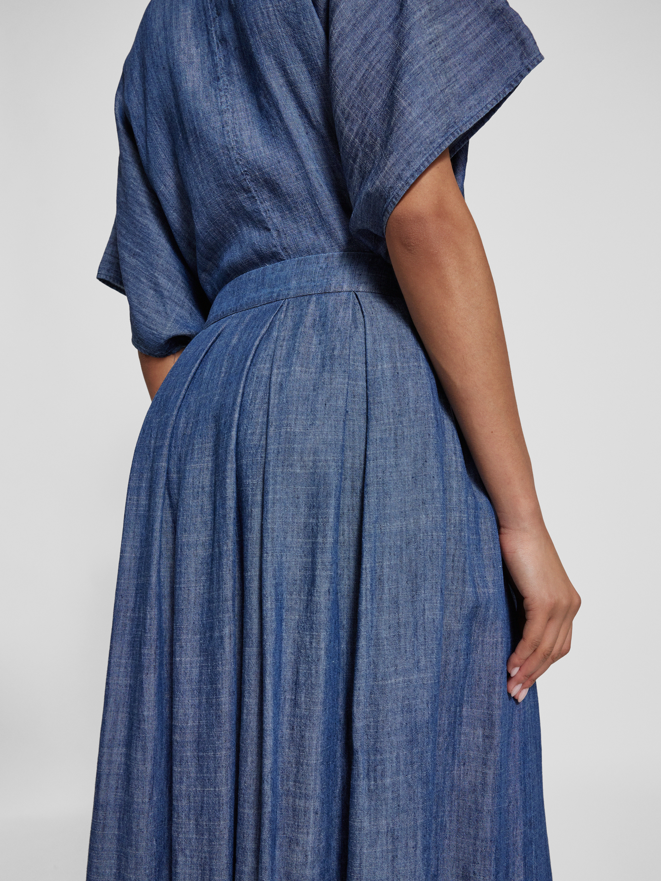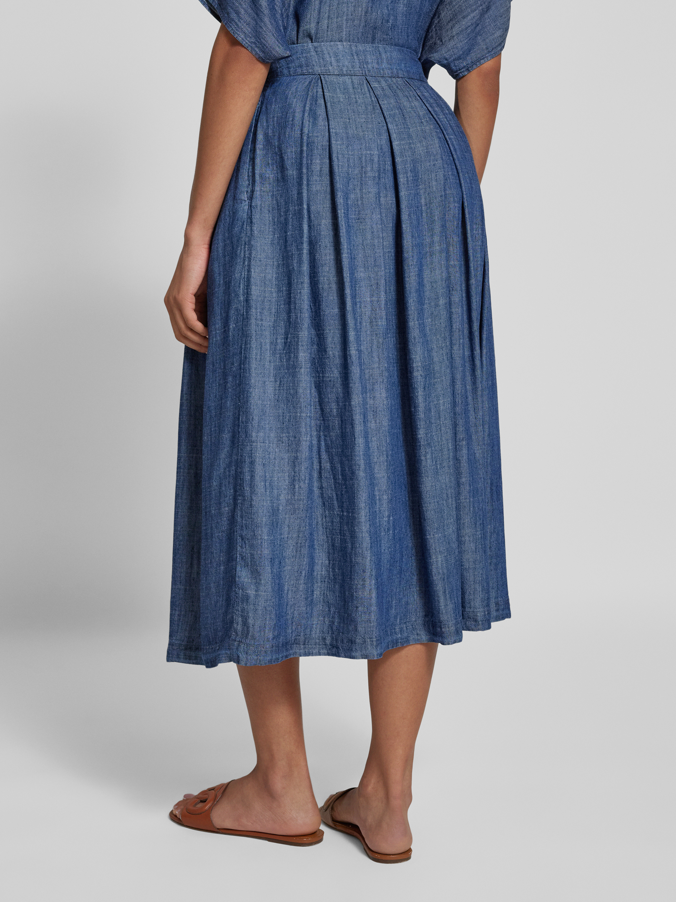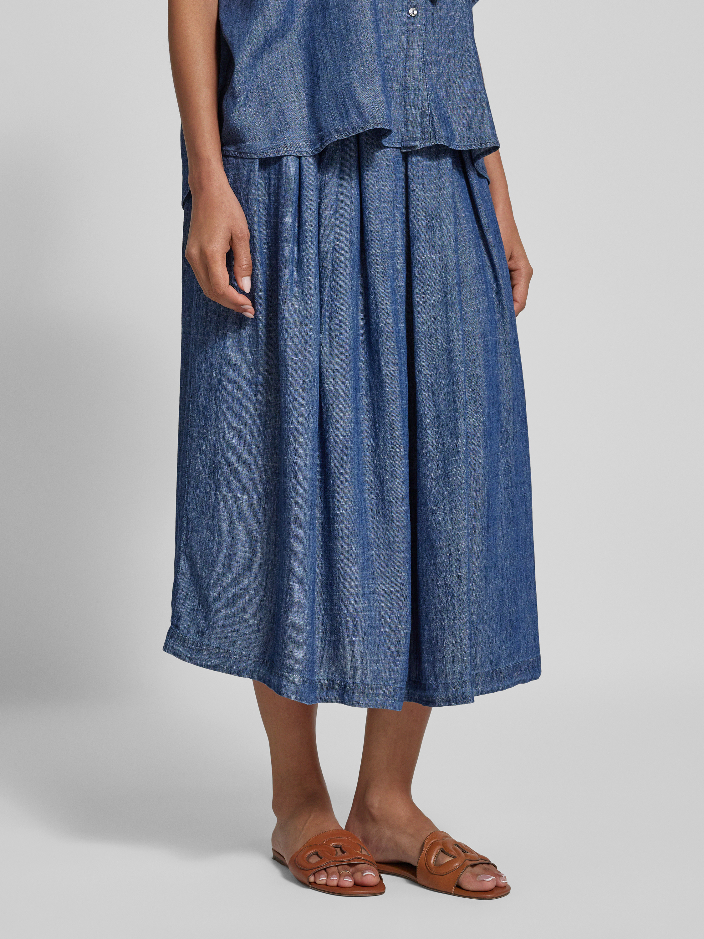 Midirok van een mix van lyocell en linnen, model 'KYLIE' in donkerblauw