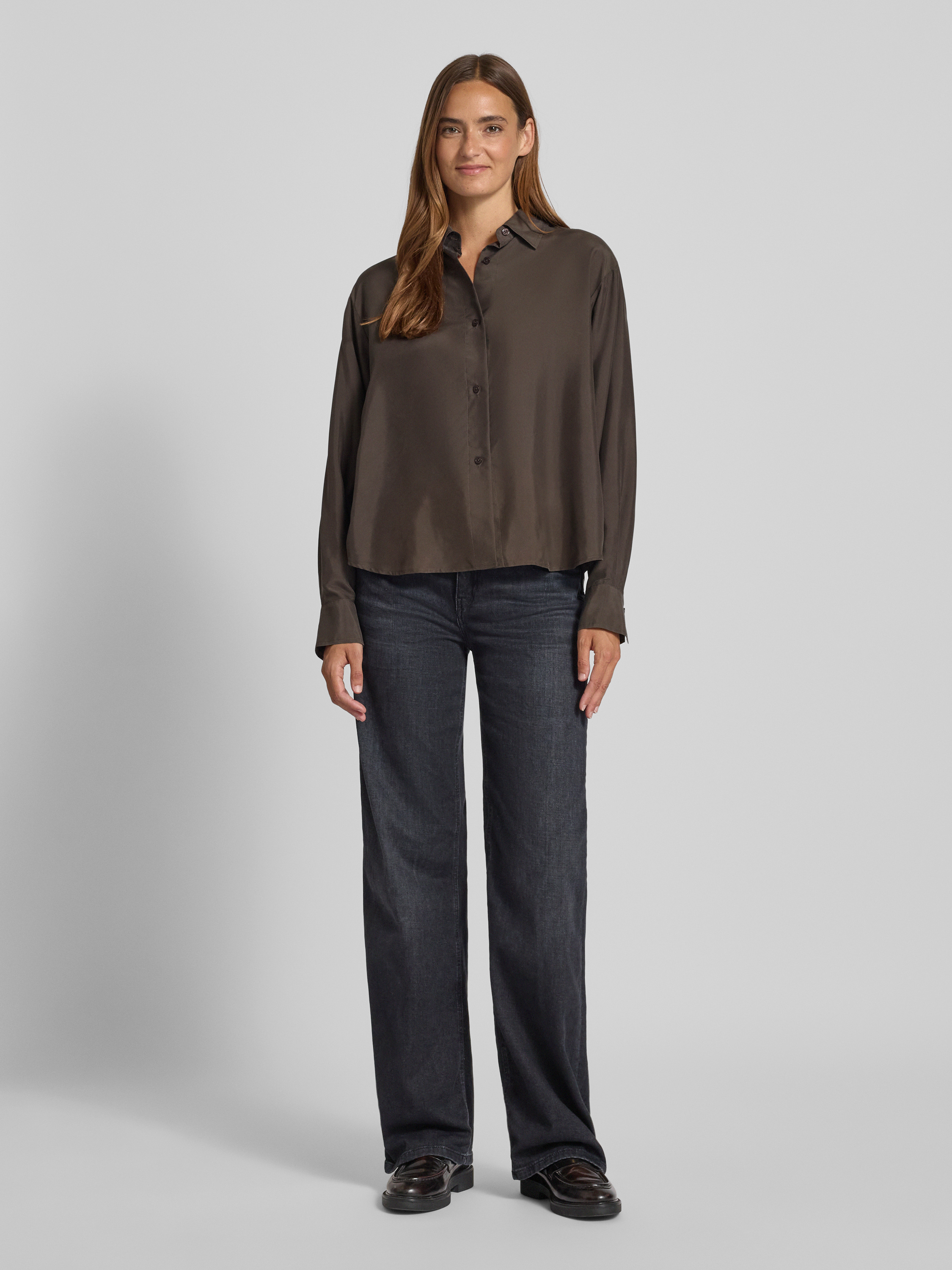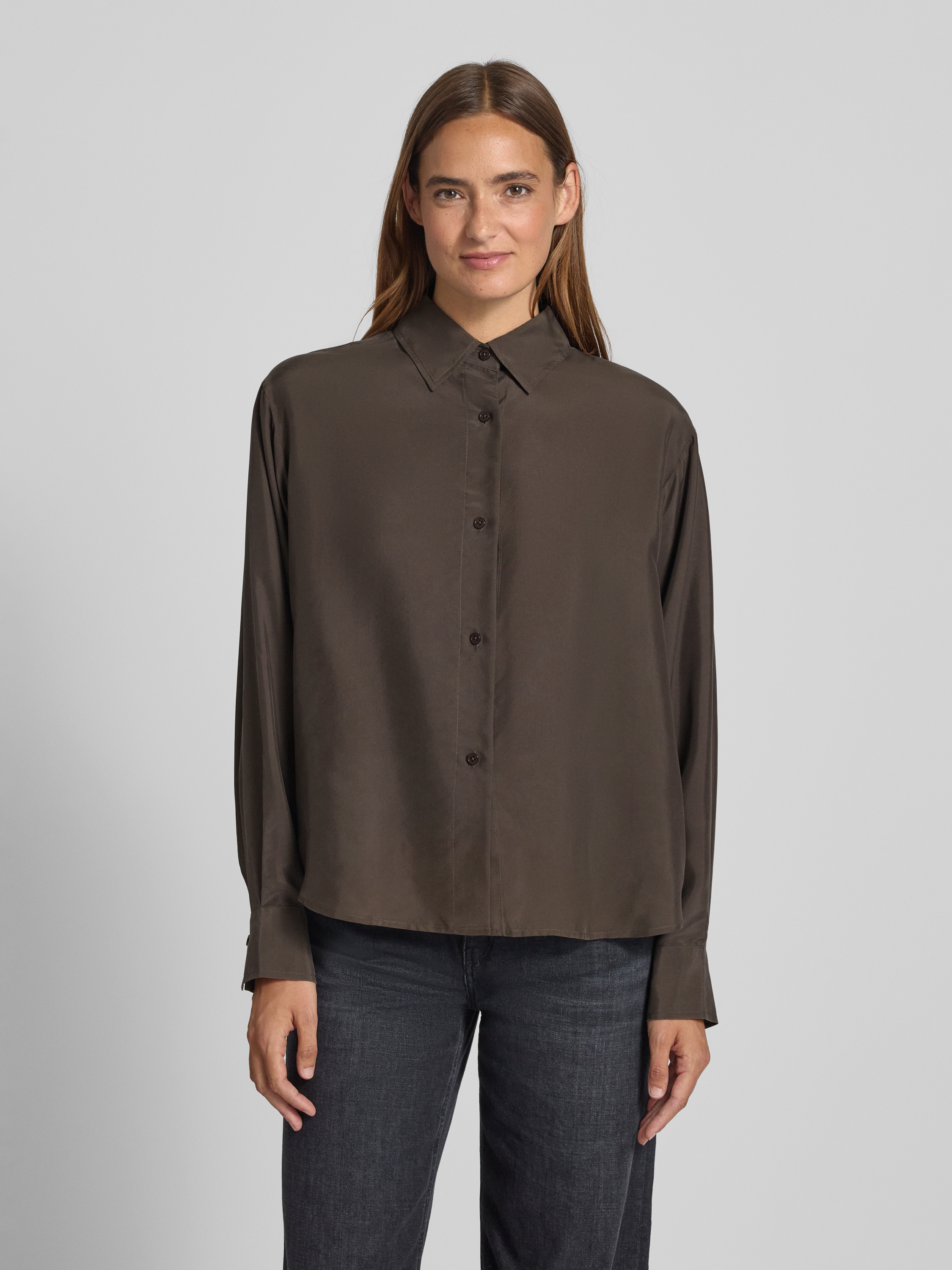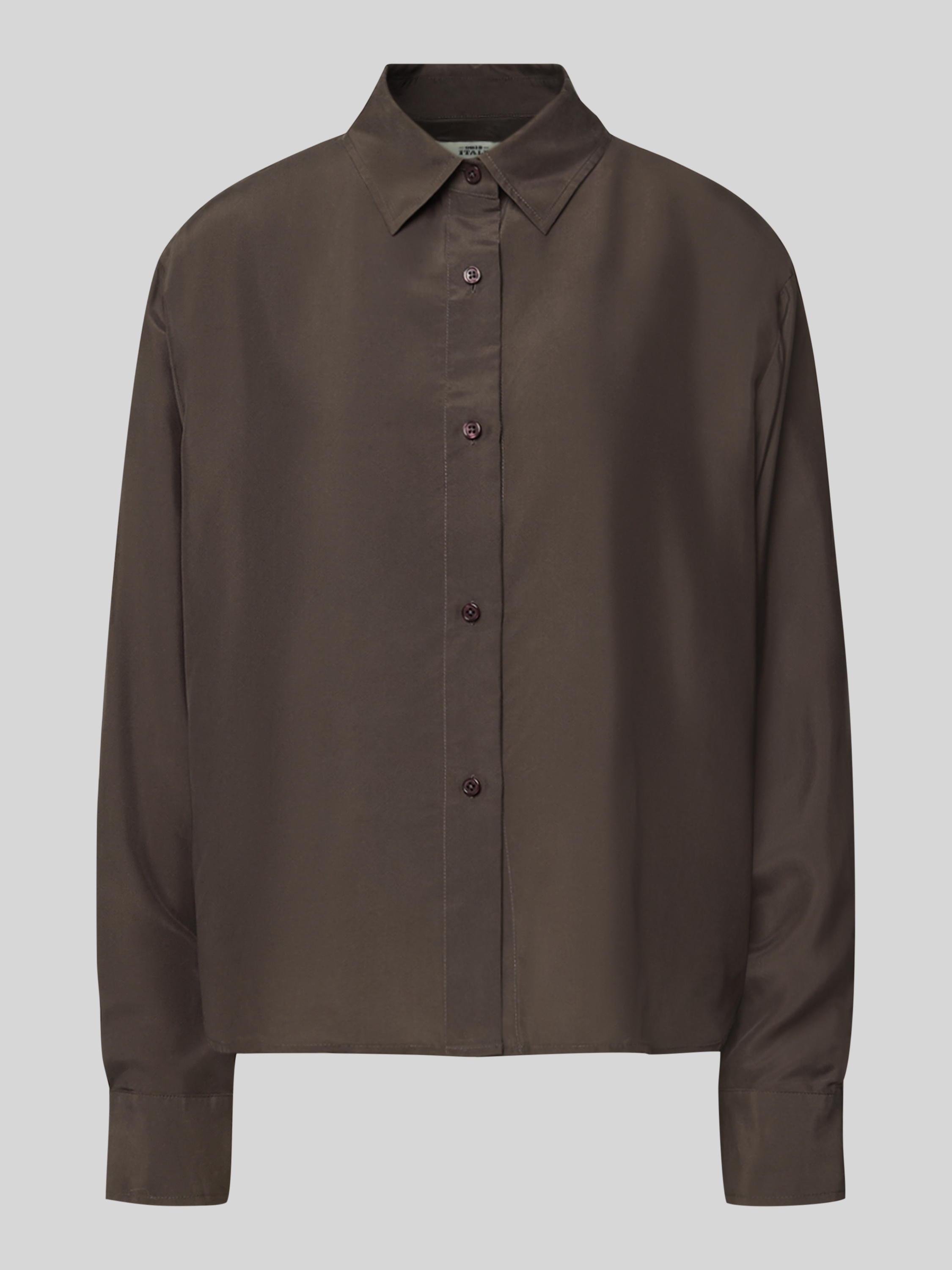 Overhemdblouse met knoopsluiting, model 'ELSA' in donkerbruin