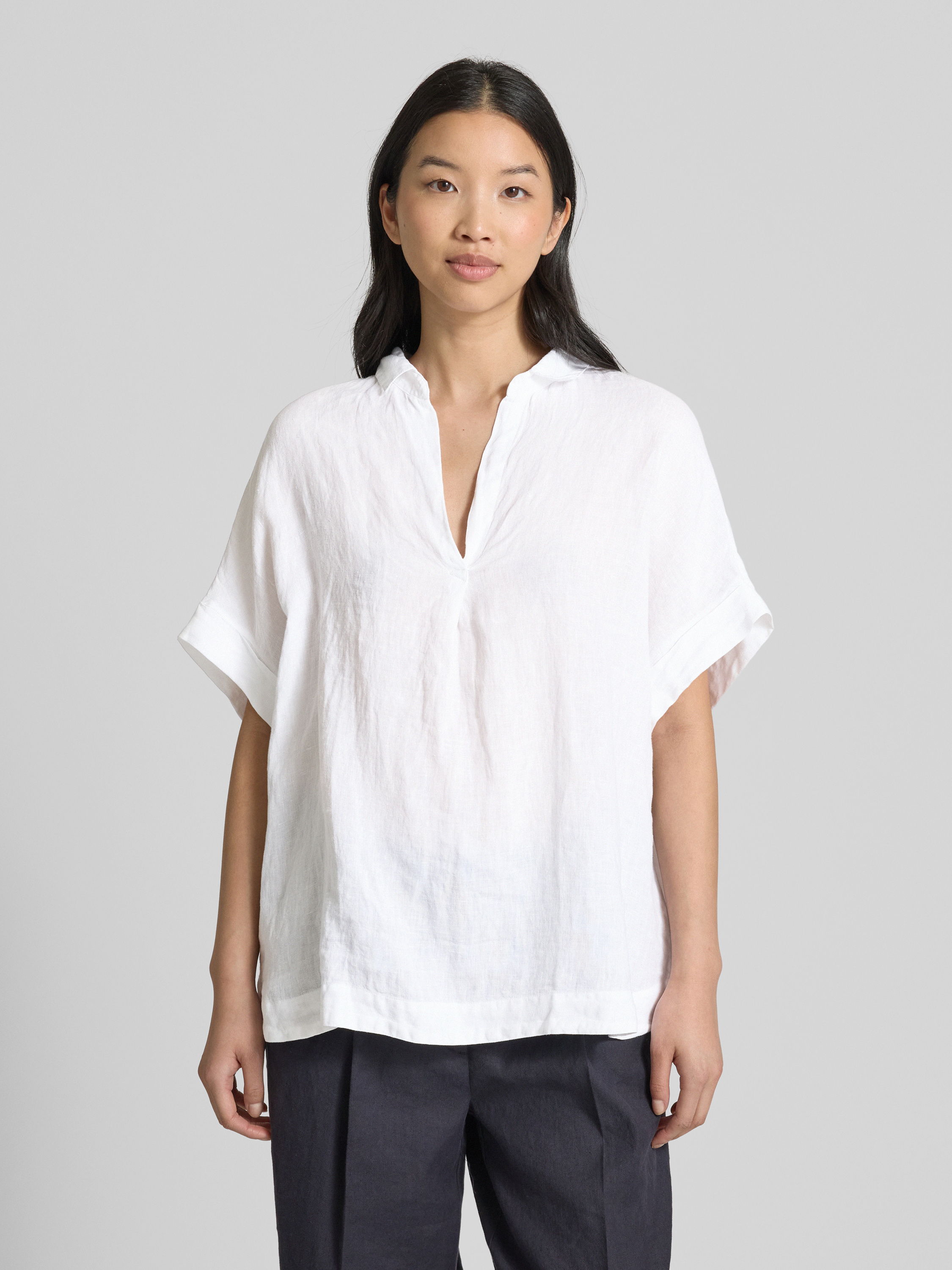 Regular fit blouseshirt van linnen met kapmouwen, model 'DERRY' in wit