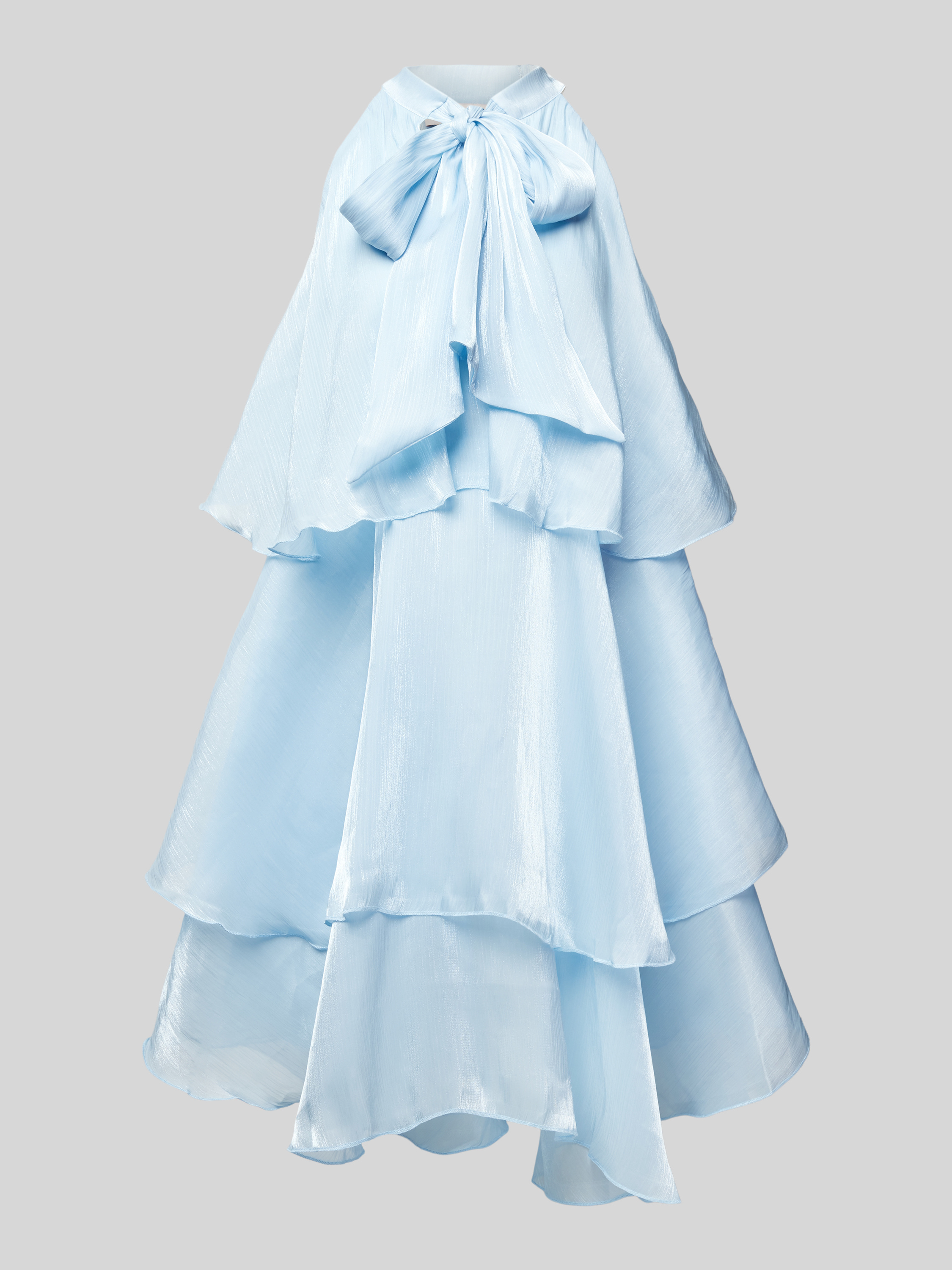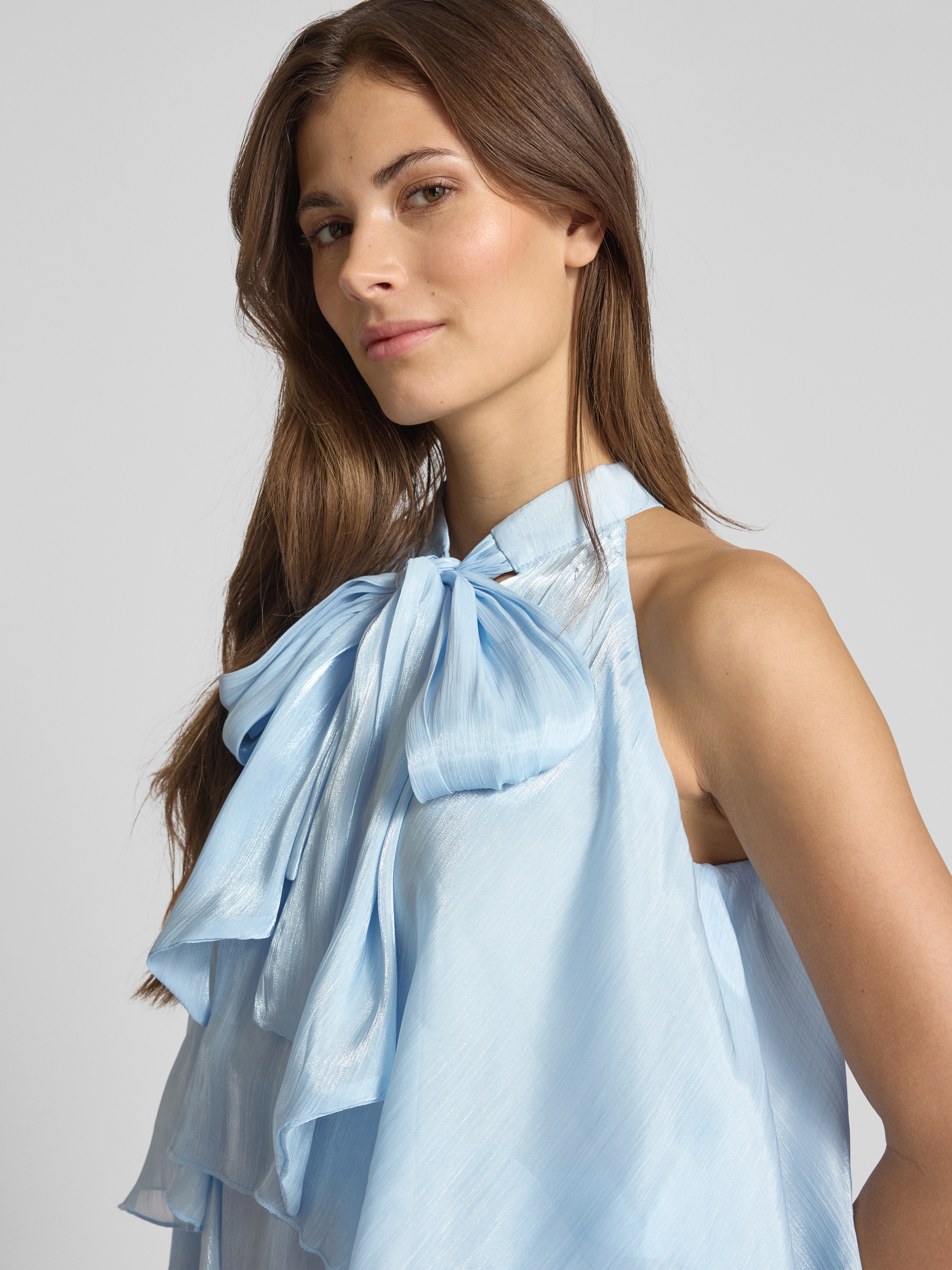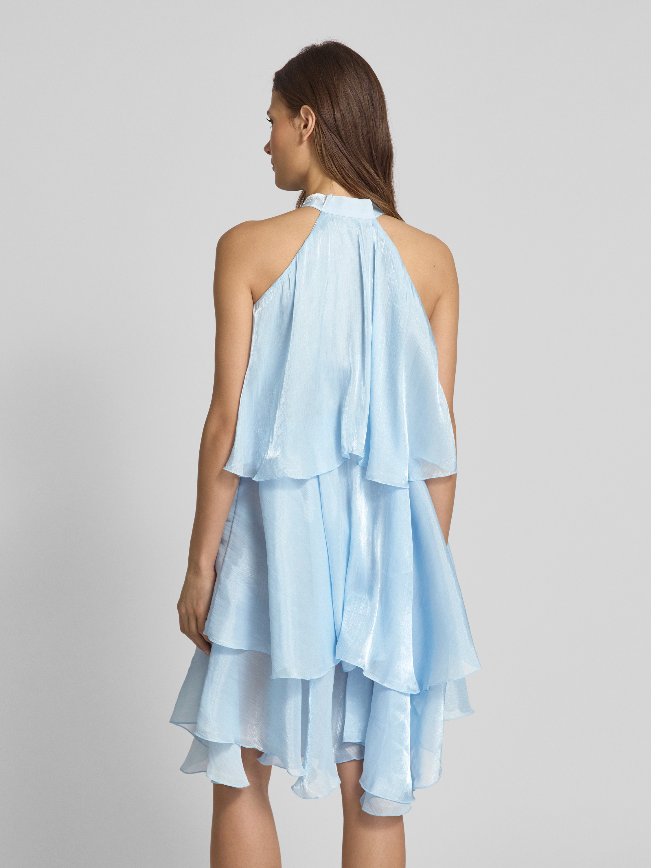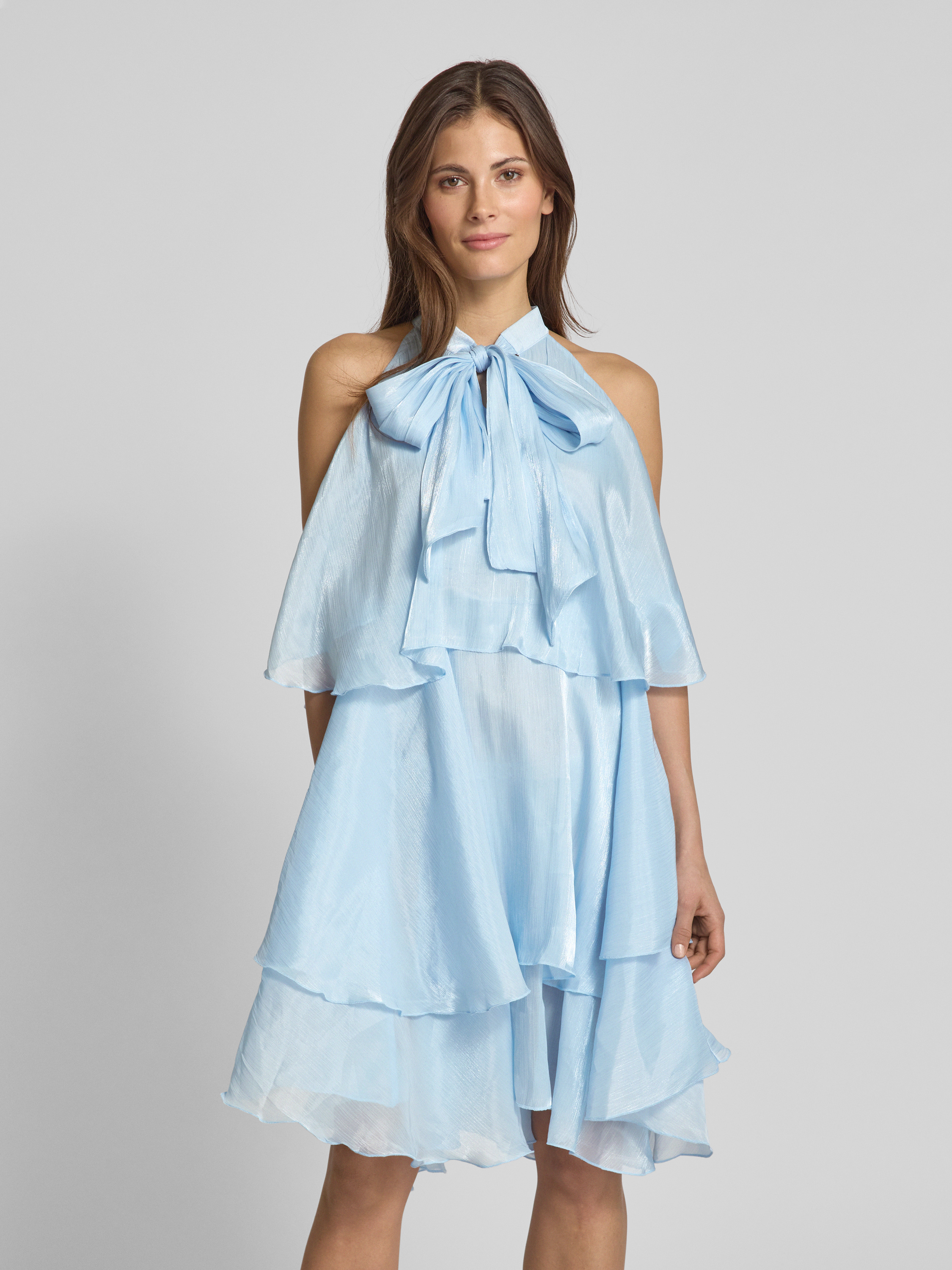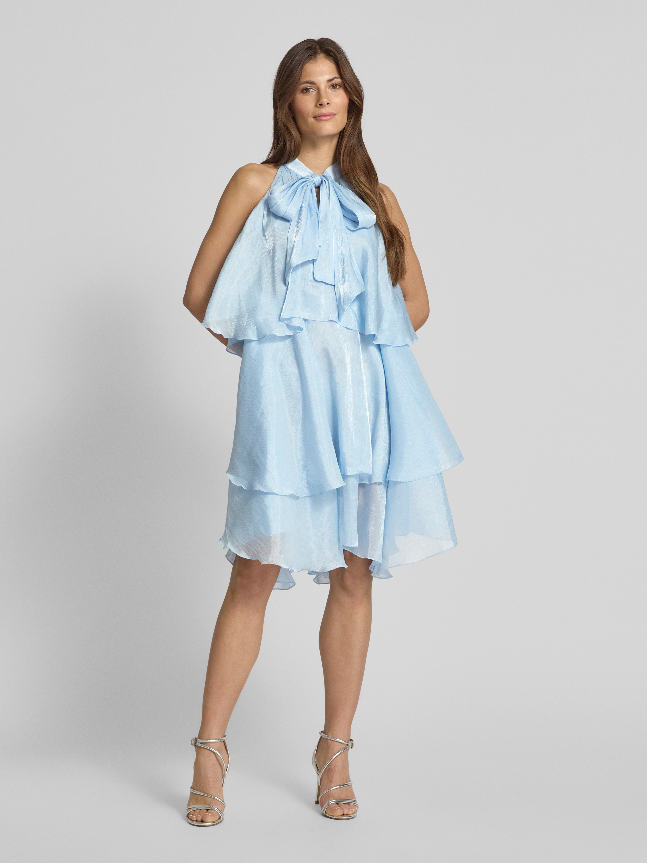 Knielange jurk met volants, model 'Demi' in lichtblauw