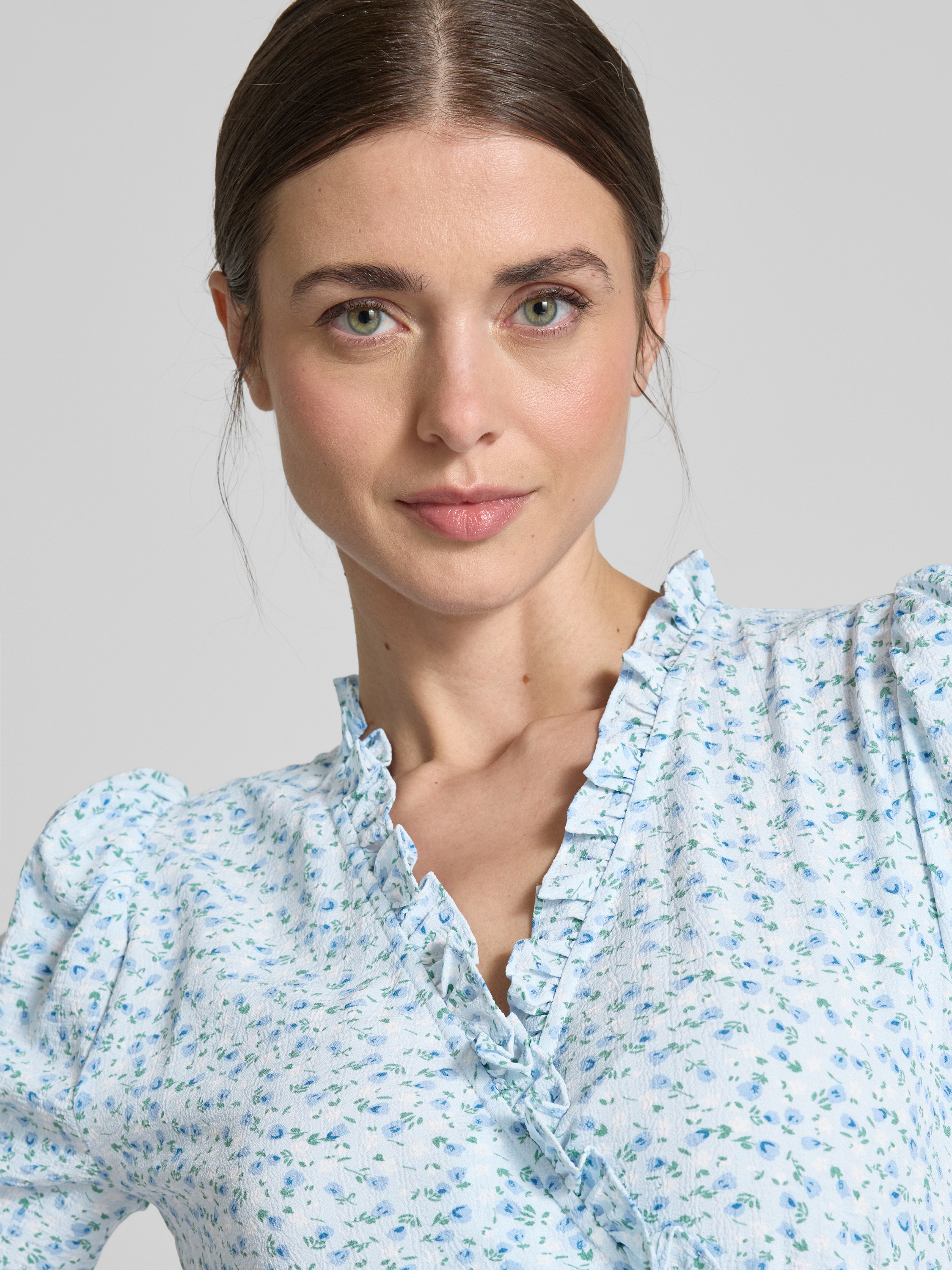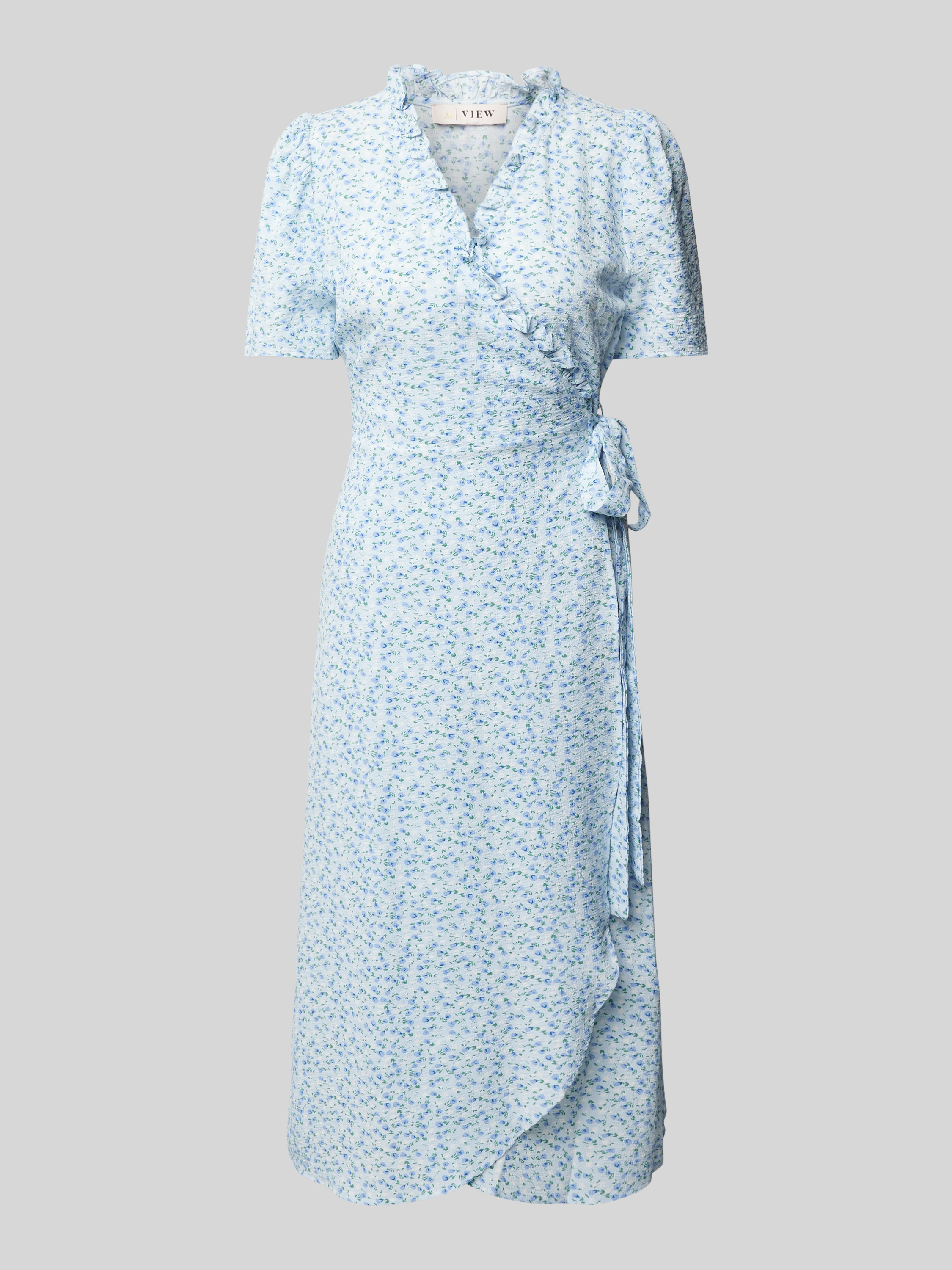 Midi-wikkeljurk, model 'Peony' in lichtblauw