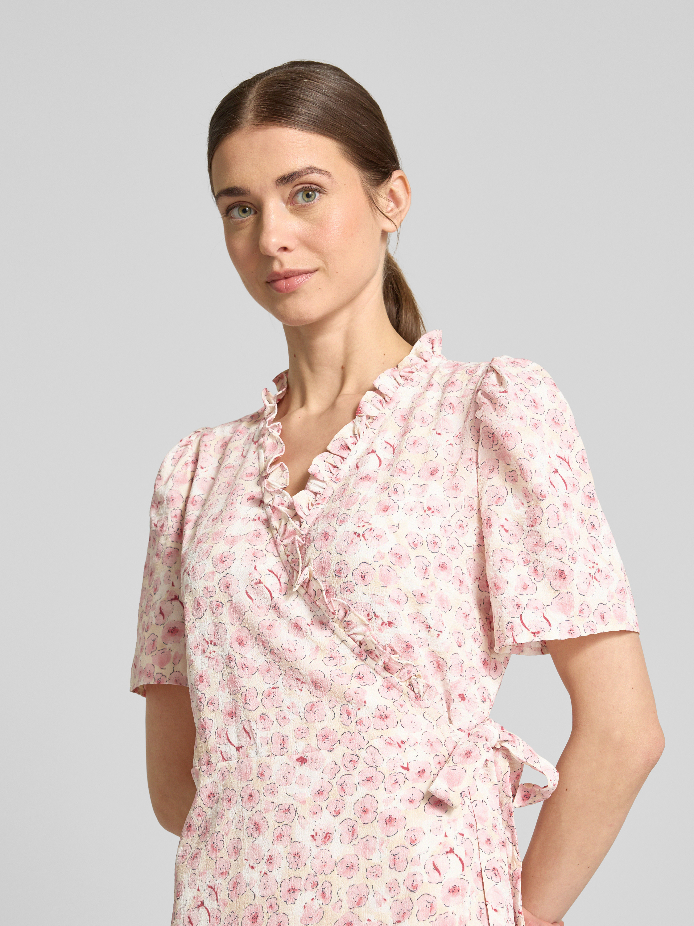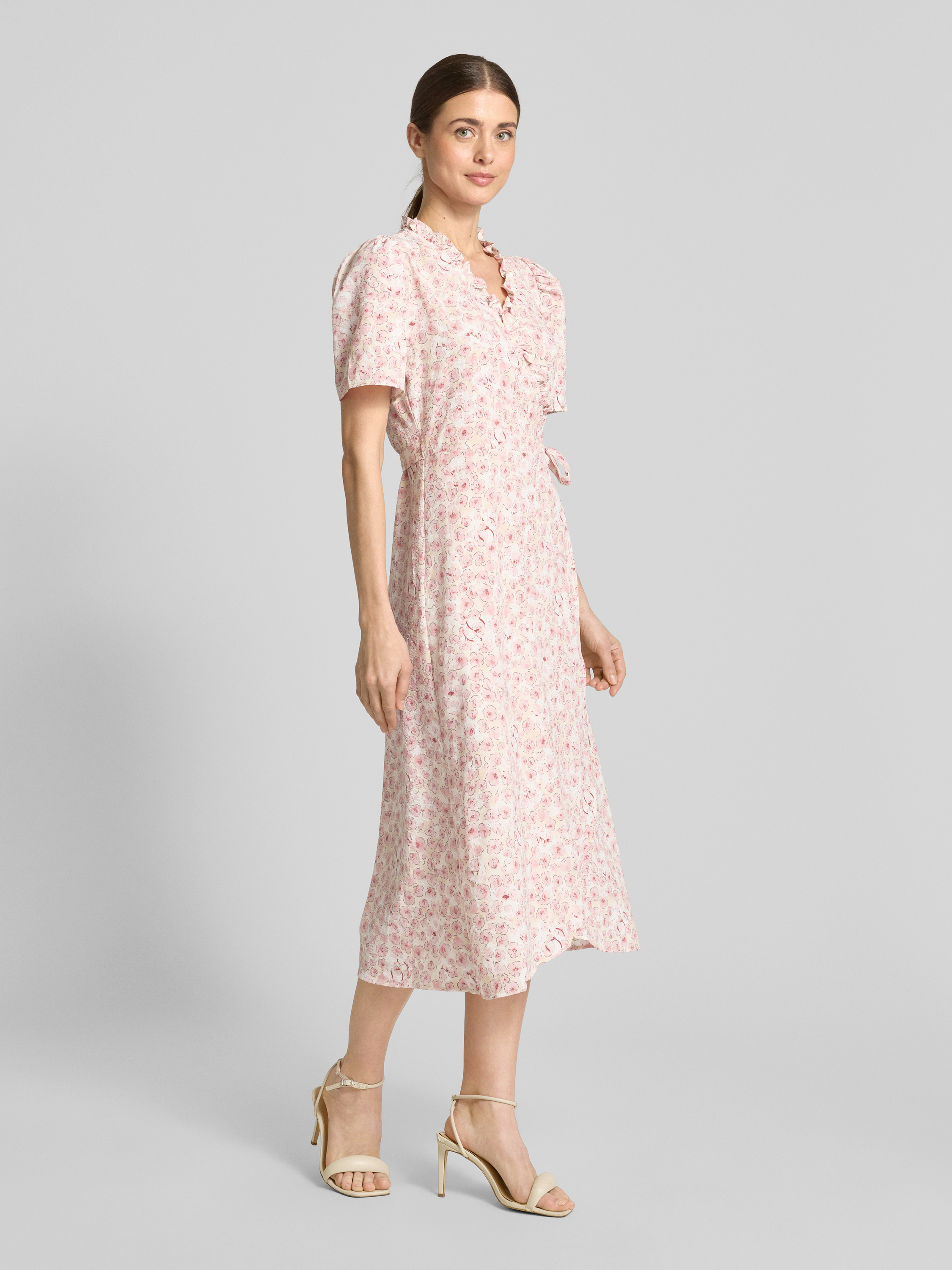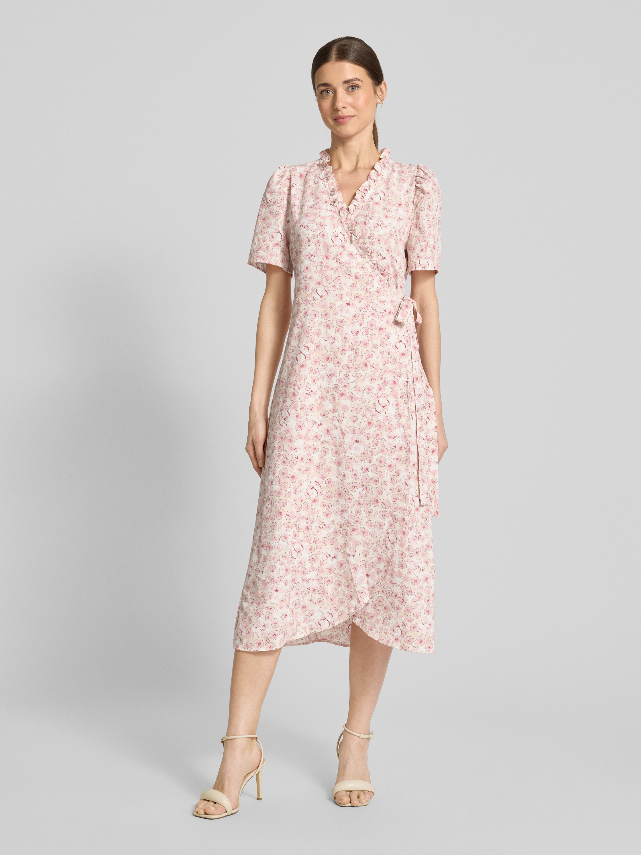 Midi-wikkeljurk, model 'Peony' in roze