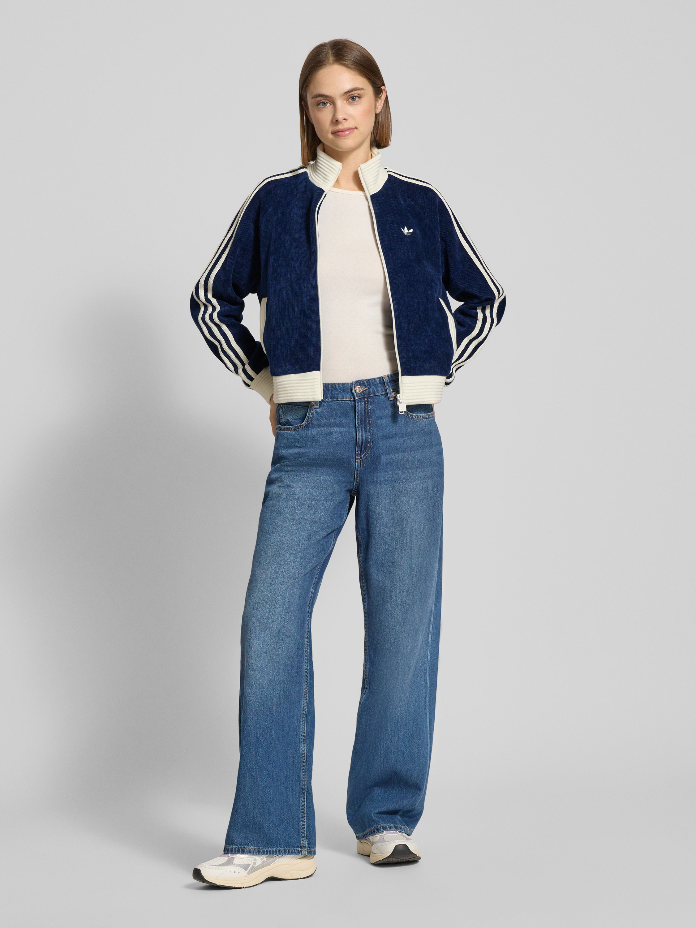 Sweatjack met opstaande kraag en labelstitching in donkerblauw