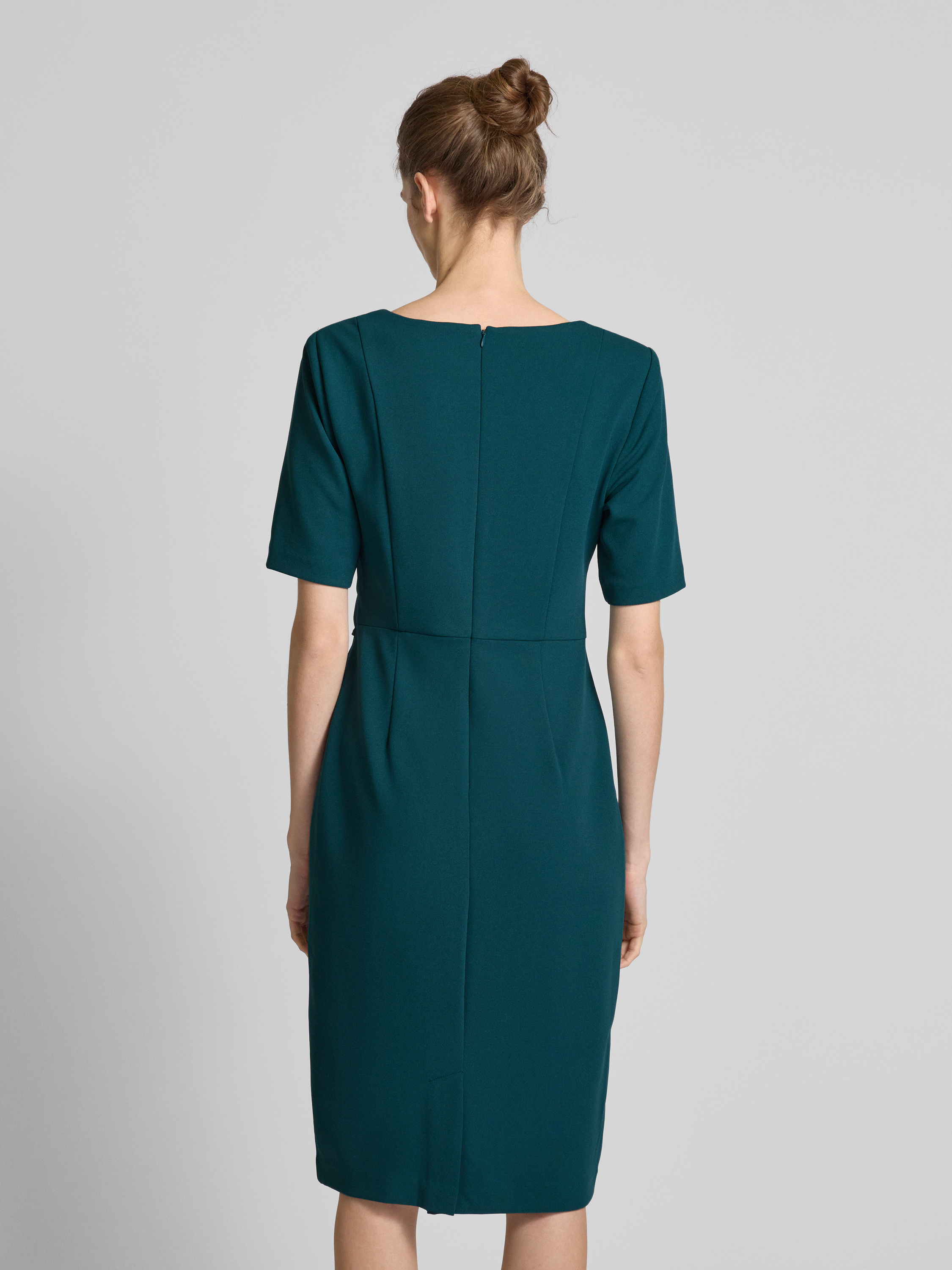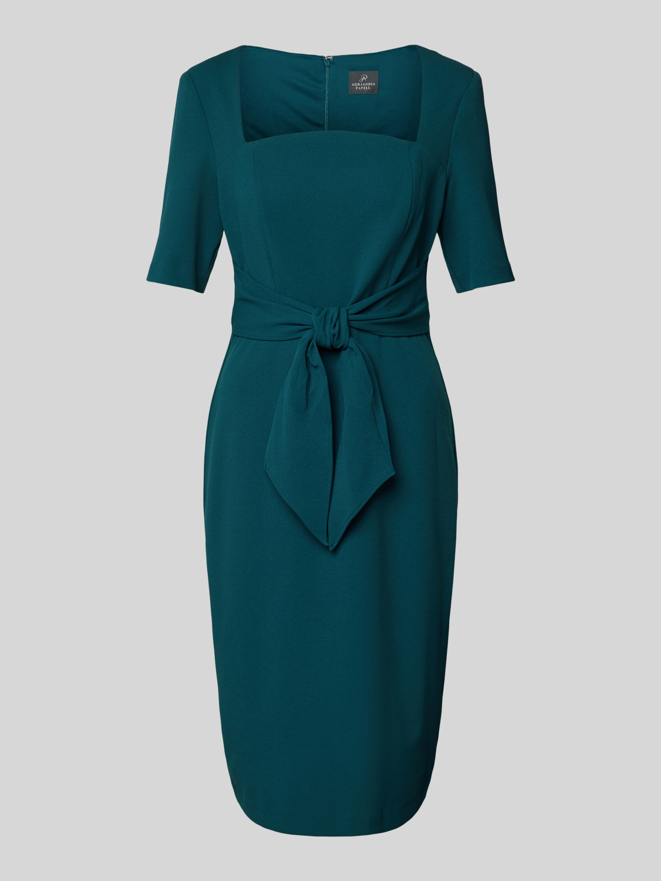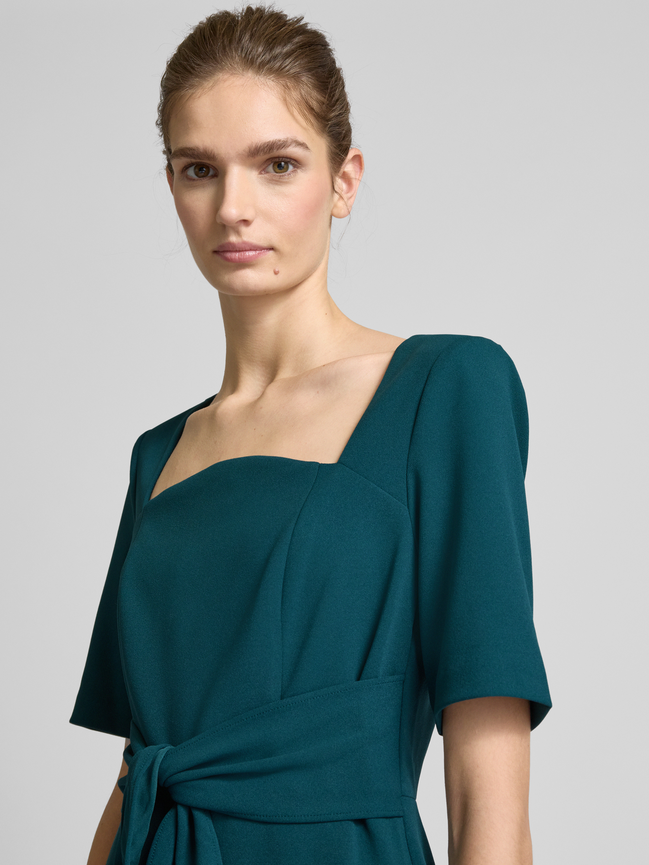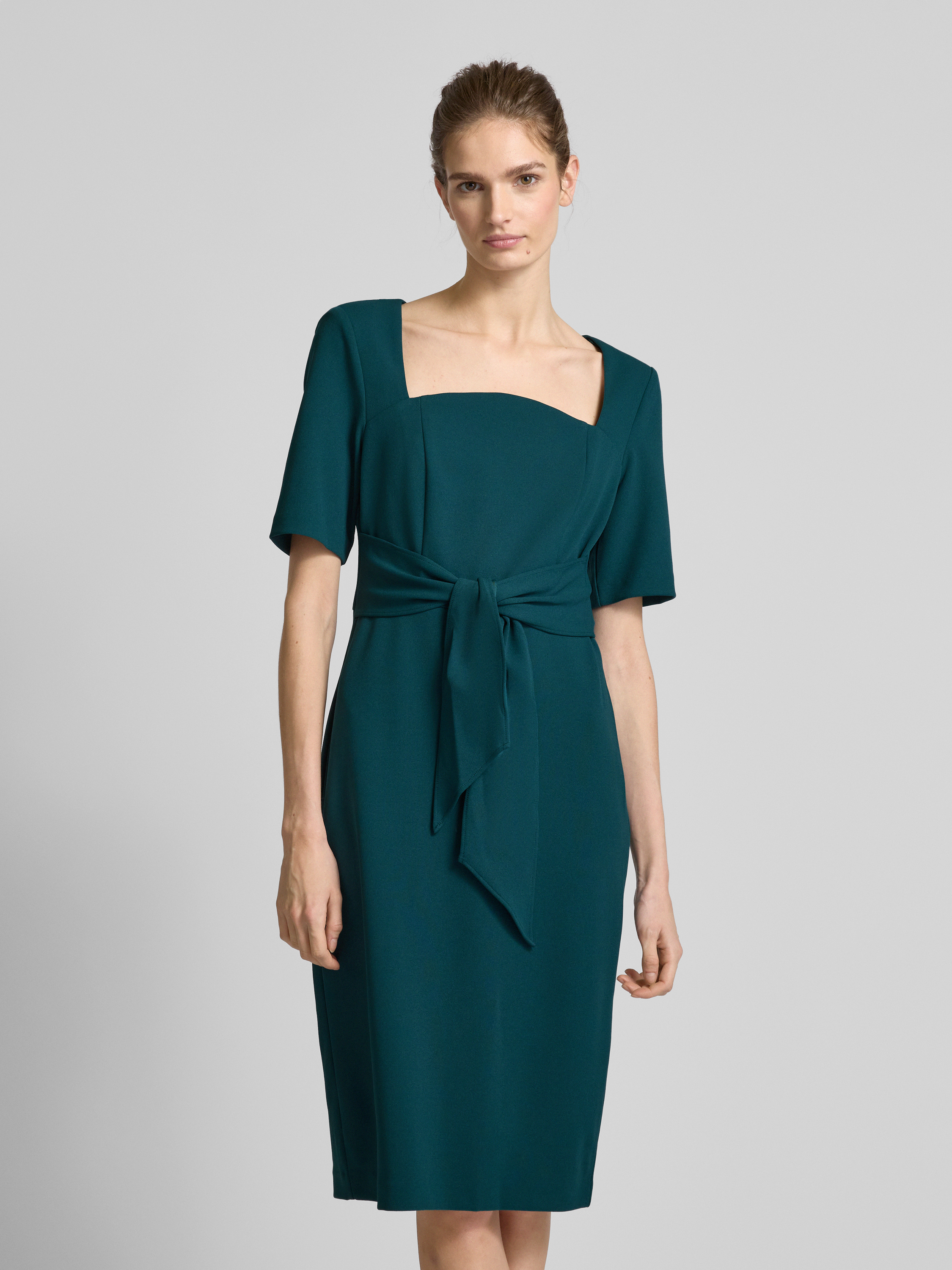 Knielange cocktailjurk met strikceintuur in donkergroen