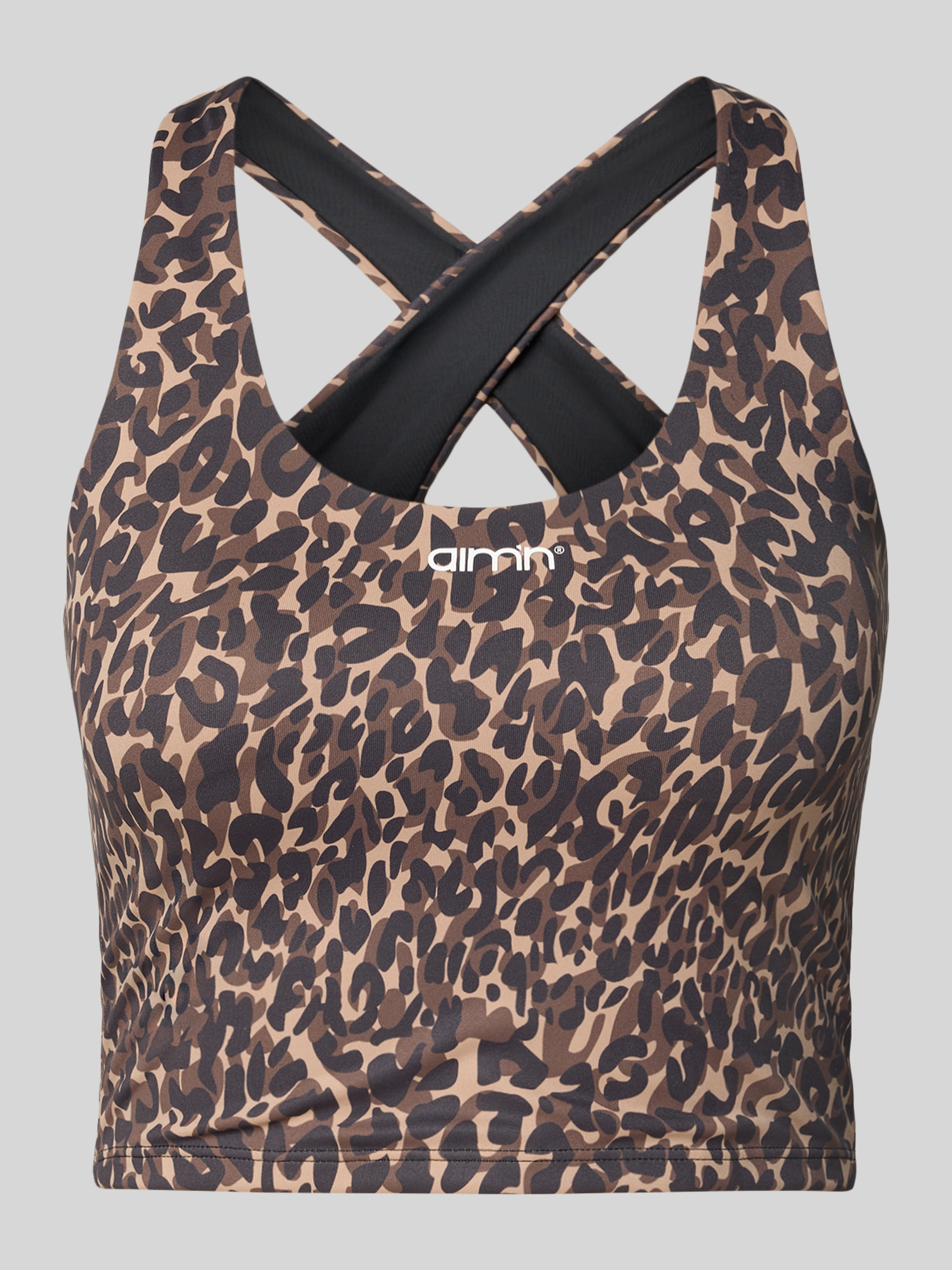 Slim fit top met all-over dierenprint, model 'Cheetah' in middenbruin