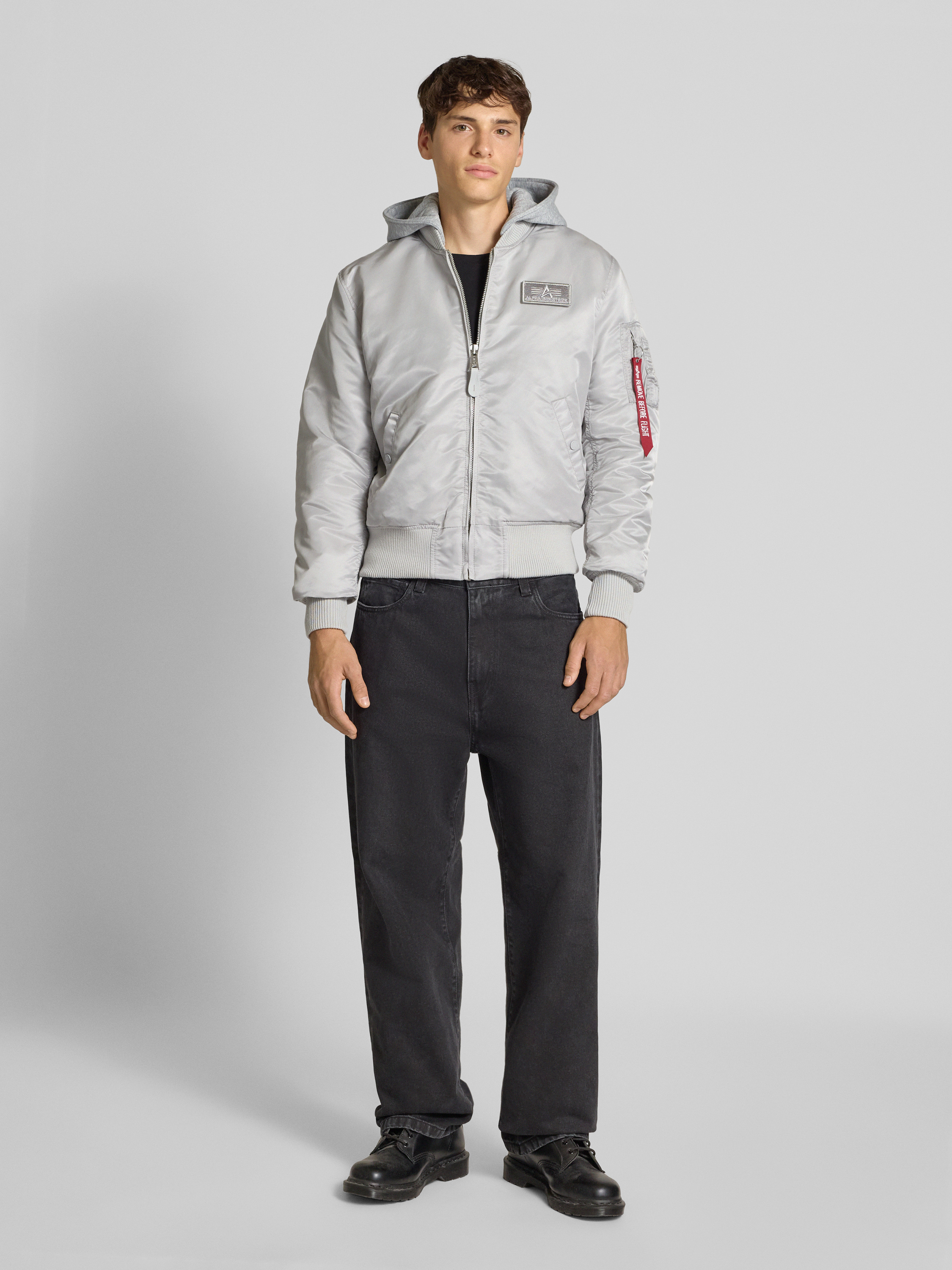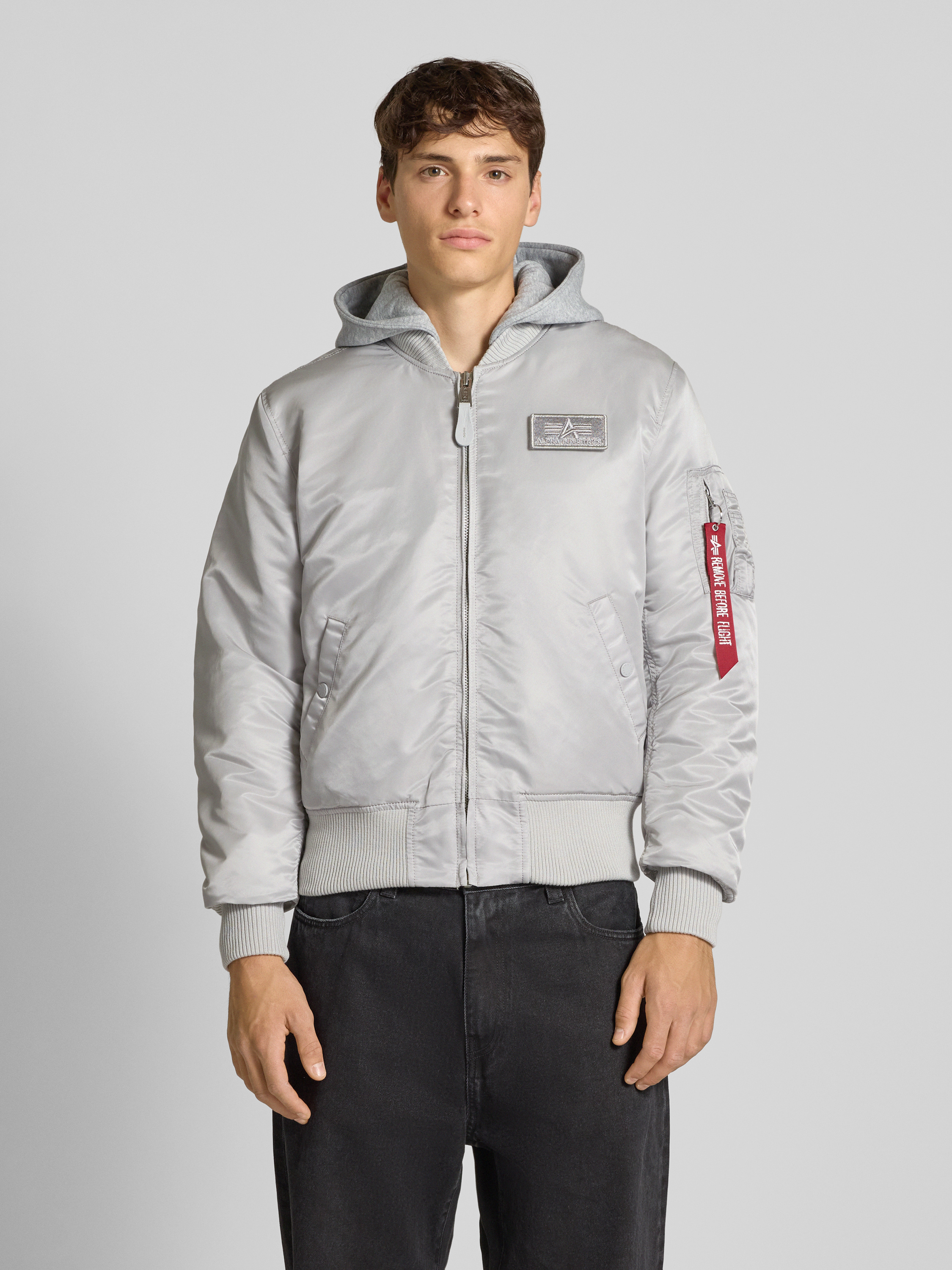 Bomberjack met labelpatch in lichtgrijs