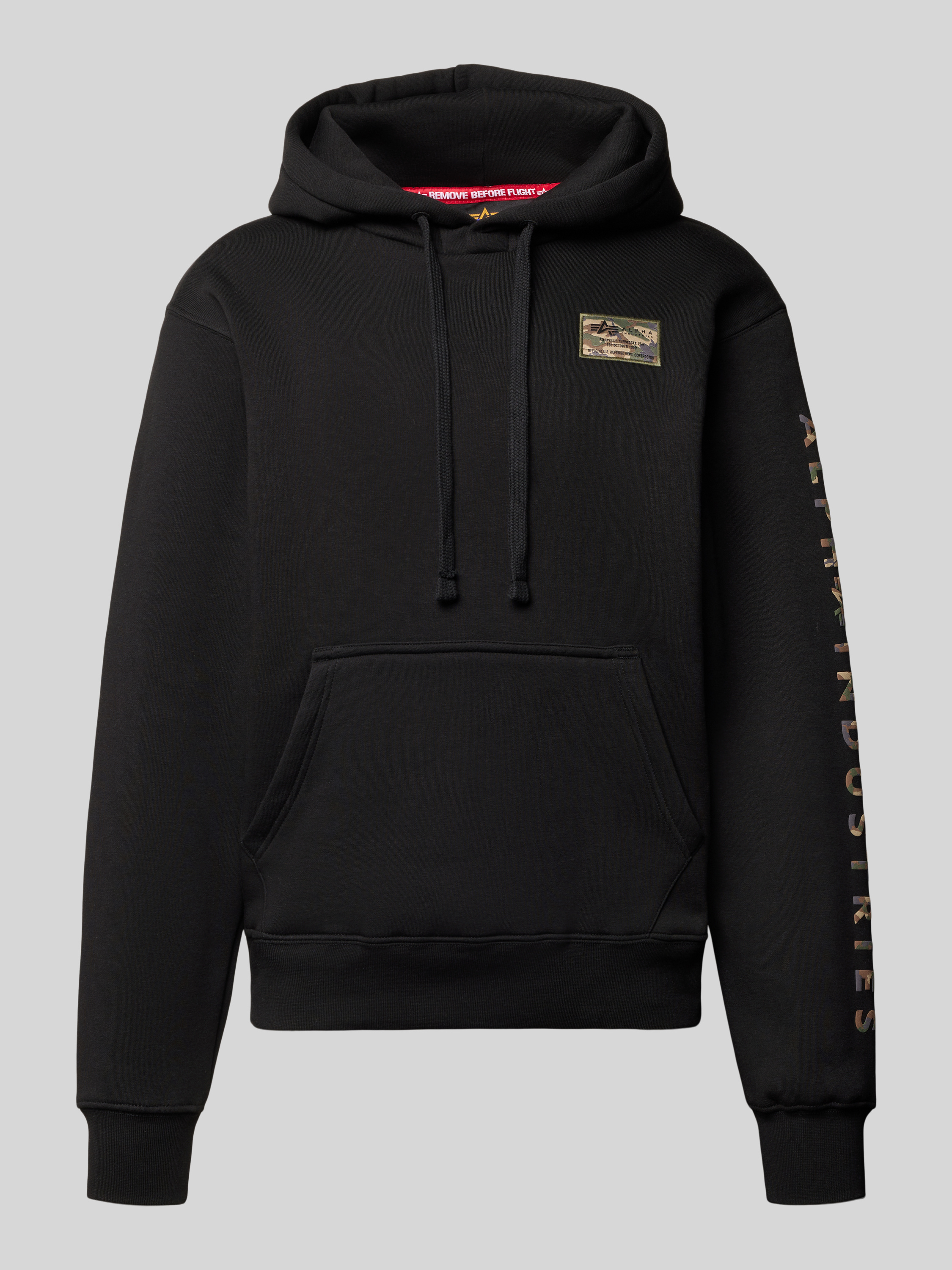 Hoodie met labelstitching, model 'Camo Sleeve' in zwart