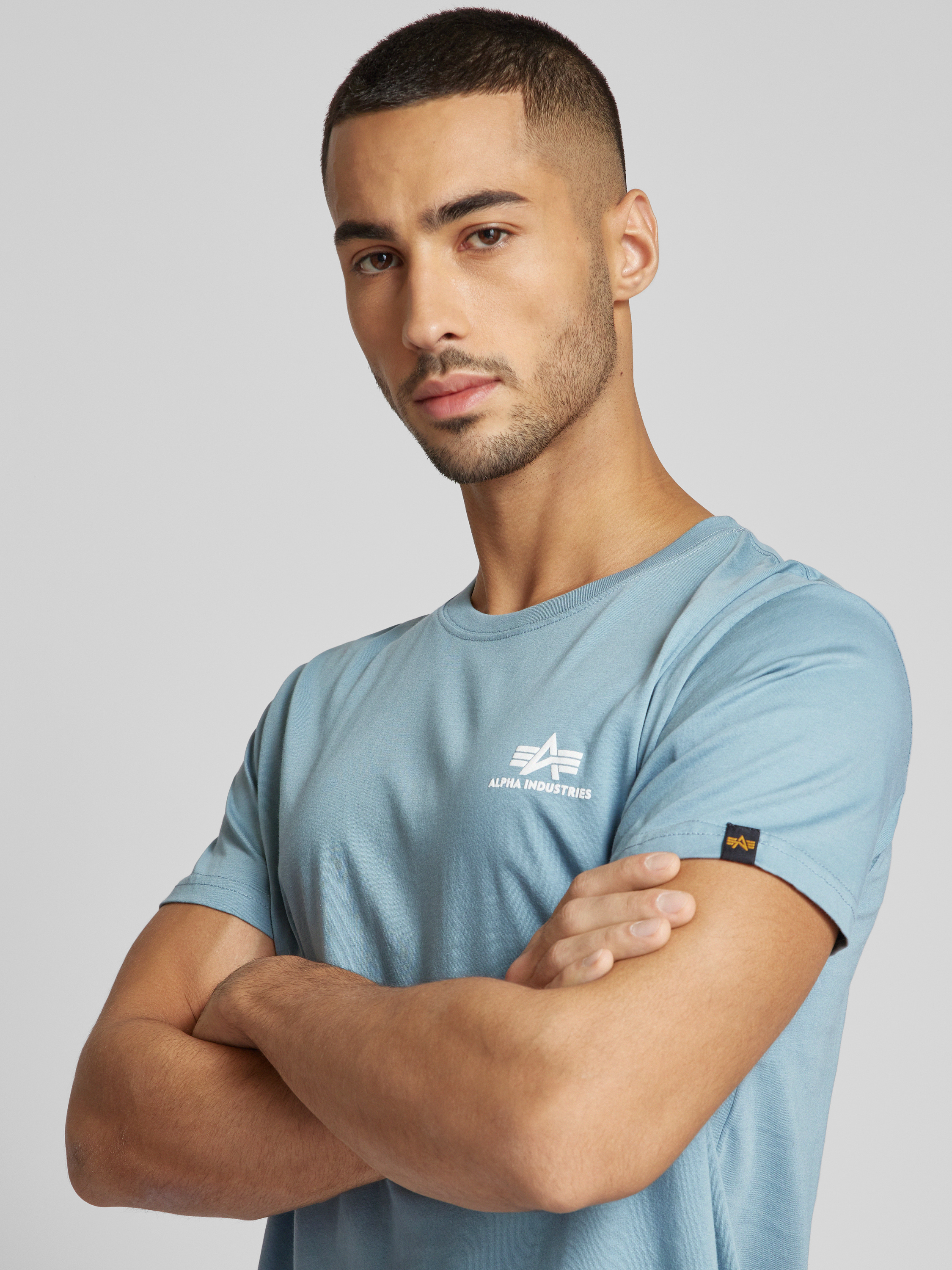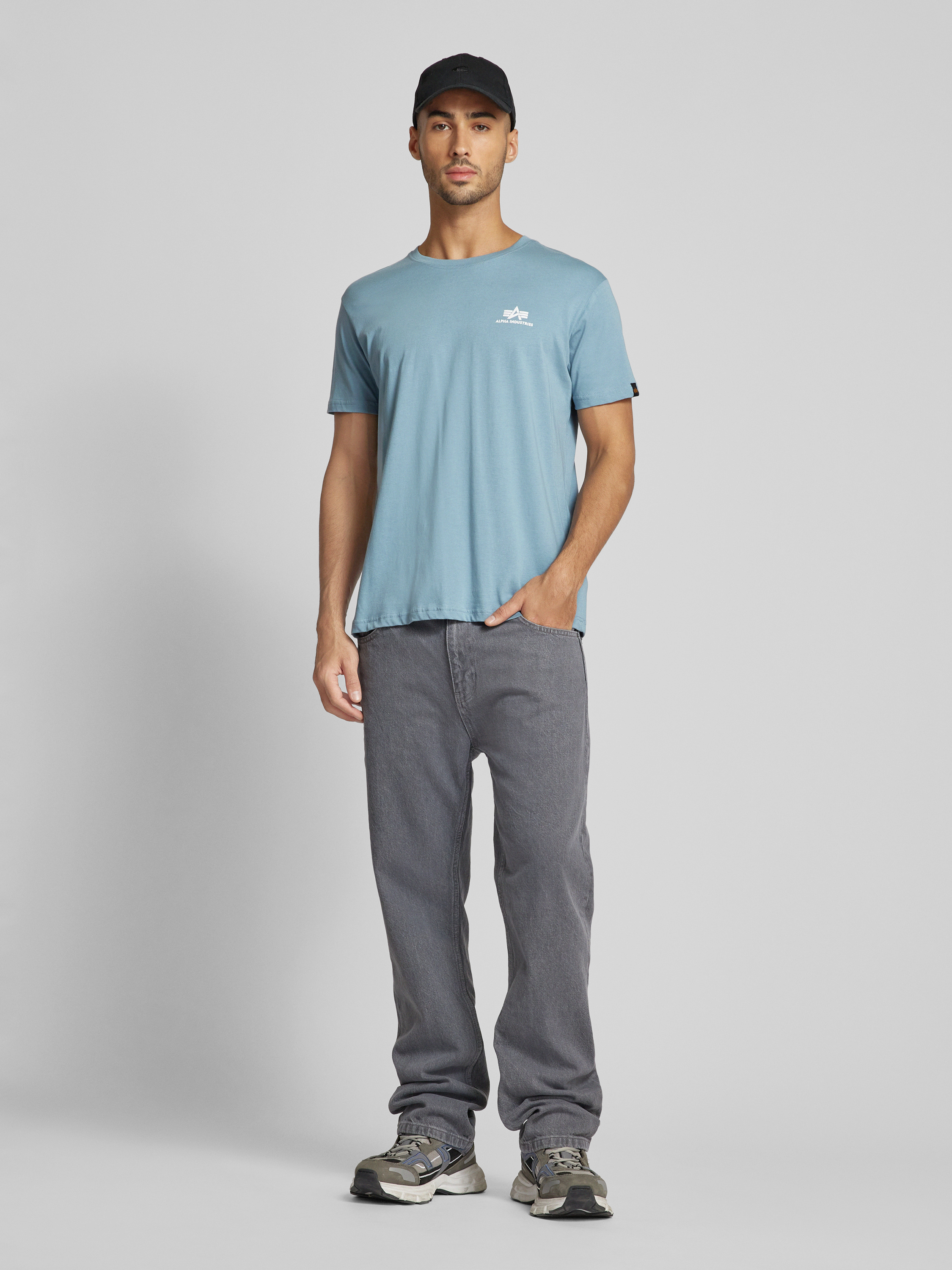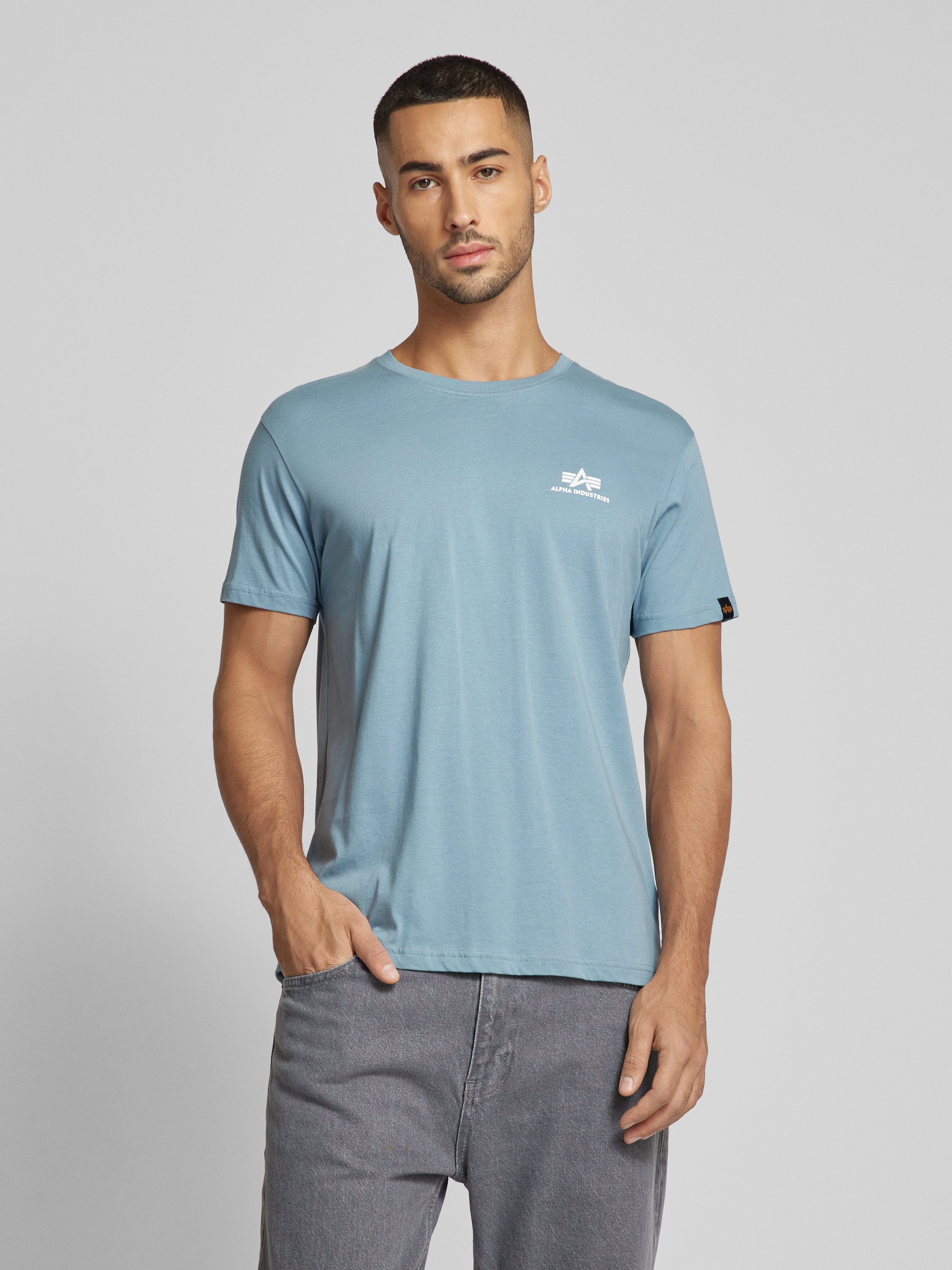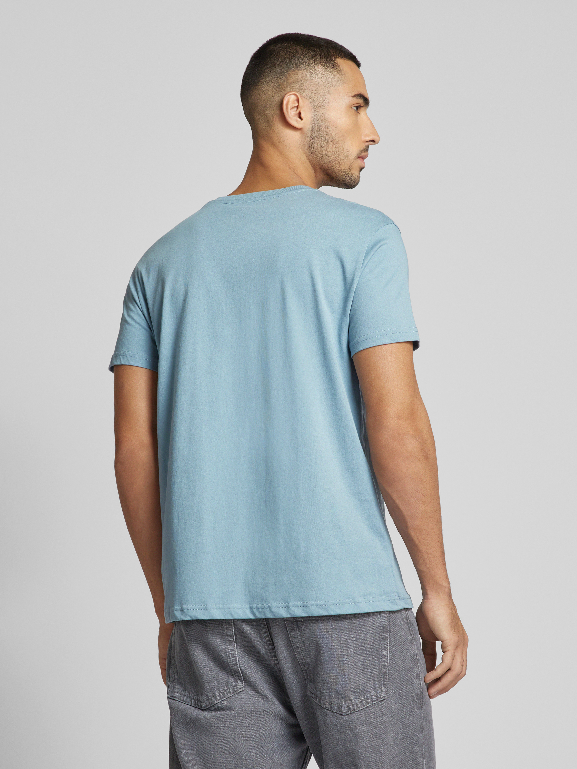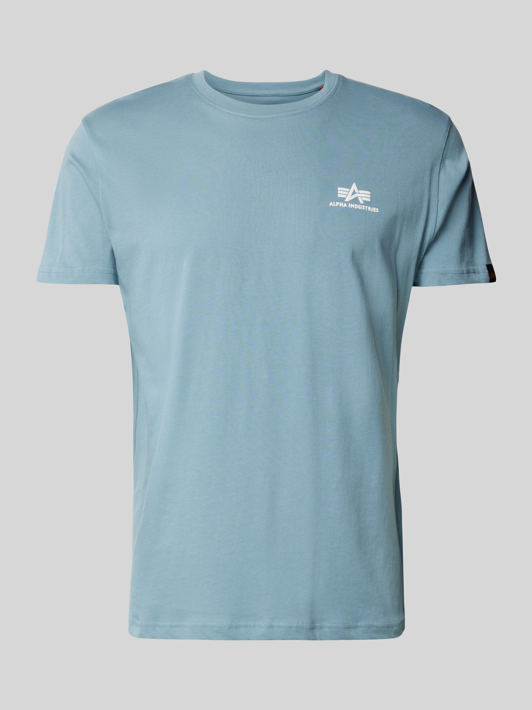 T-shirt met labelprint, model 'BASIC' in ijsblauw