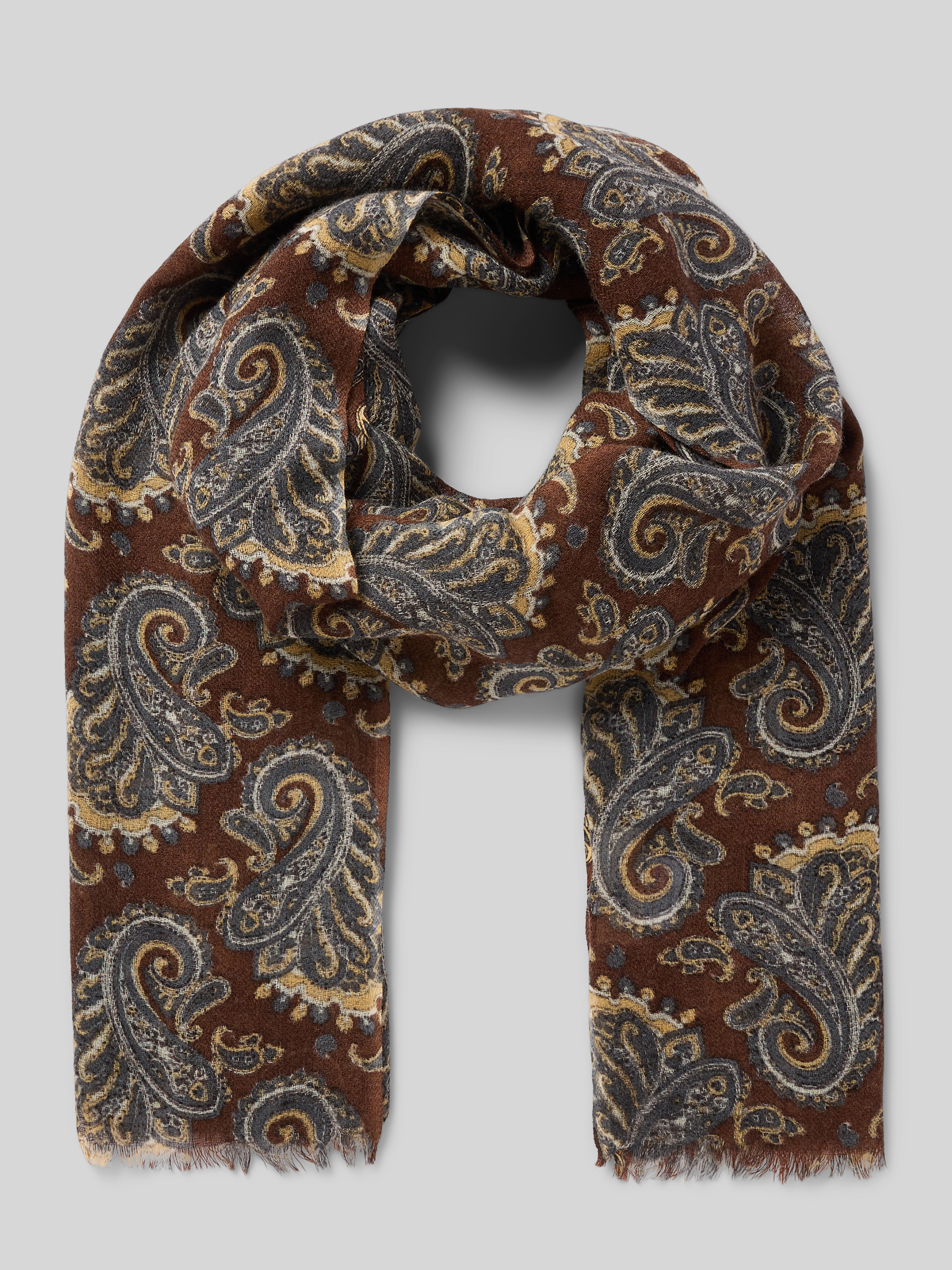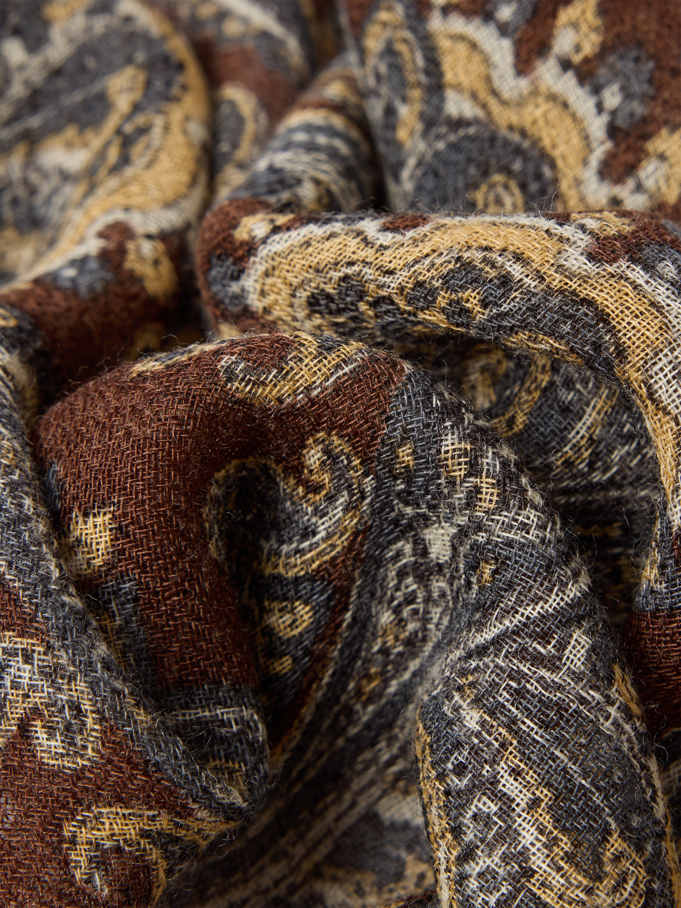 alteaSjaal van wol met paisleymotief in donkerbruin