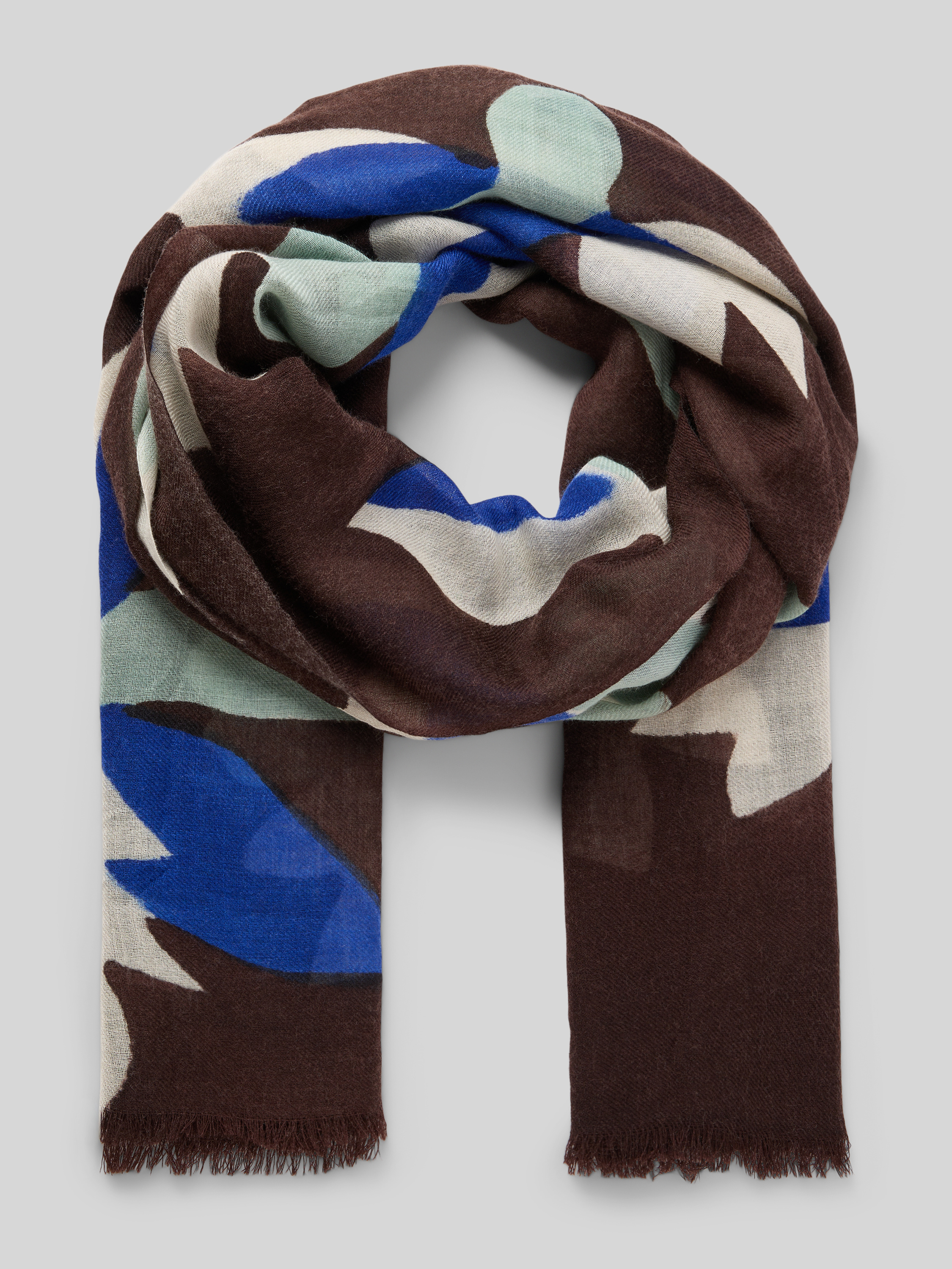 alteaWollen sjaal met all-over bloemenprint, model 'Blätter' in donkerbruin