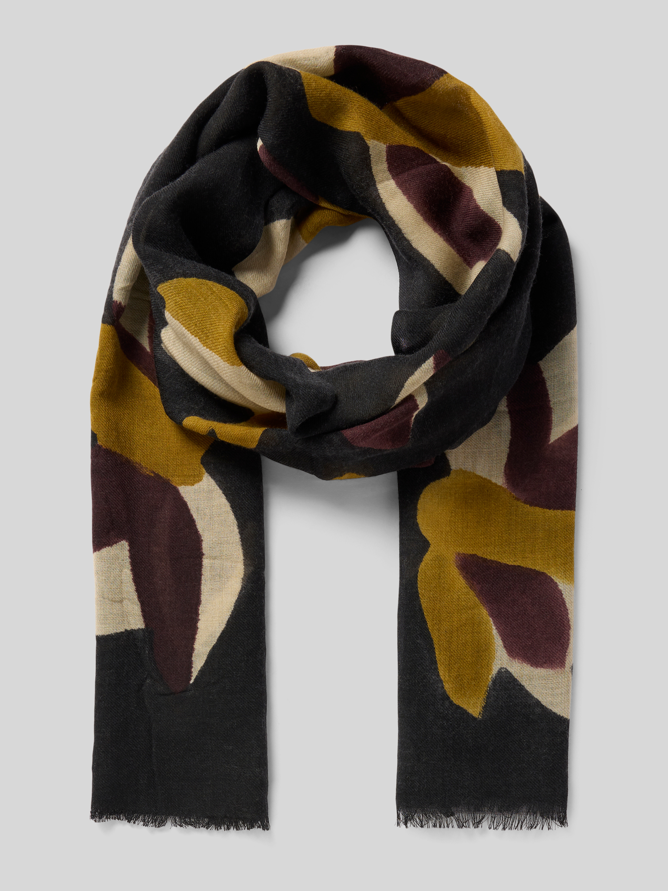 alteaWollen sjaal met all-over bloemenprint, model 'Blätter' in olijfgroen