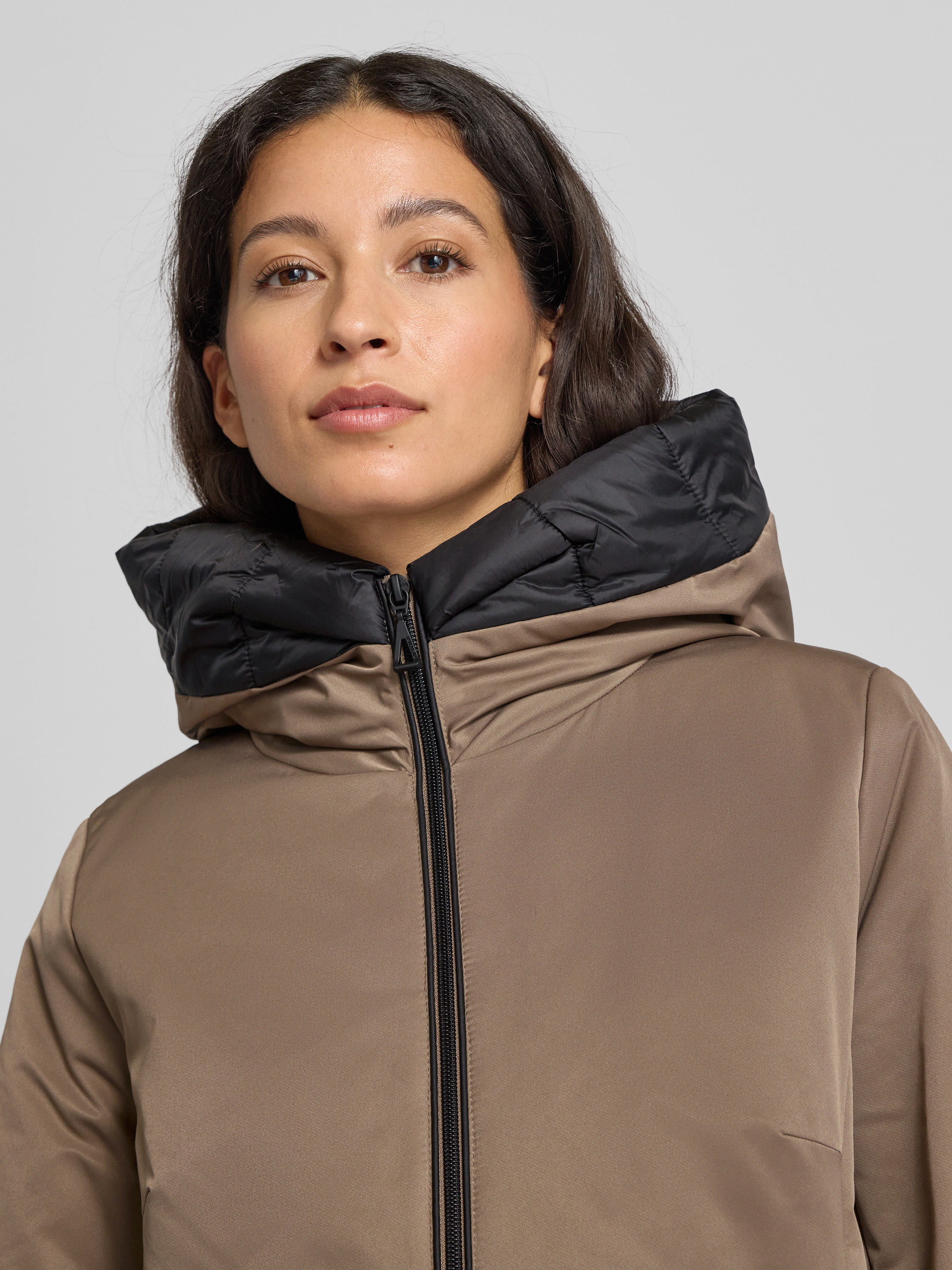 Jas met capuchon in middenbruin
