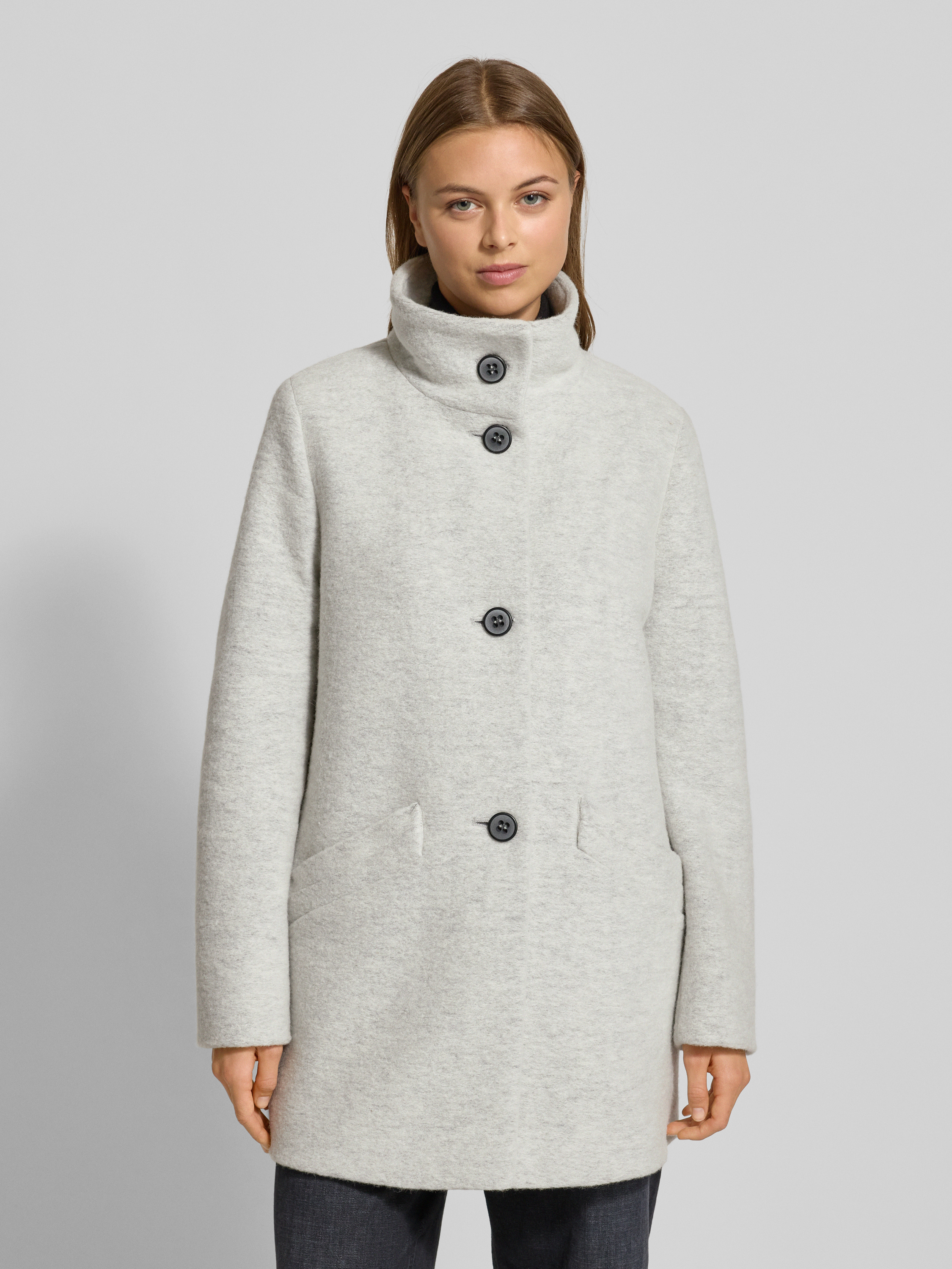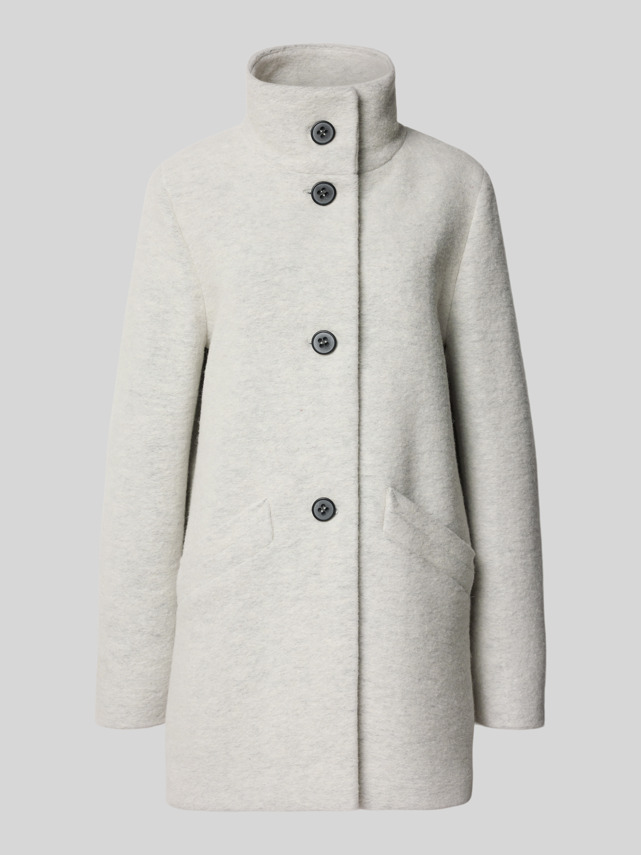 Amber & JuneLange jas met opstaande kraag en steekzakken in lichtgrijs gemêleerd