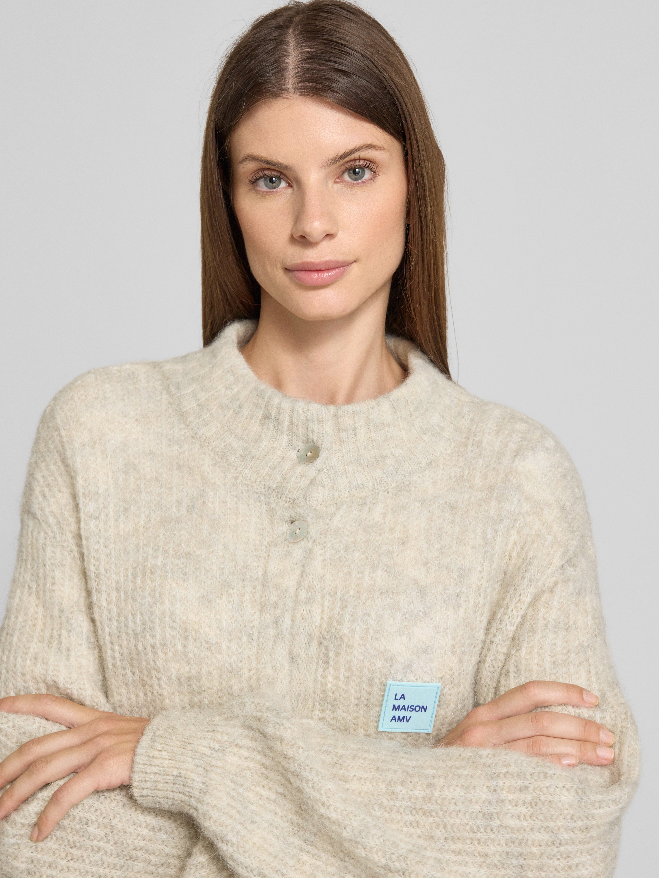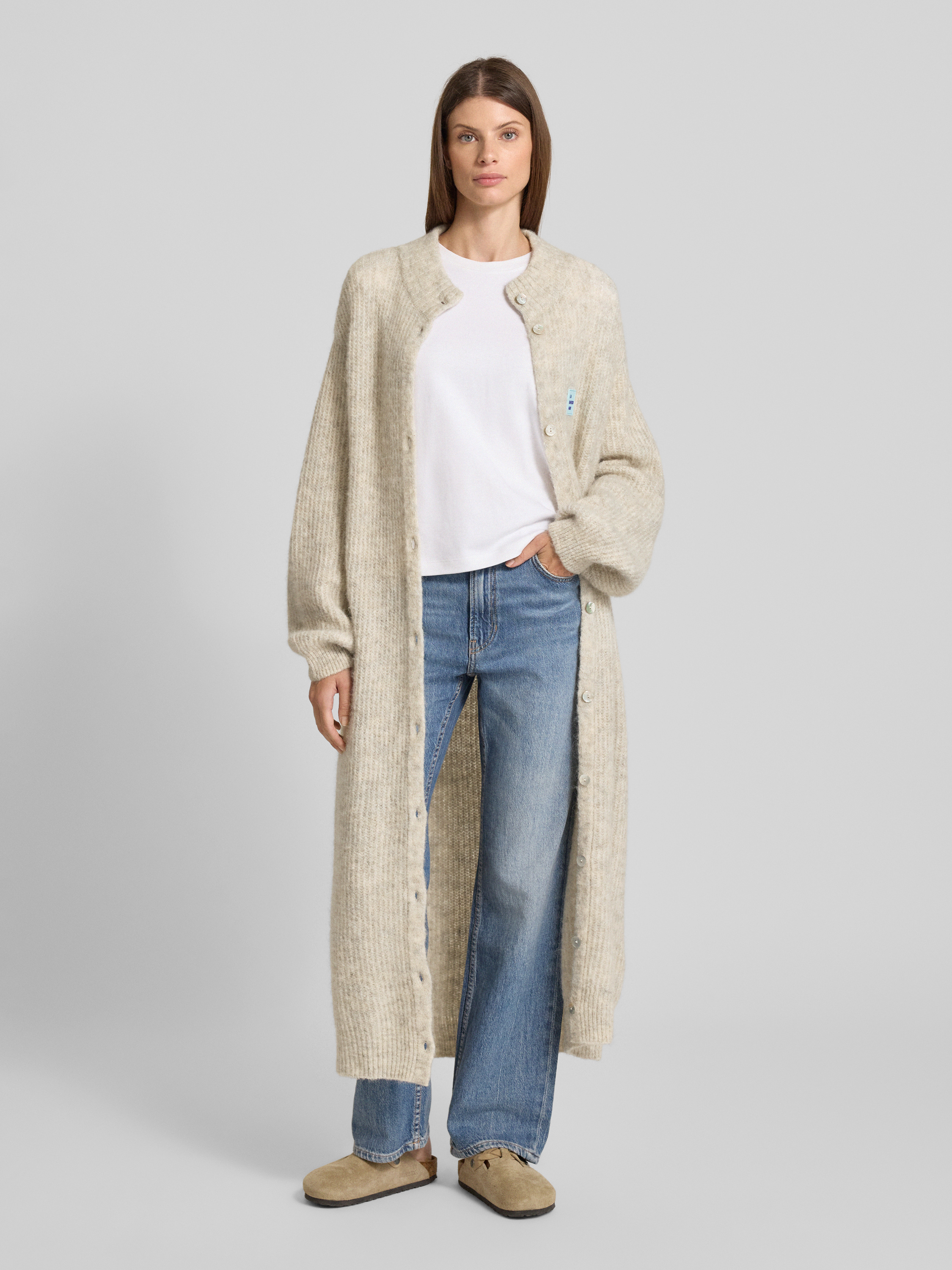 Extra lang gebreid jack in lichtgrijs gemêleerd