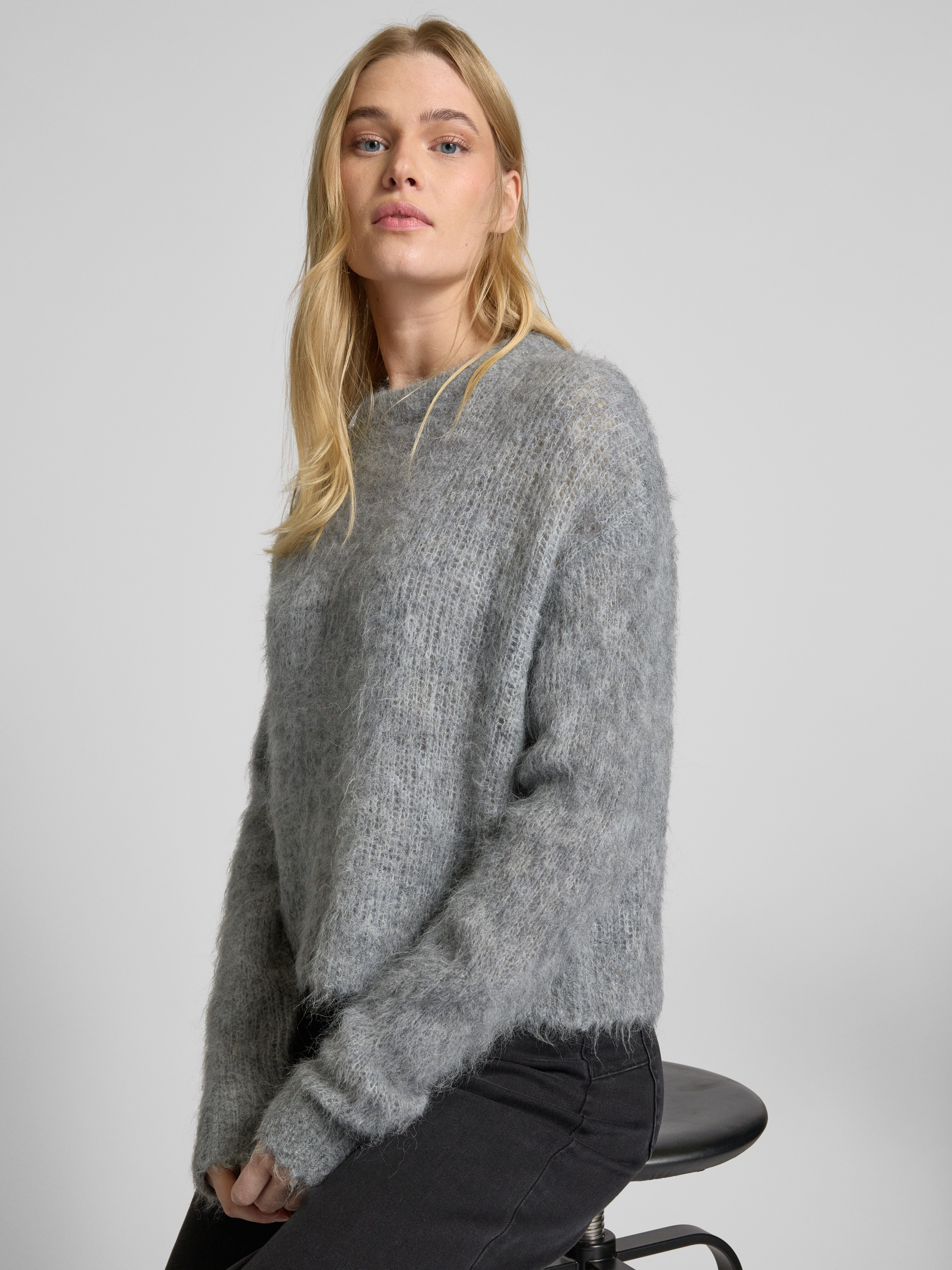 American VintageGebreide pullover met ribboorden, model 'BYMI' in middengrijs