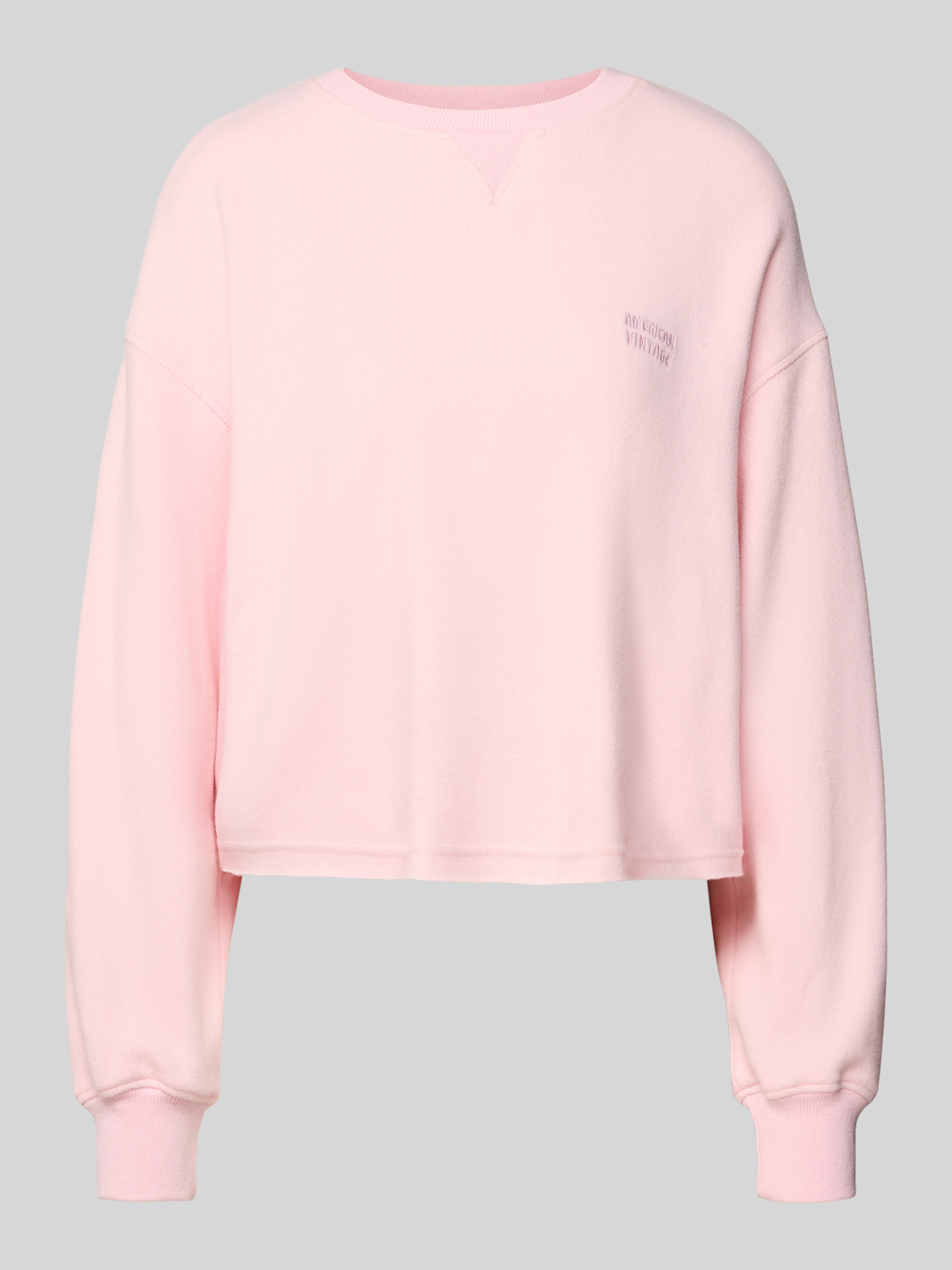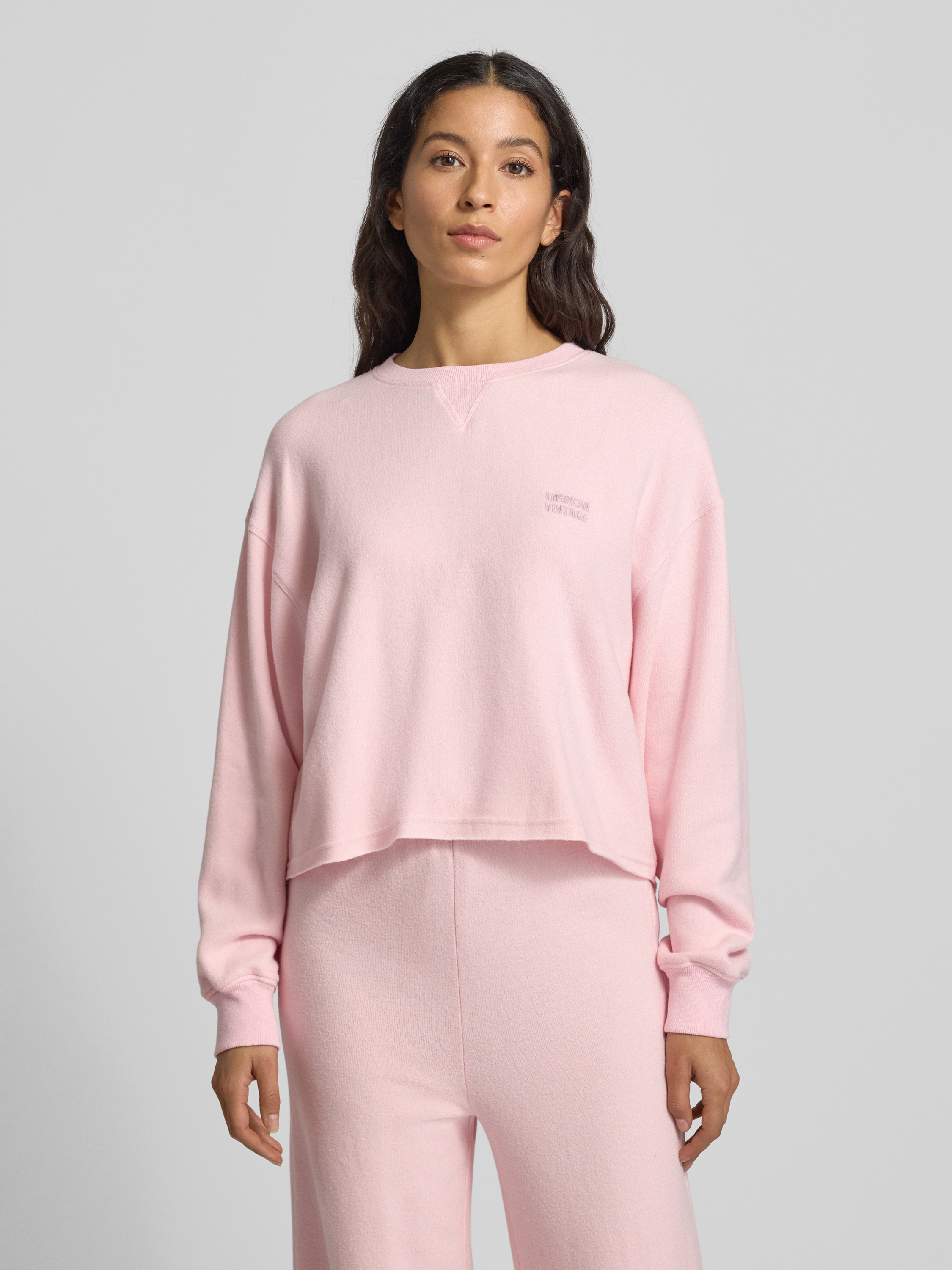 Kort sweatshirt met labelstitching, model 'ETOK' in lichtroze