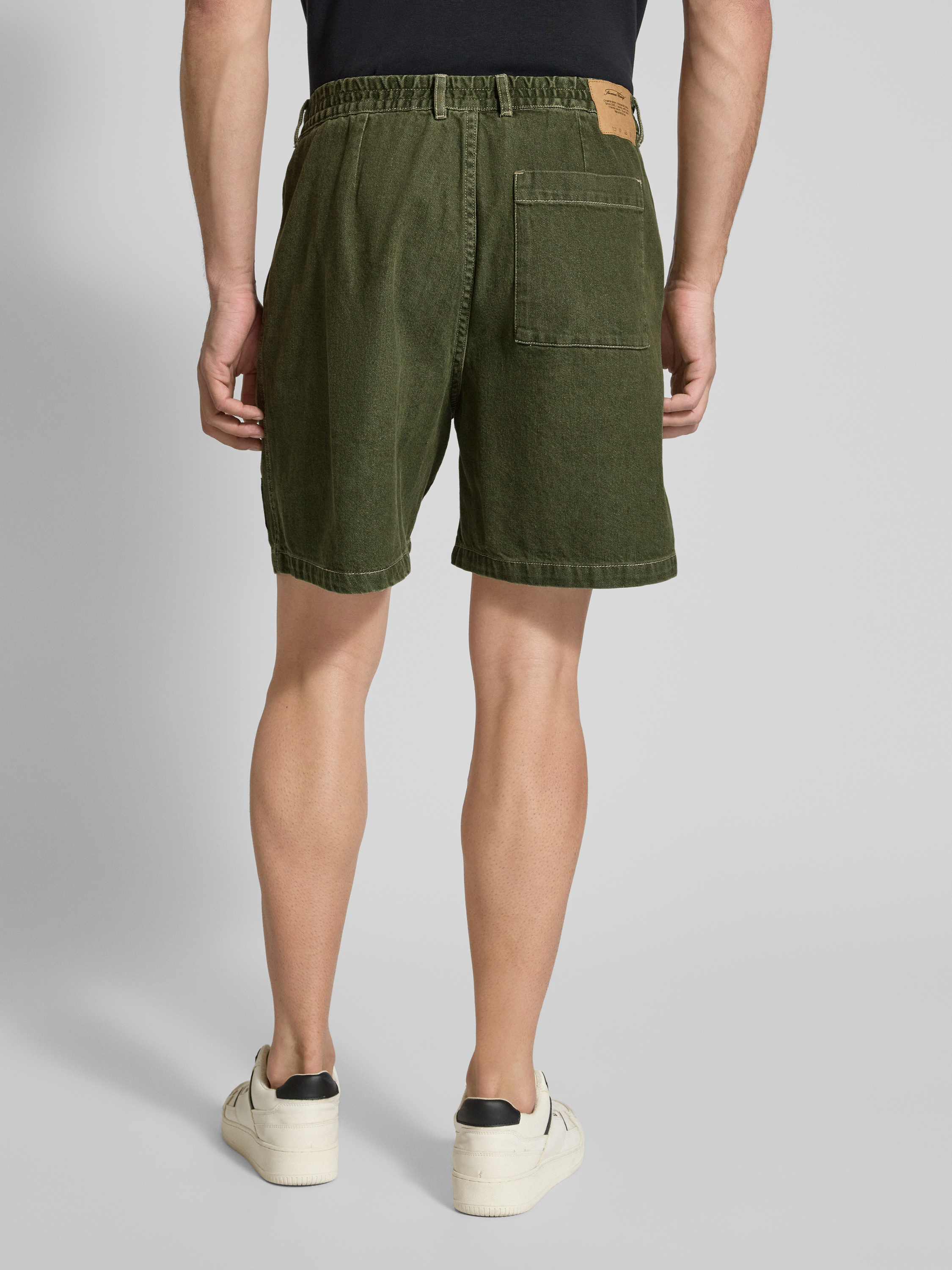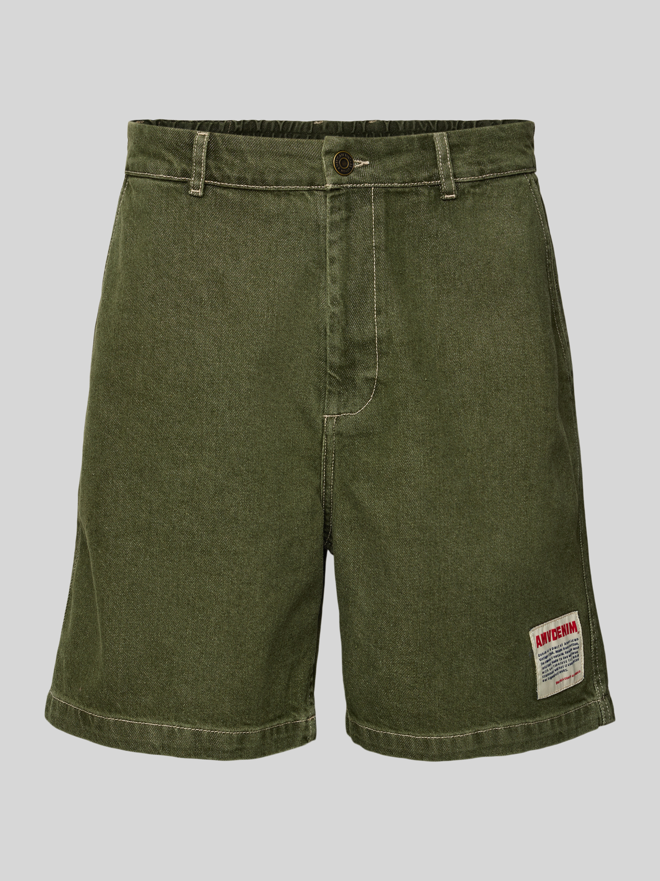 Korte baggy fit jeans met labelpatch, model 'UZATOWN' in kaki