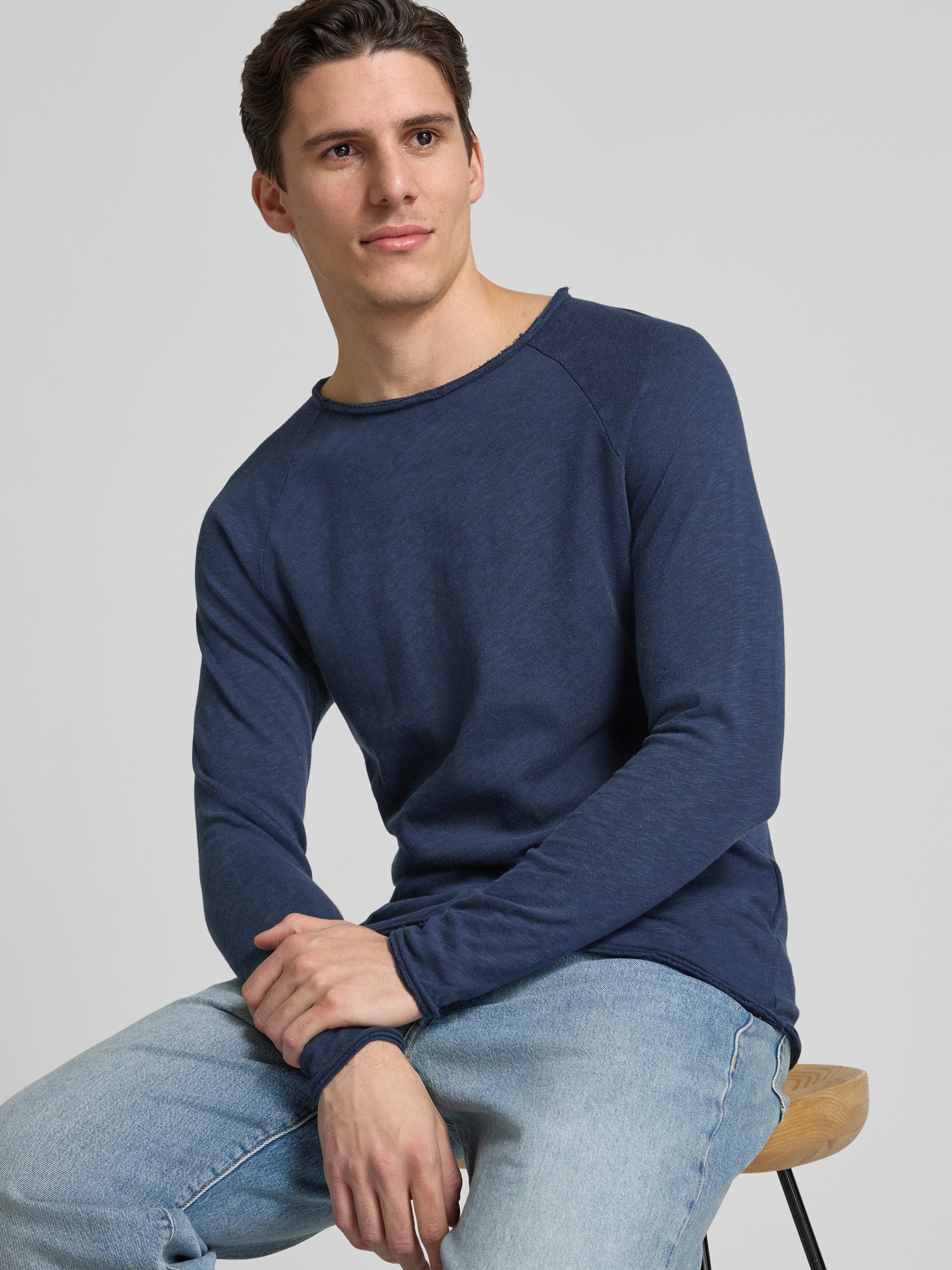 Shirt met lange mouwen en ronde hals, model 'SONOMA' in donkerblauw