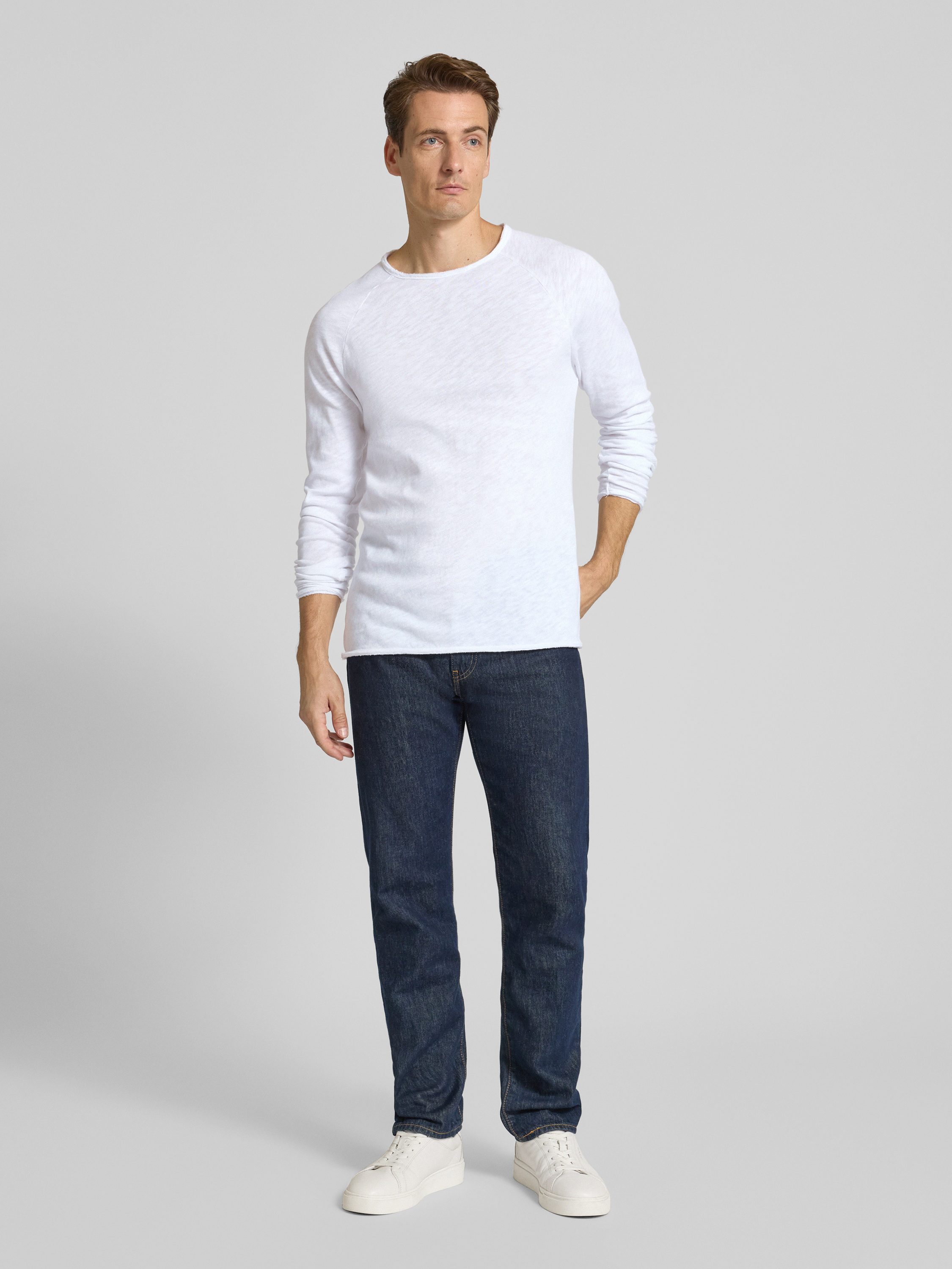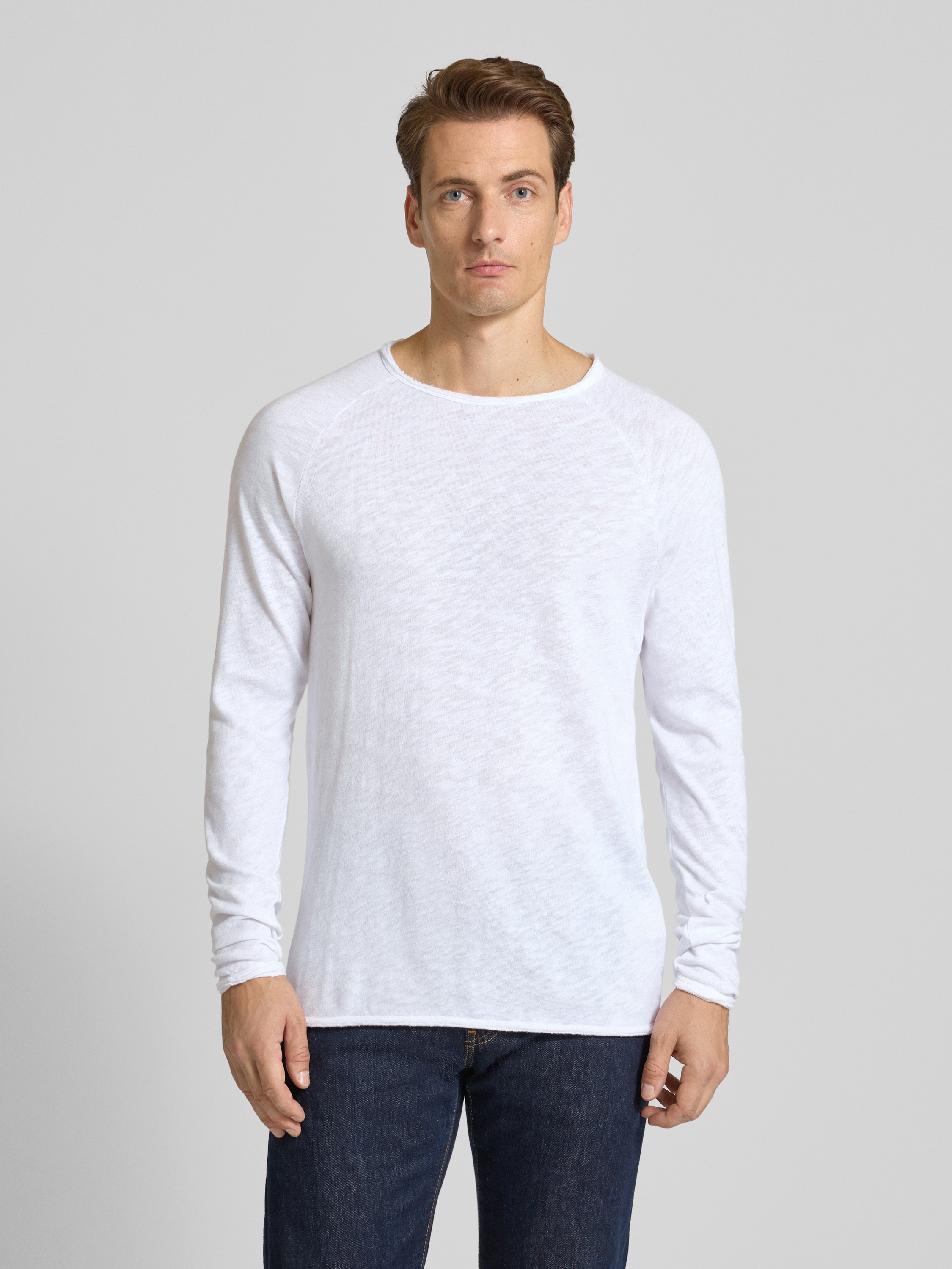 Shirt met lange mouwen en ronde hals, model 'SONOMA' in wit