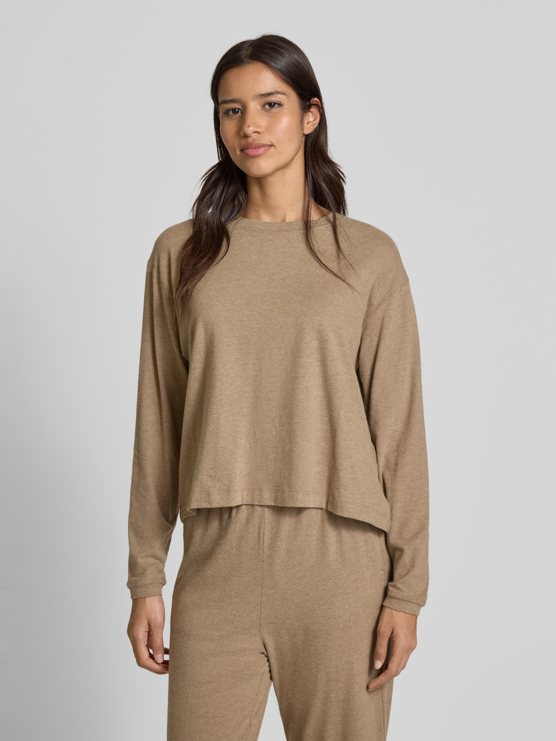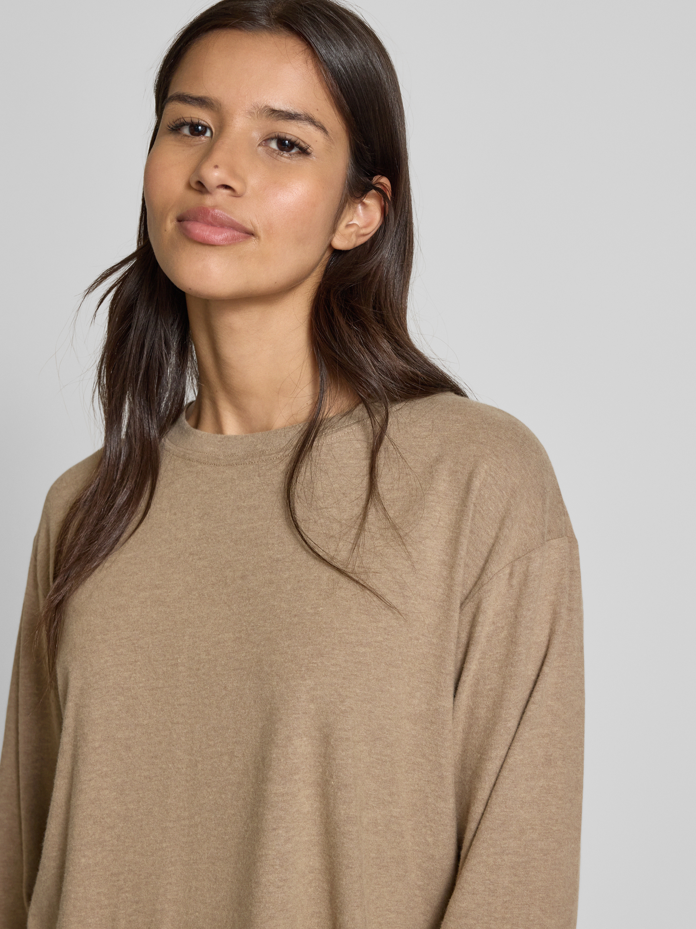 Shirt met lange mouwen en ronde hals, model 'YPAWOOD' in zand gemêleerd