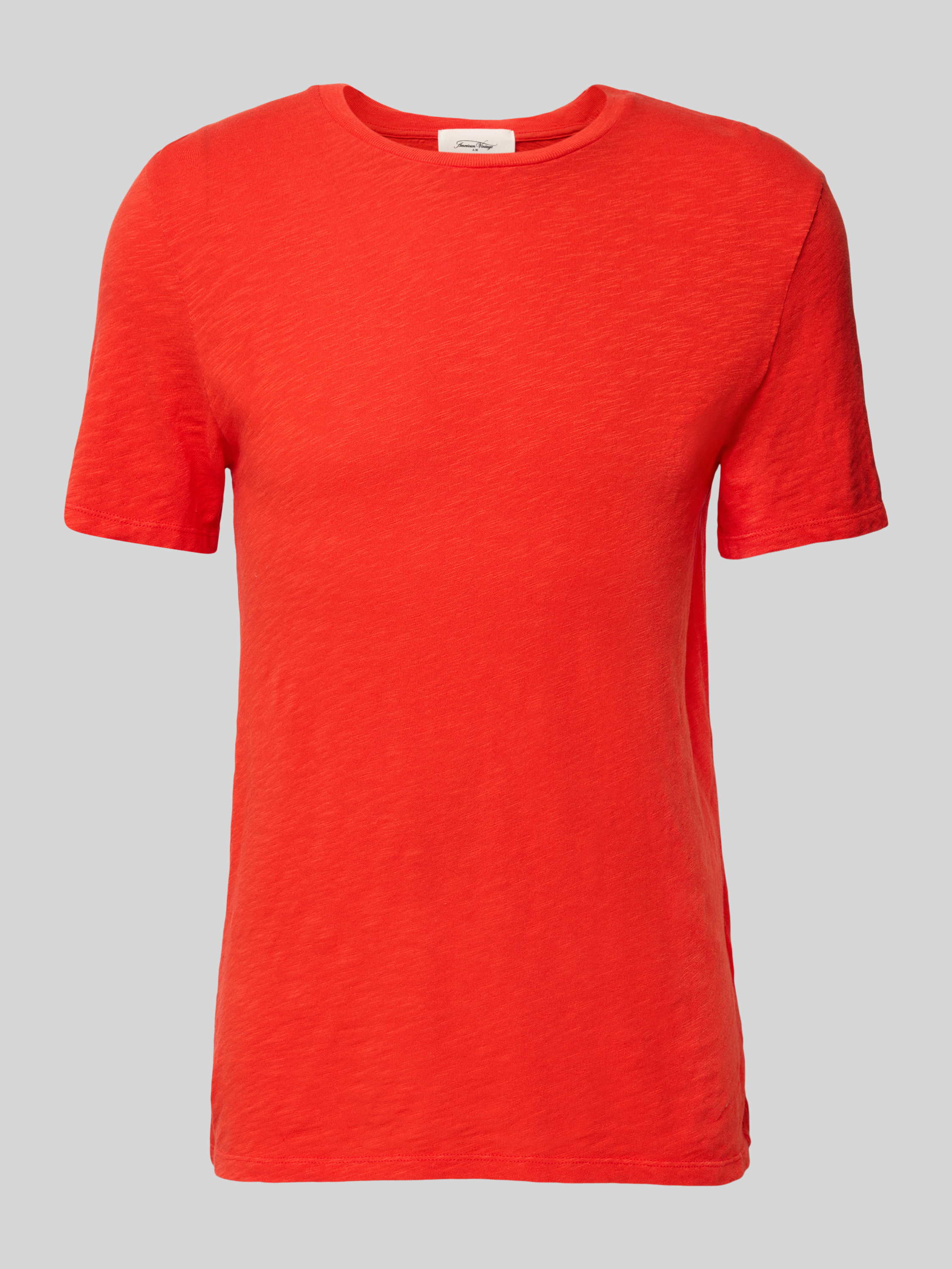 T-shirt met geribde ronde hals, model 'BYSAPICK' in rood