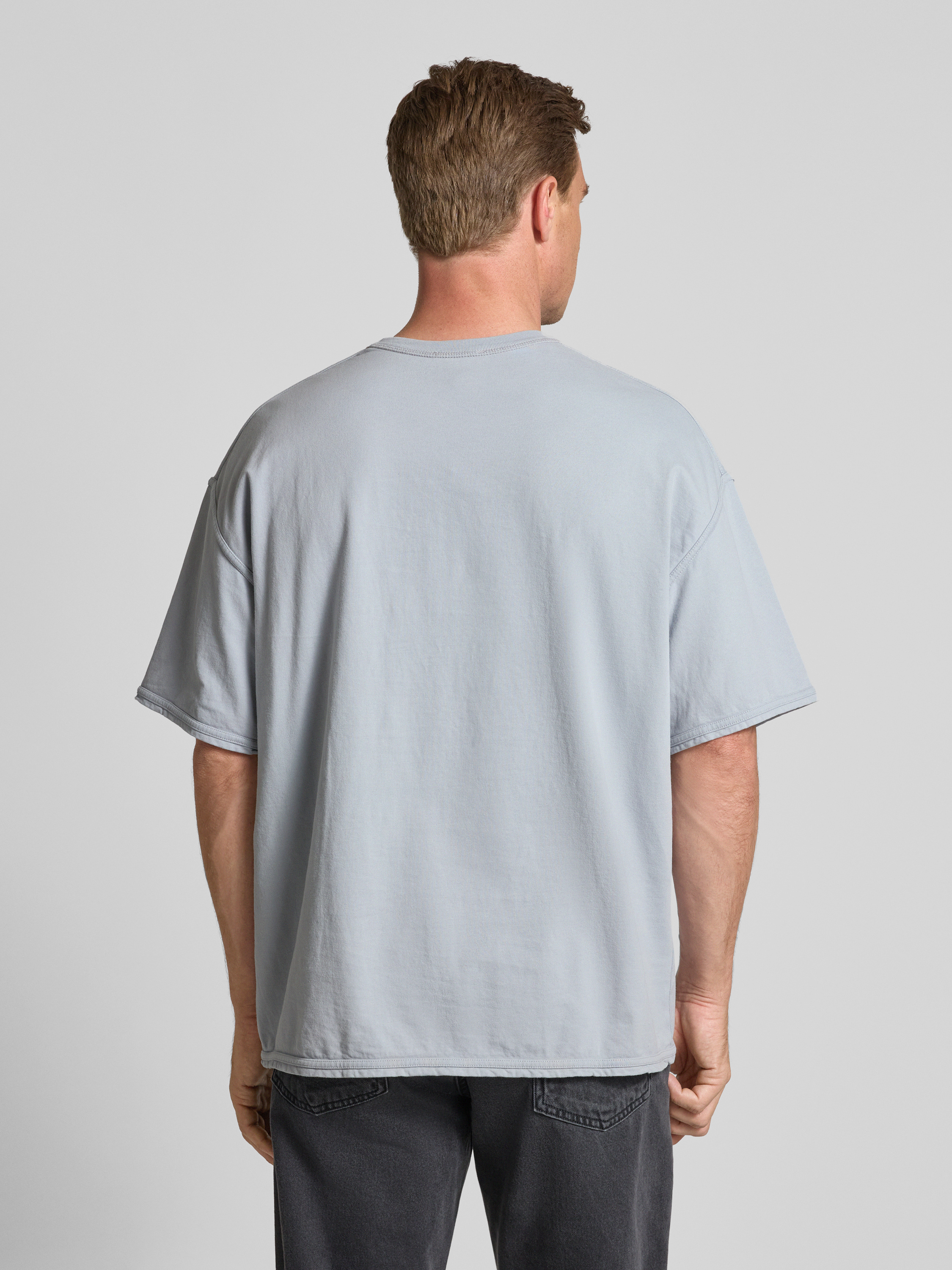 T-shirt met geribde ronde hals, model 'FAZY' in lichtgrijs