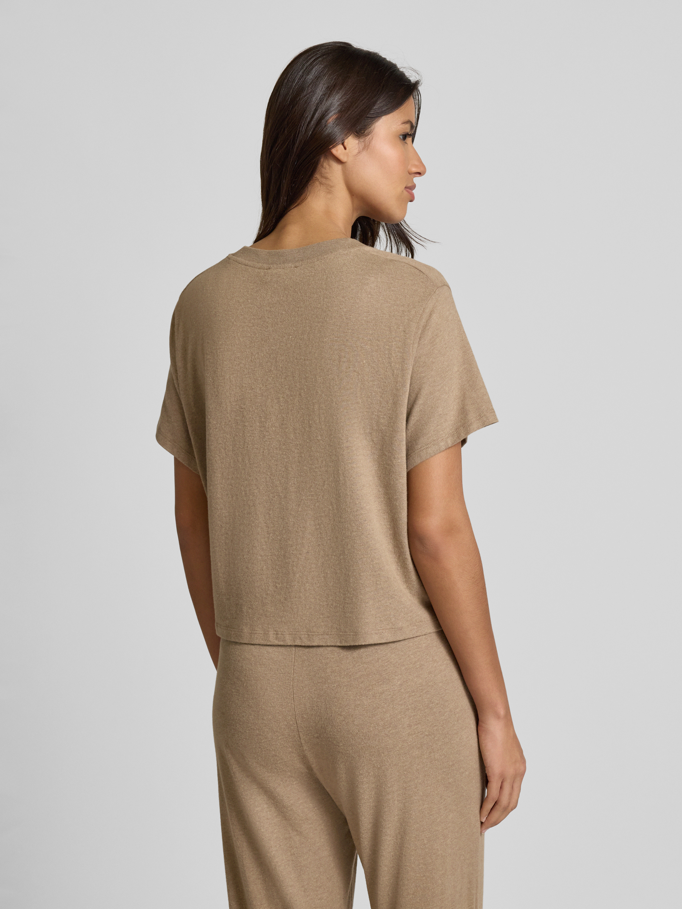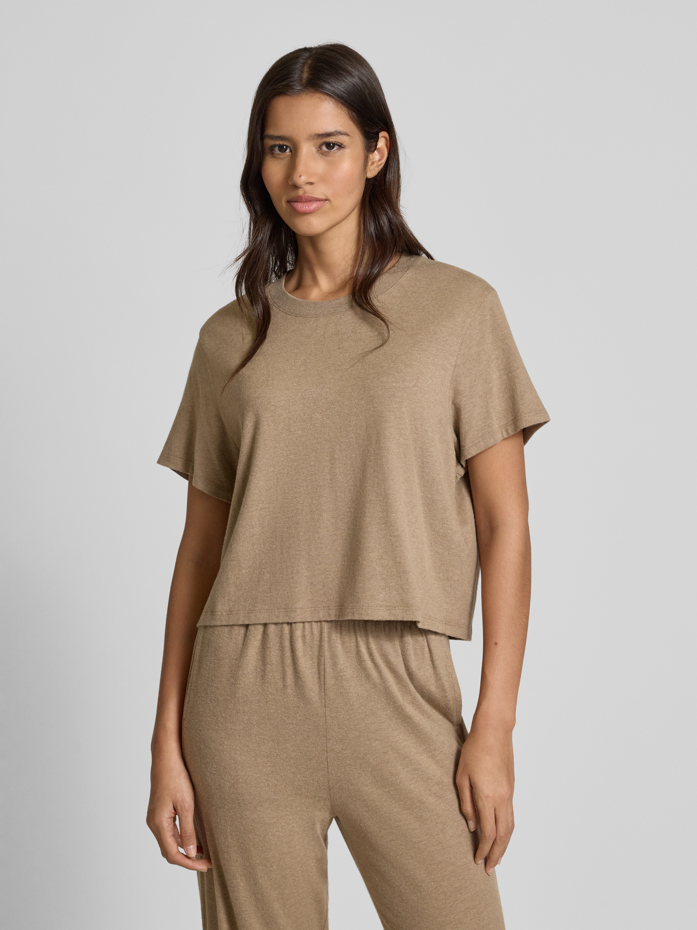 T-shirt met ronde hals, model 'YPAWOOD' in zand gemêleerd
