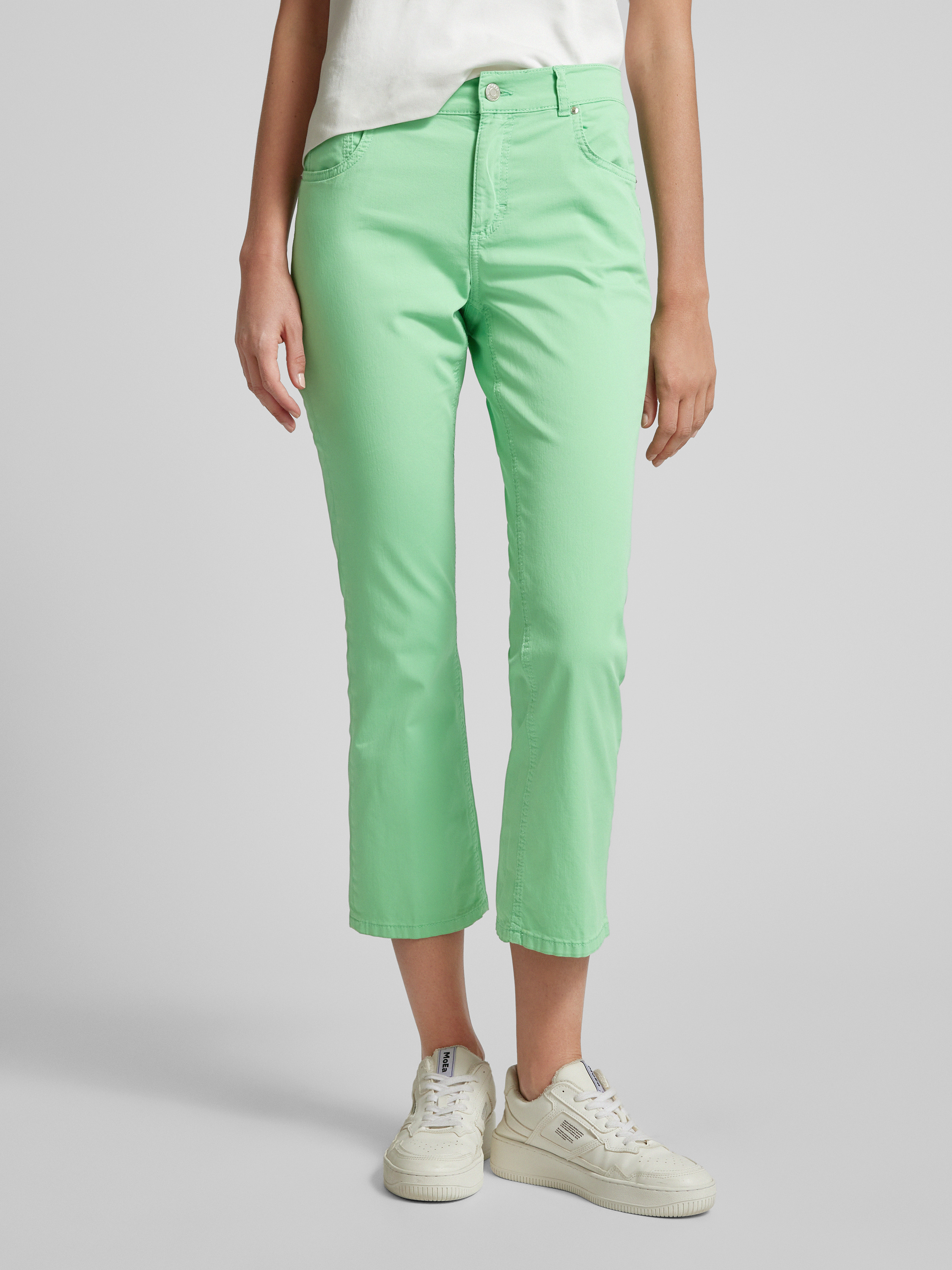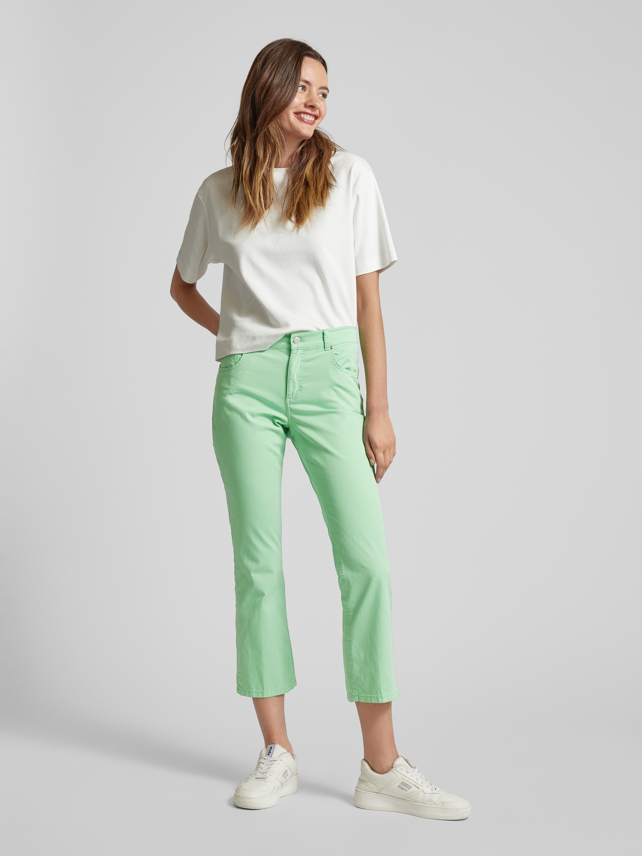 Broek met reguliere pasvorm, met verkort model, model 'Leni' in groen