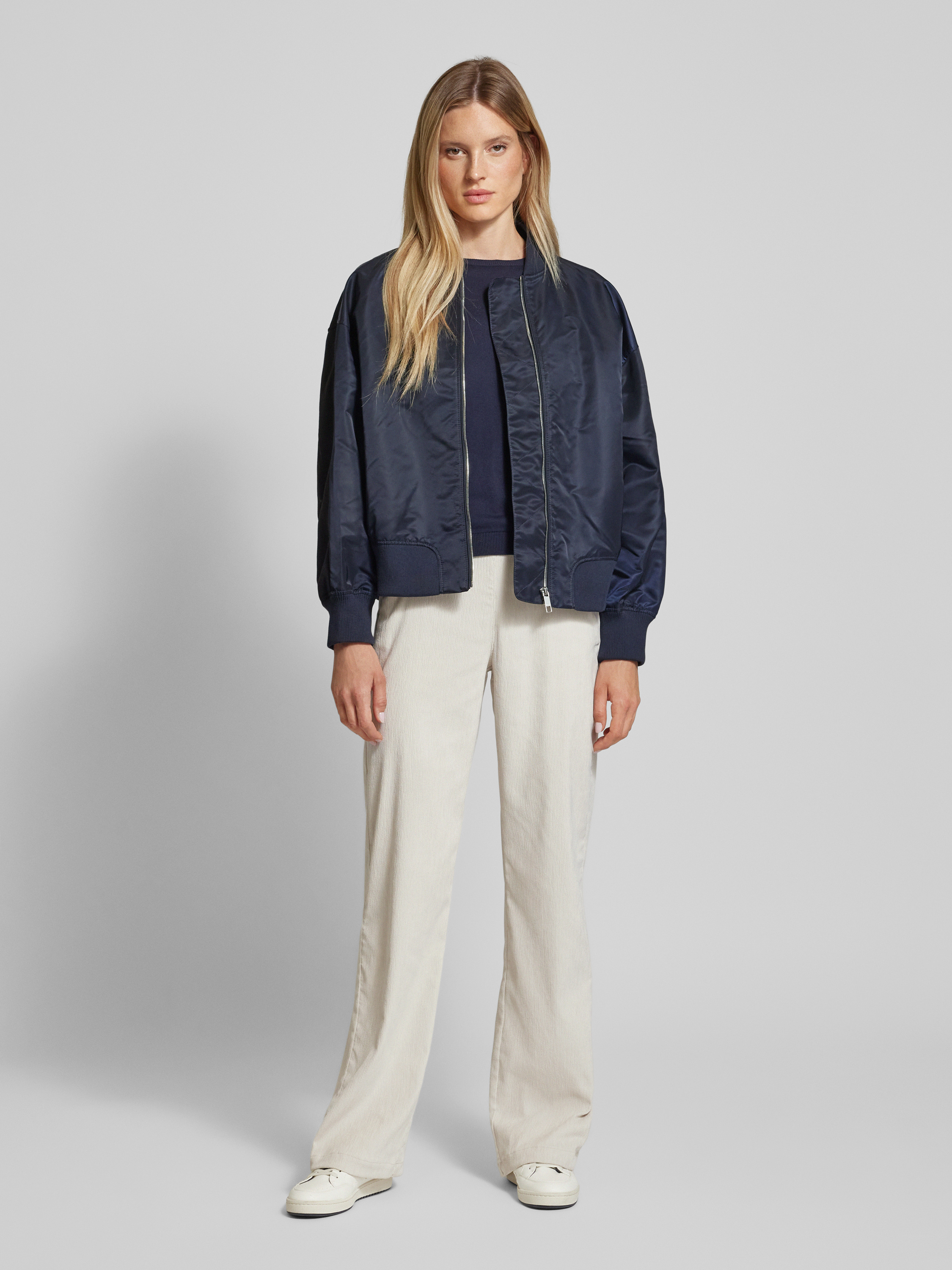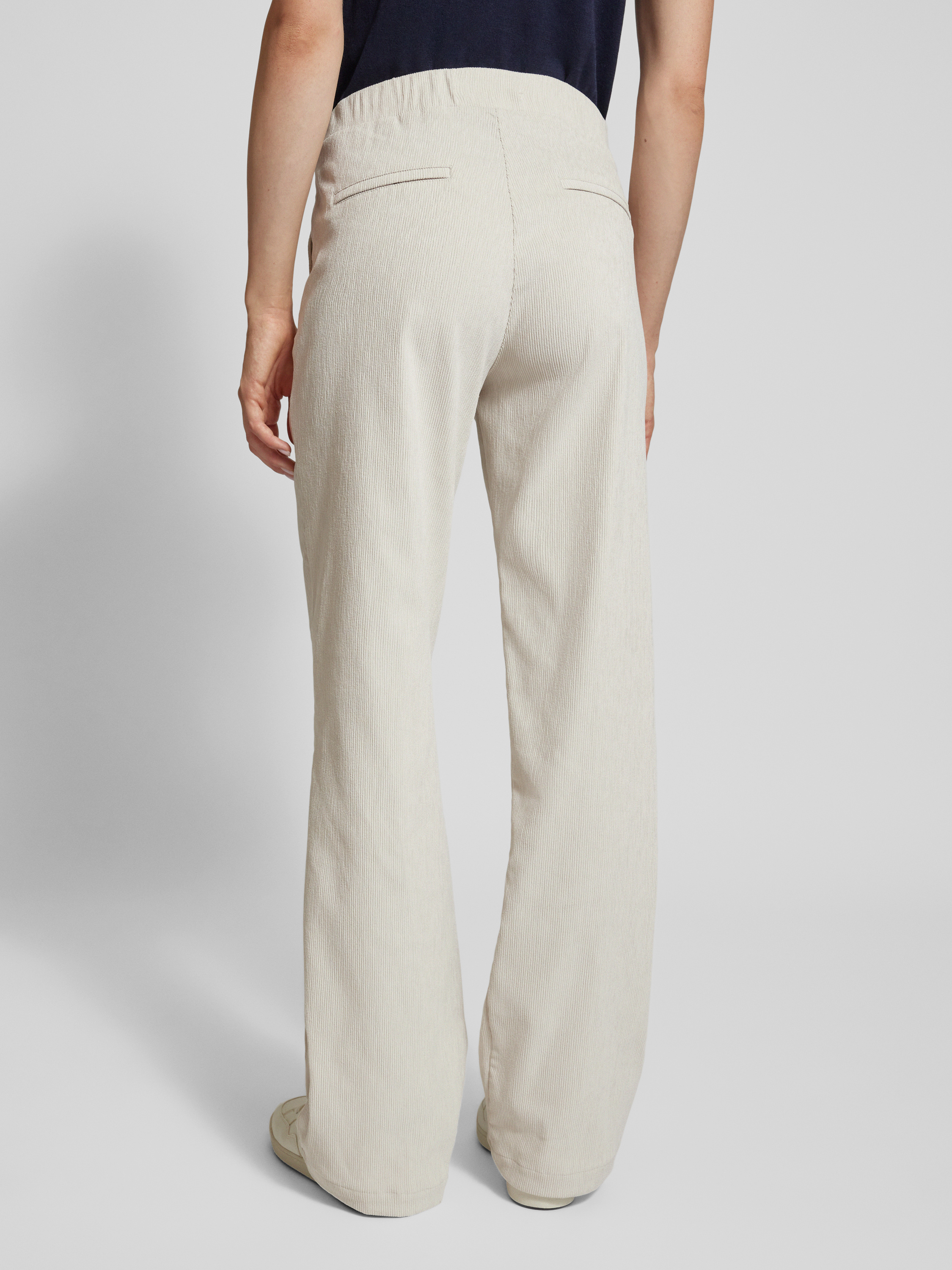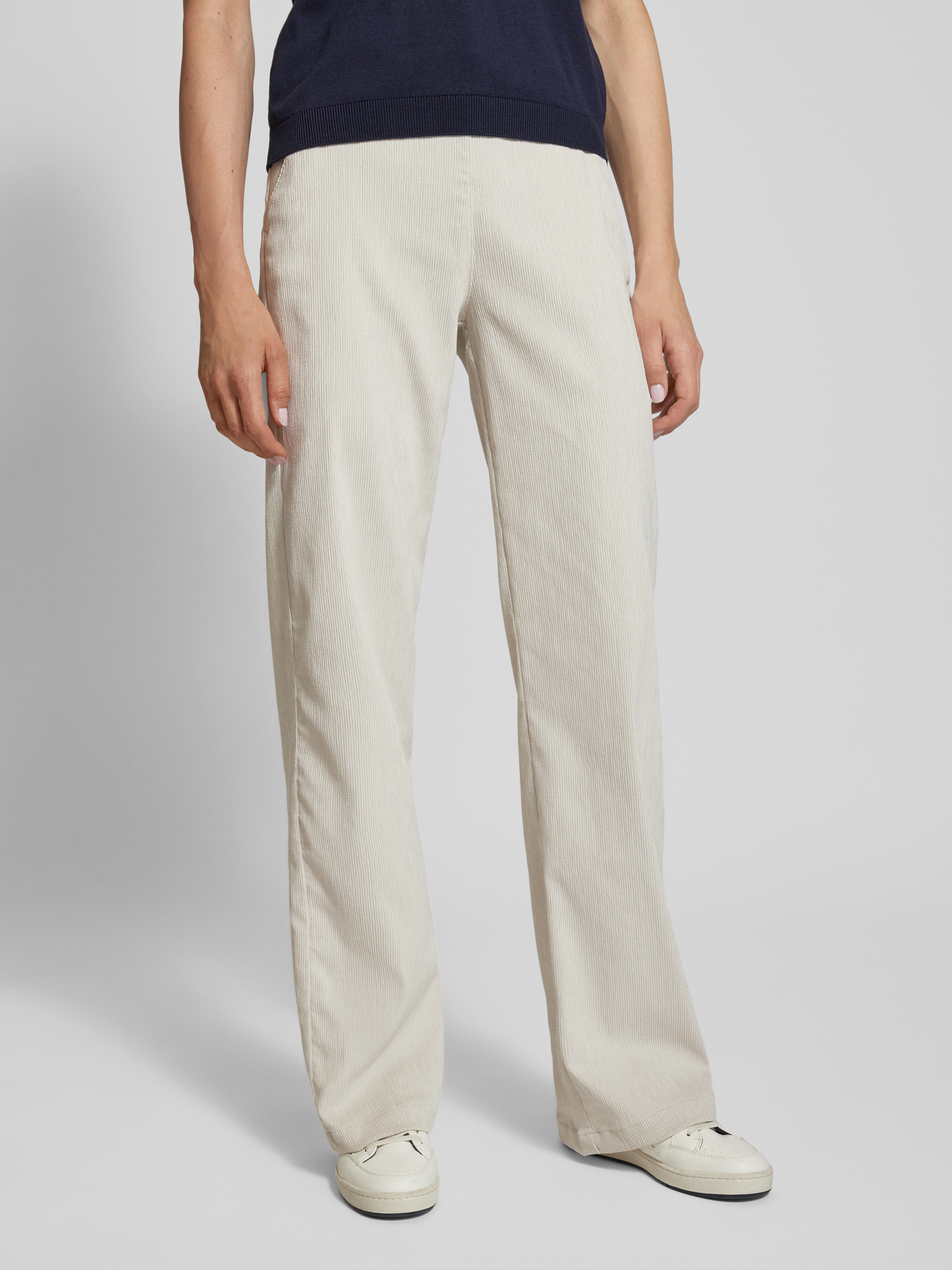 Broek van fijne corduroy met elastische band, model 'LIZ' in ecru