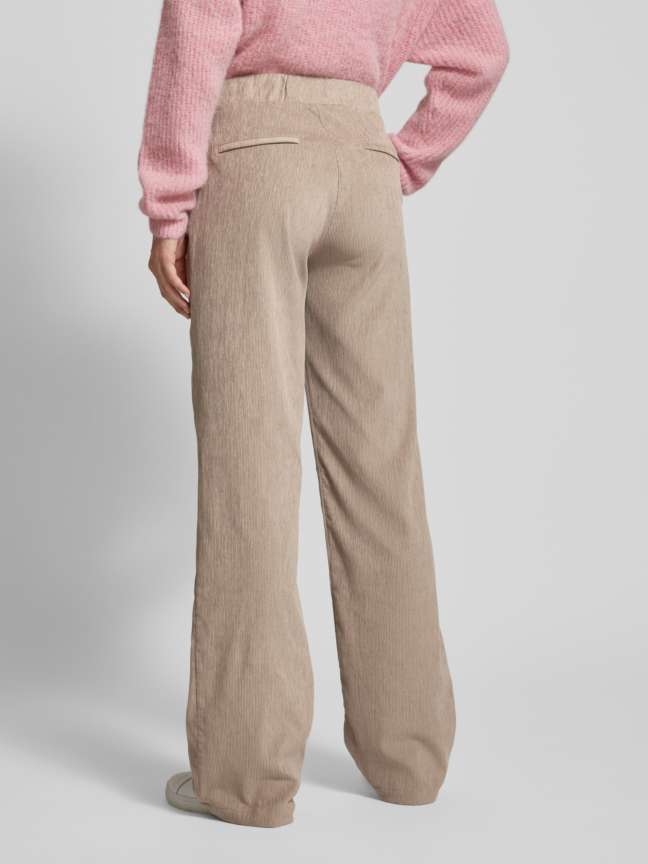 Broek van fijne corduroy met elastische band, model 'LIZ' in roodbruin