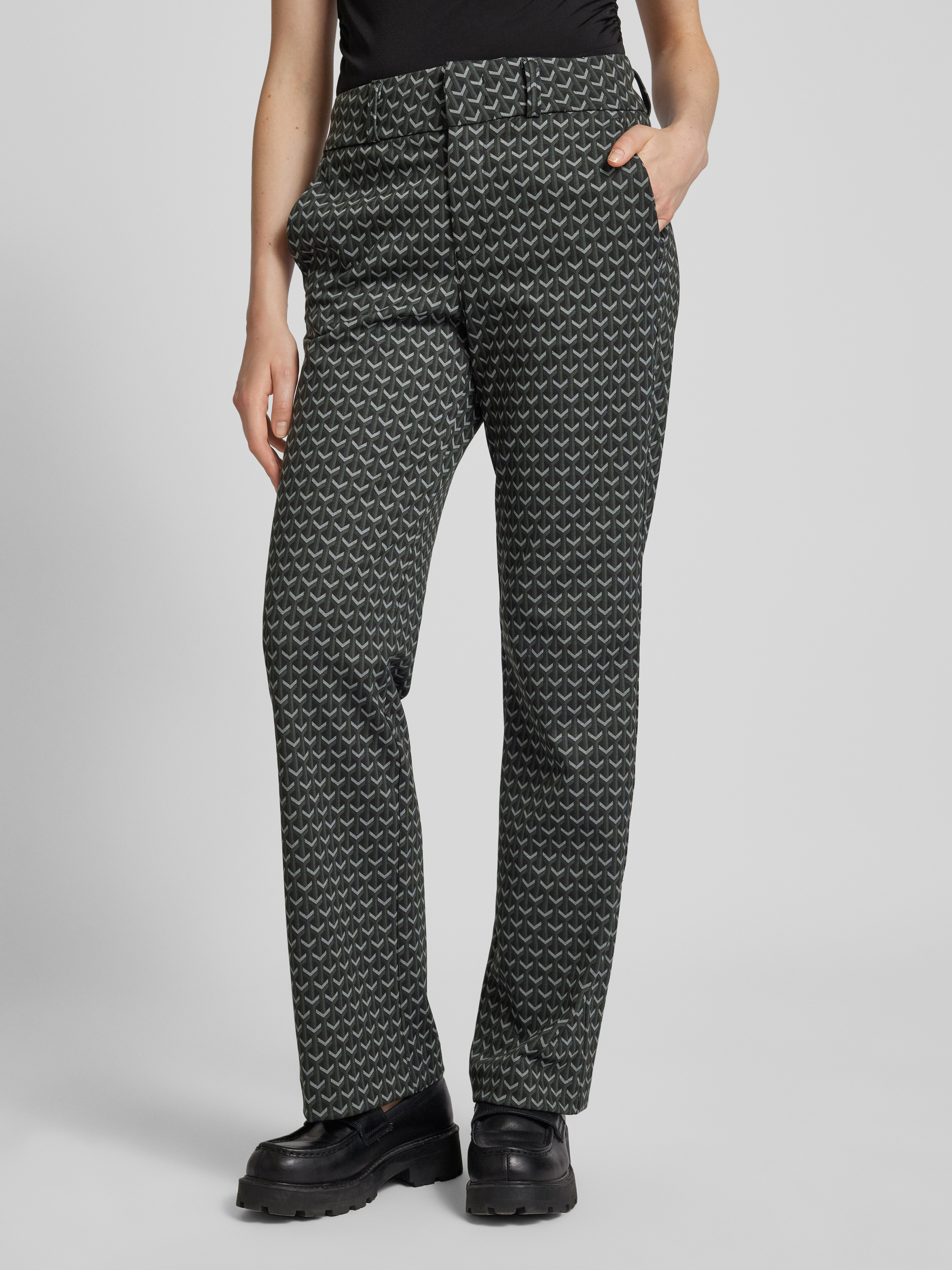 Regular fit stoffen broek met elastische band, model 'LARA CHIC' in donkergroen