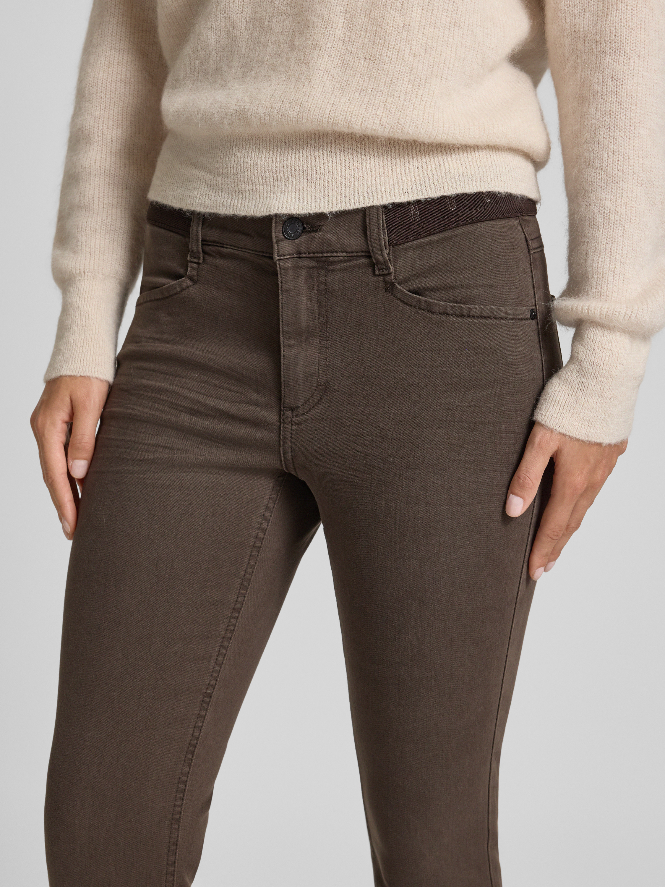 Slim fit jeans met logostitching, model 'Ornella' in donkerbruin