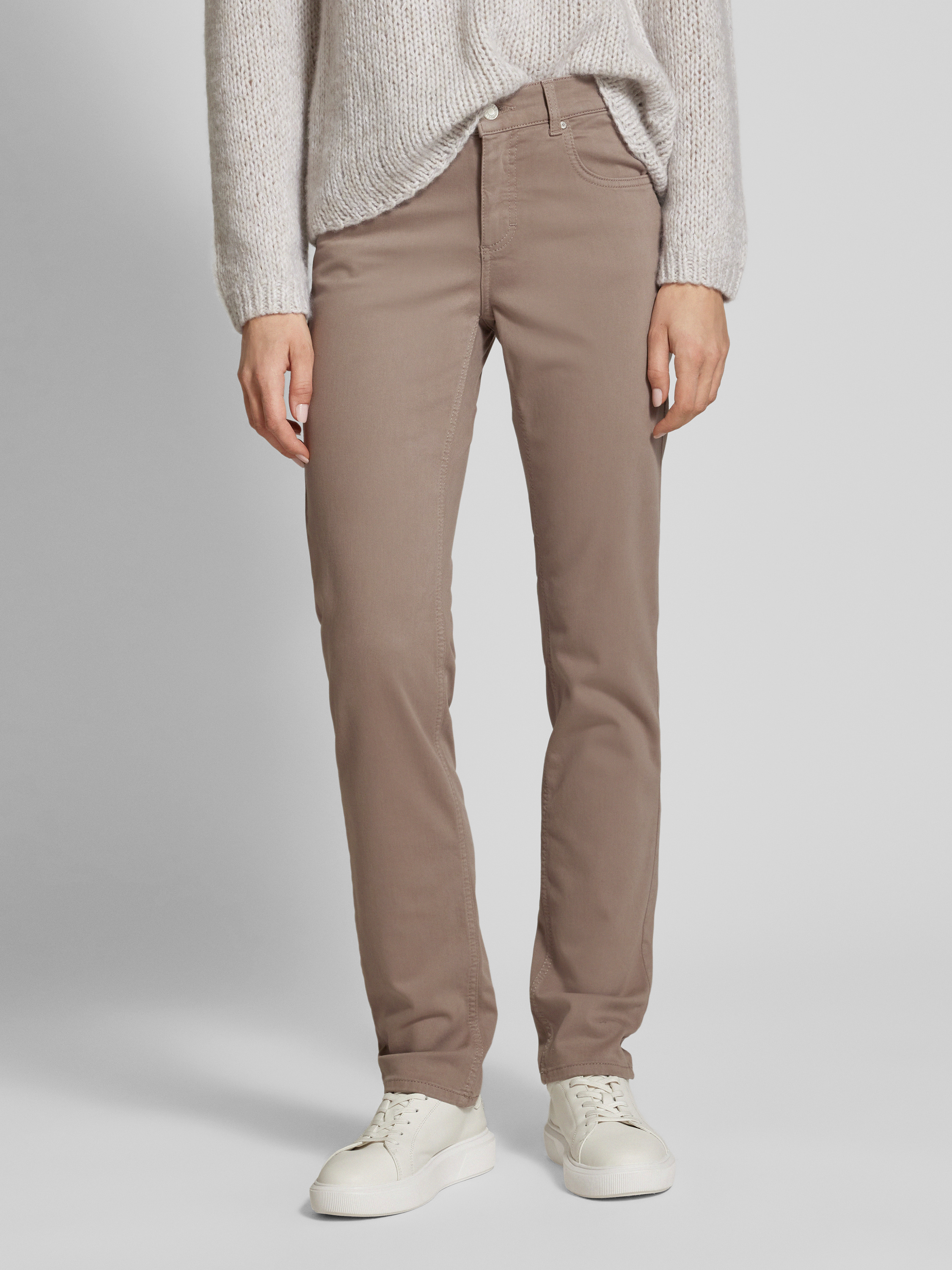 Stoffen broek met 5-pocketmodel, model 'CICI' in beige
