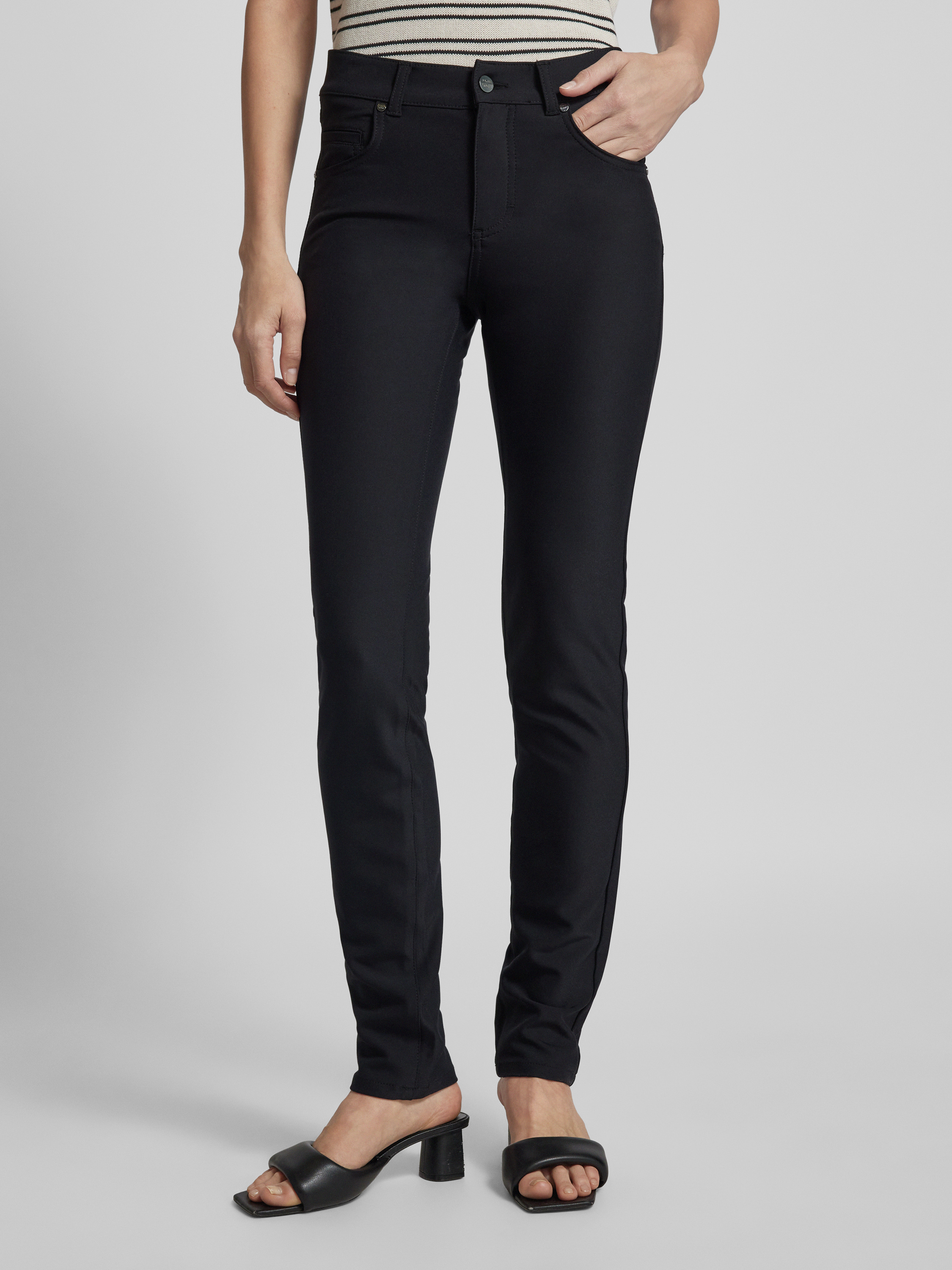 Straight leg broek in 5-pocketmodel, model 'CICI' in zwart