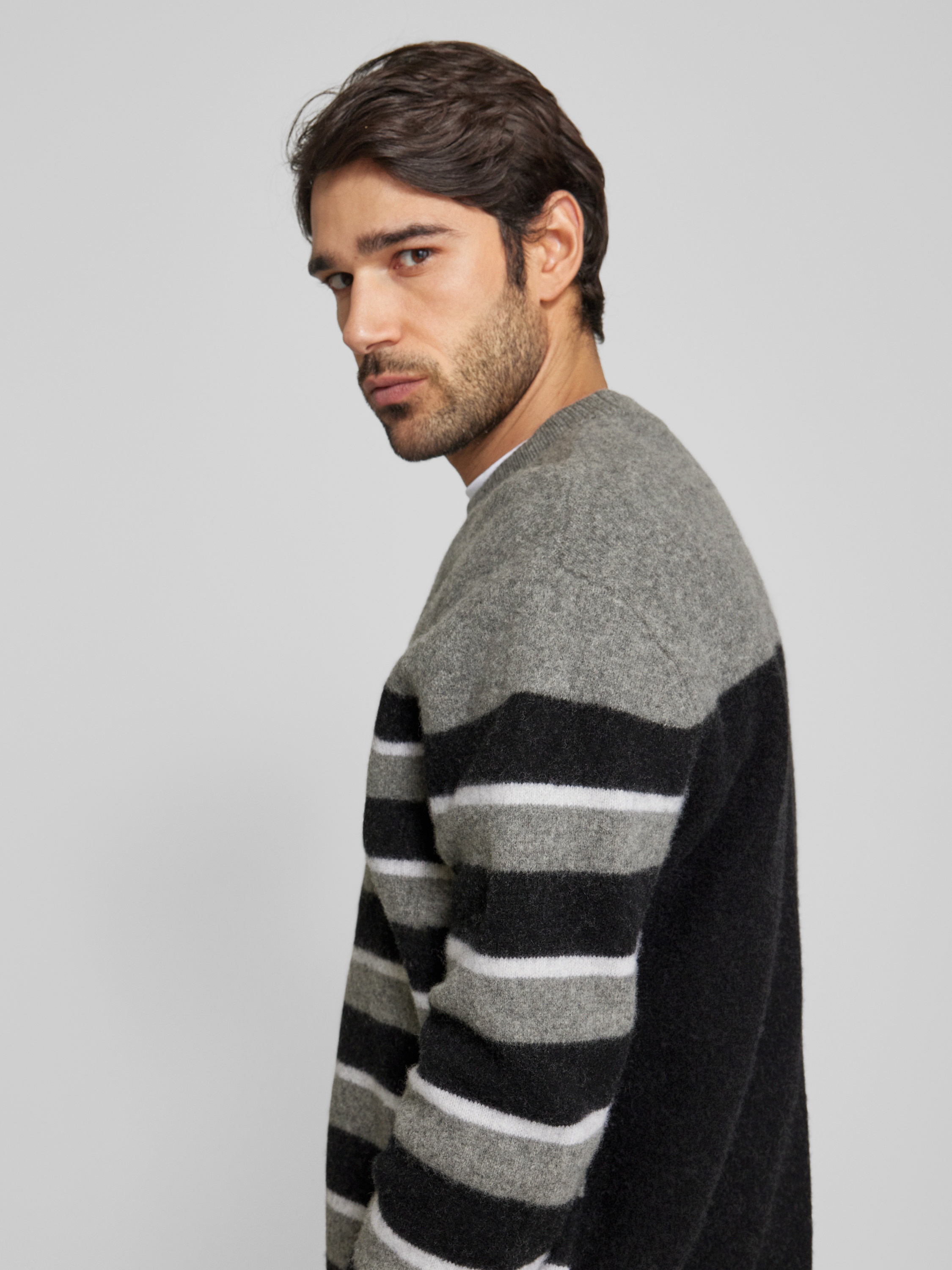 ANNARRGebreide pullover met ribboorden, model 'ROLF' in beige