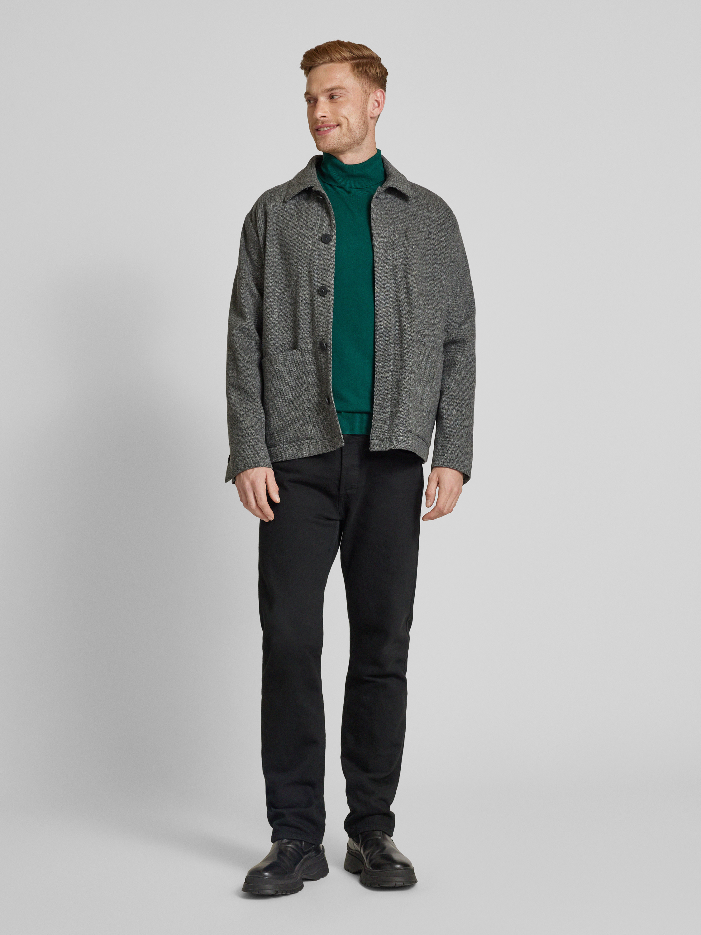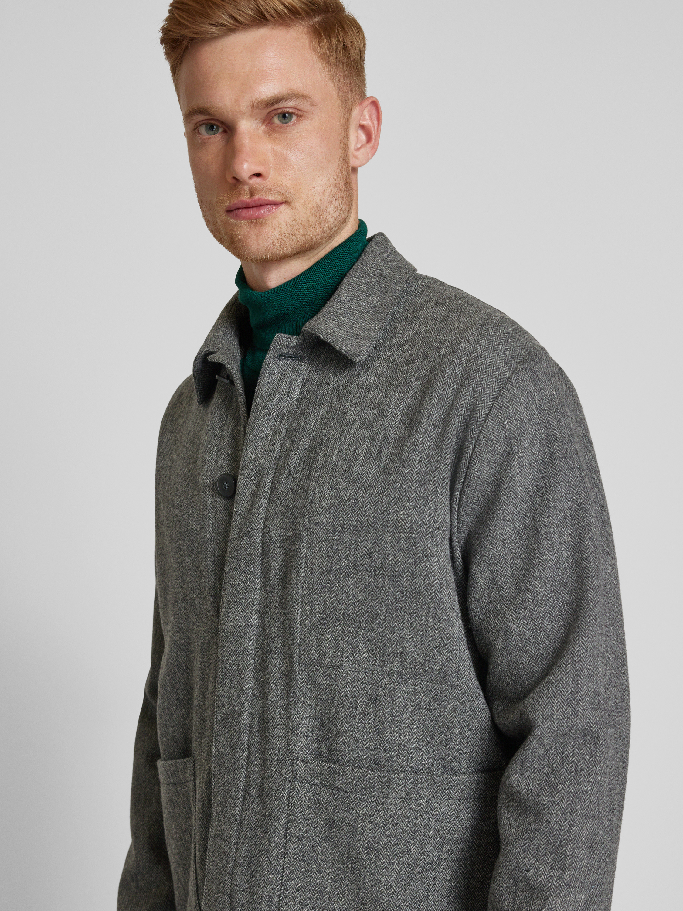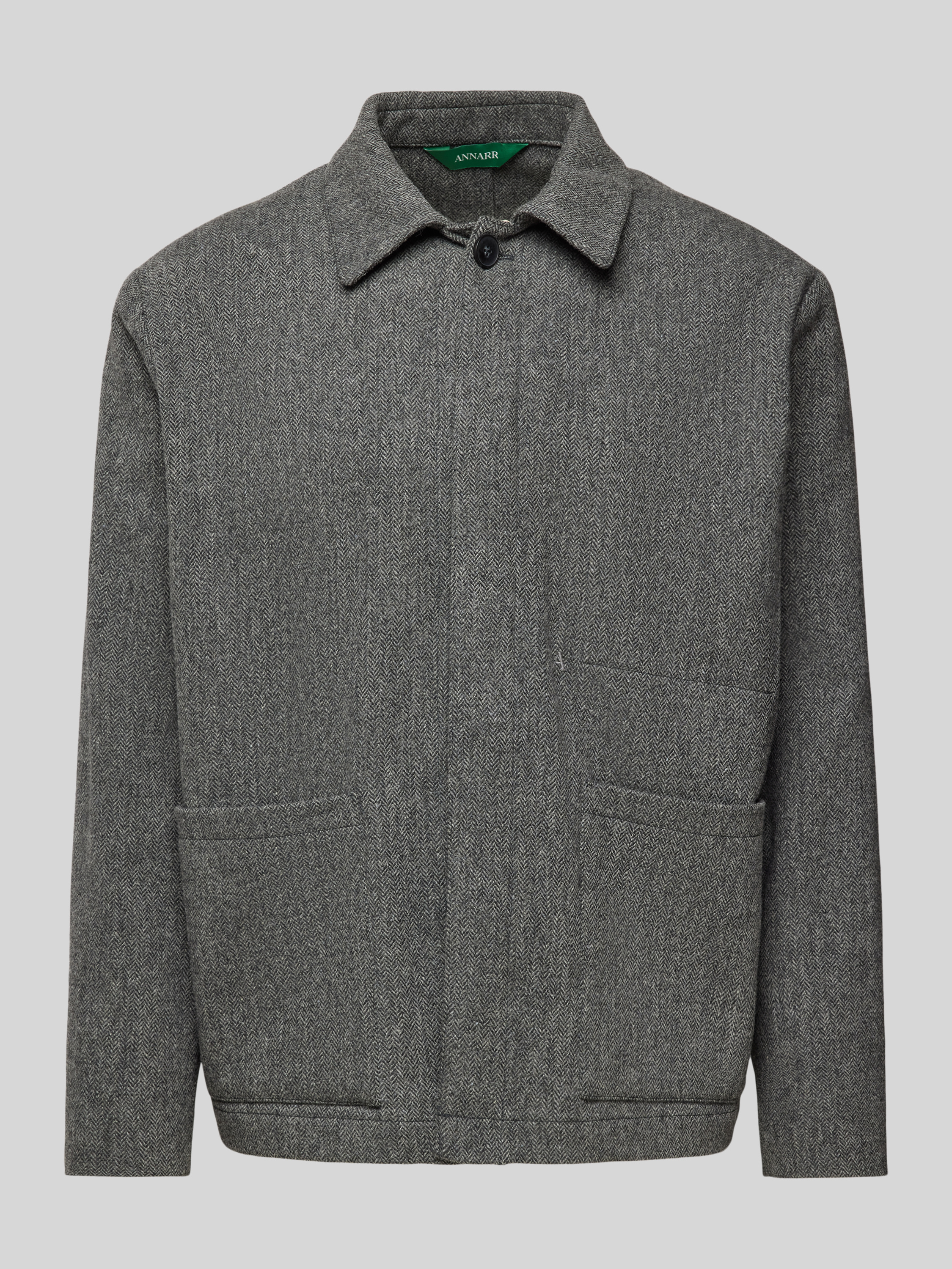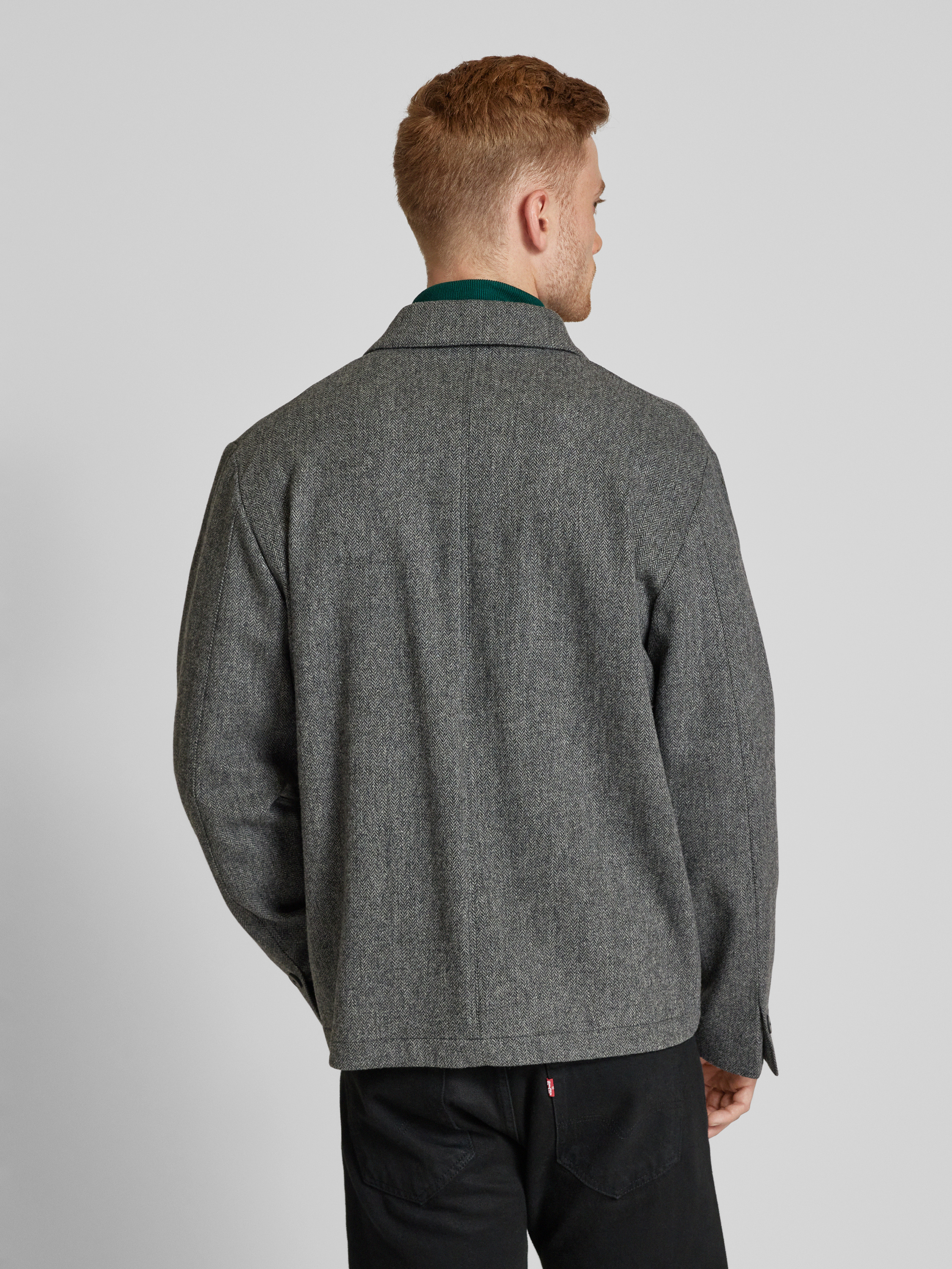 Overhemdjack van wol met kentkraag, model 'HERRINGBONE' in lichtgrijs gemêleerd