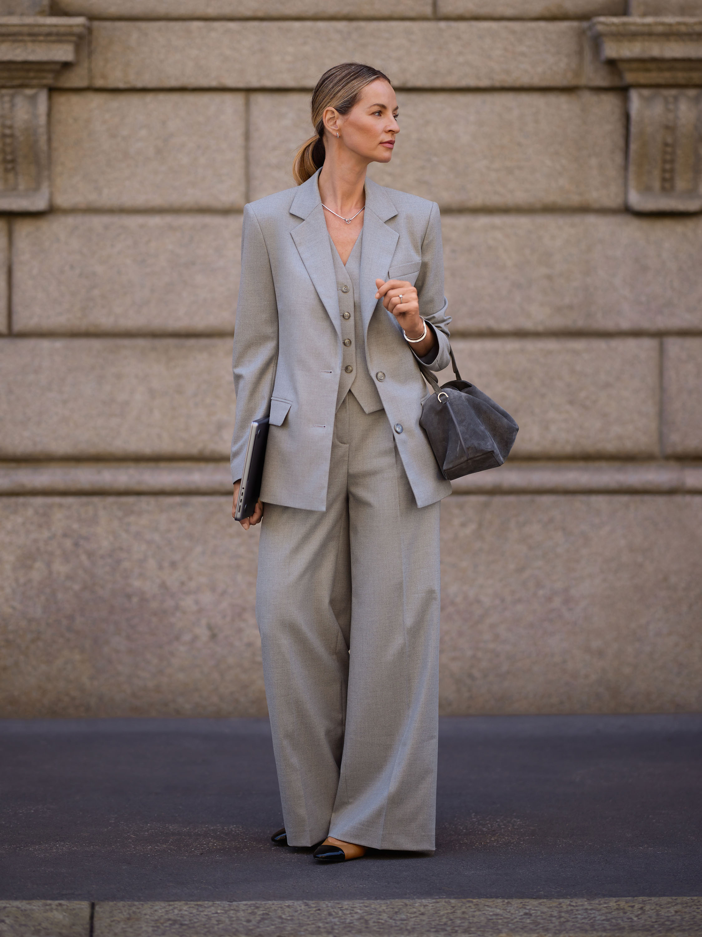 Blazer met reverskraag - capsulegarderobe in middengrijs gemêleerd