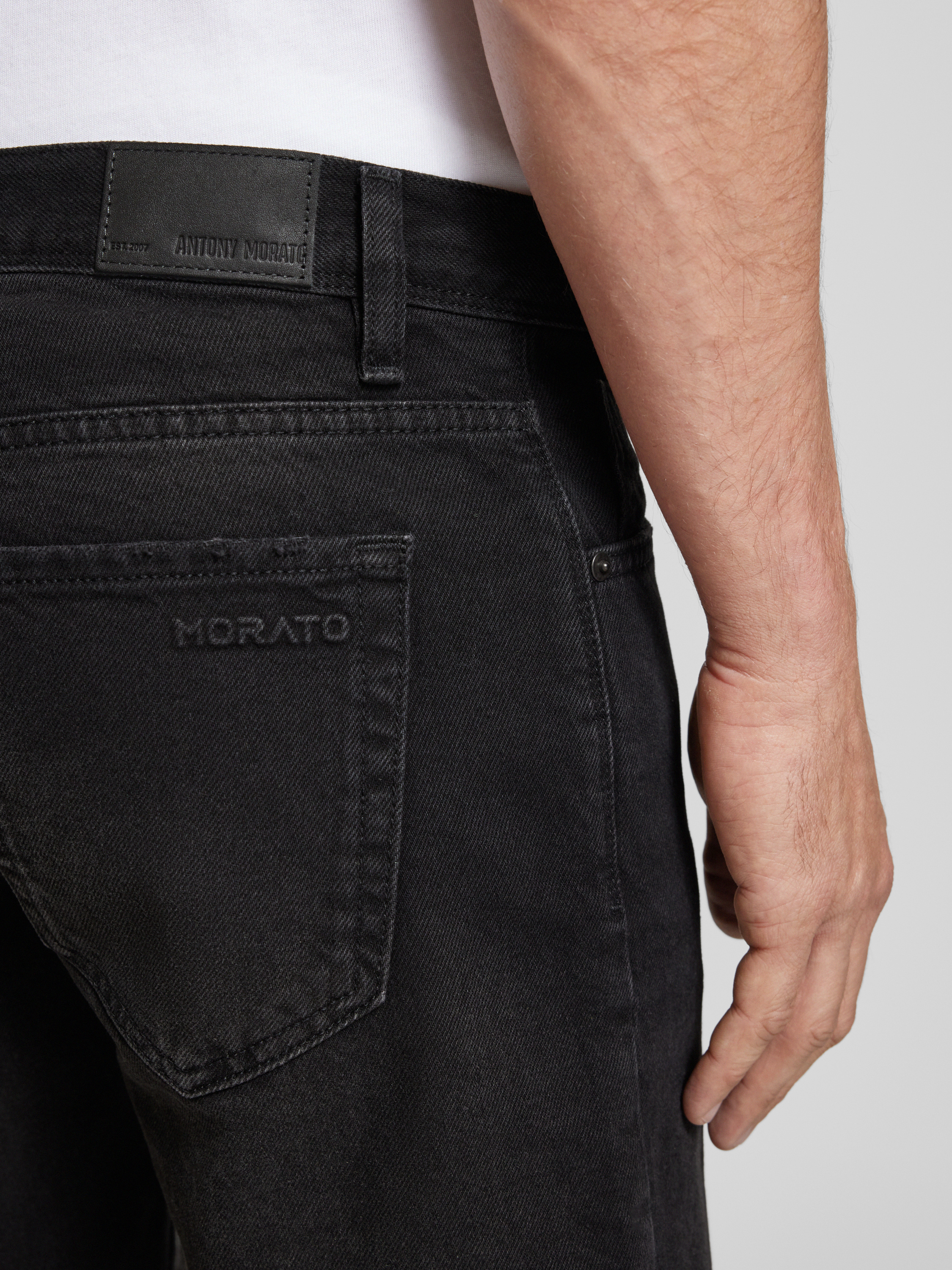 Korte slim fit jeans in 5-pocketmodel in zwart