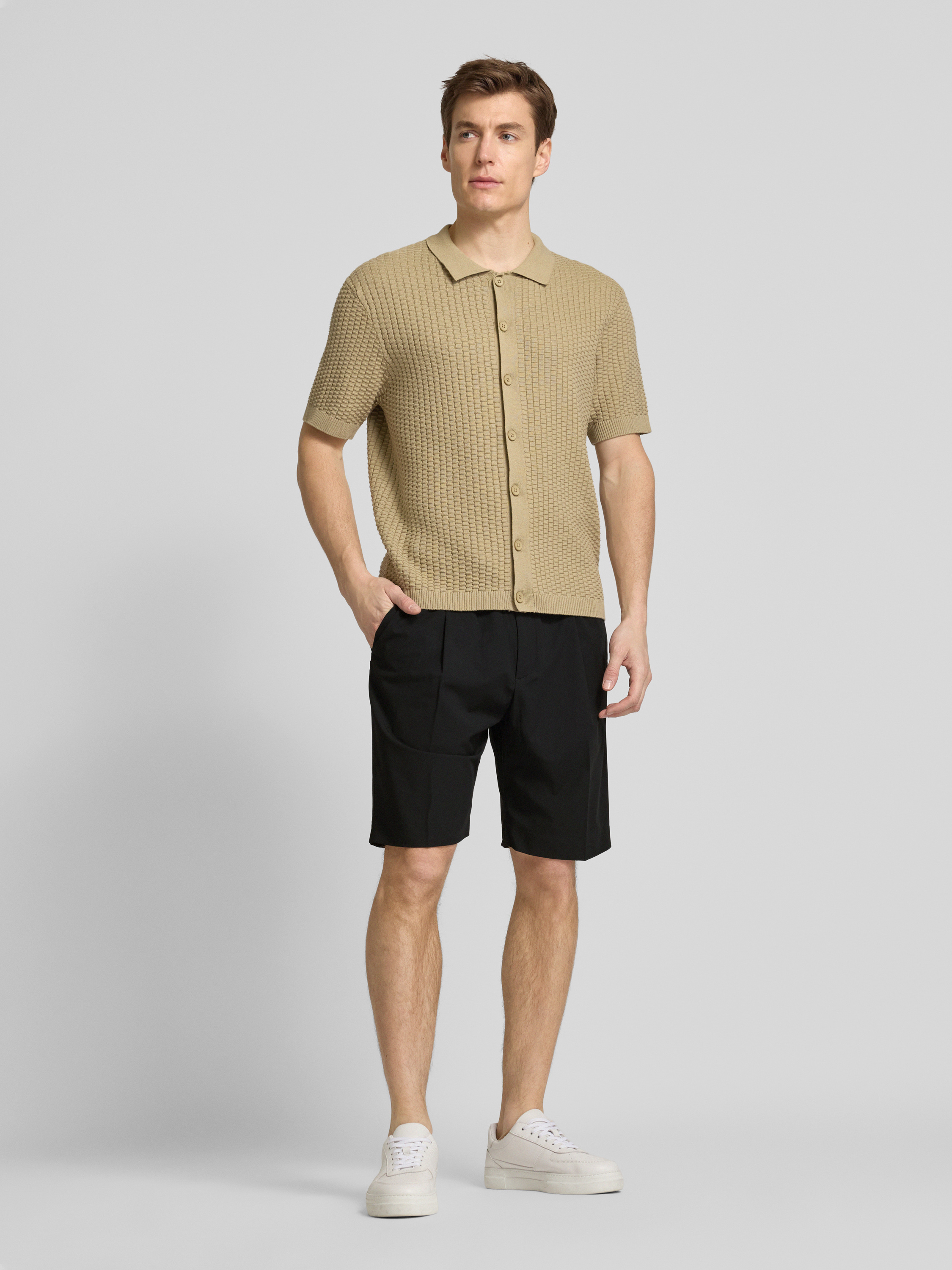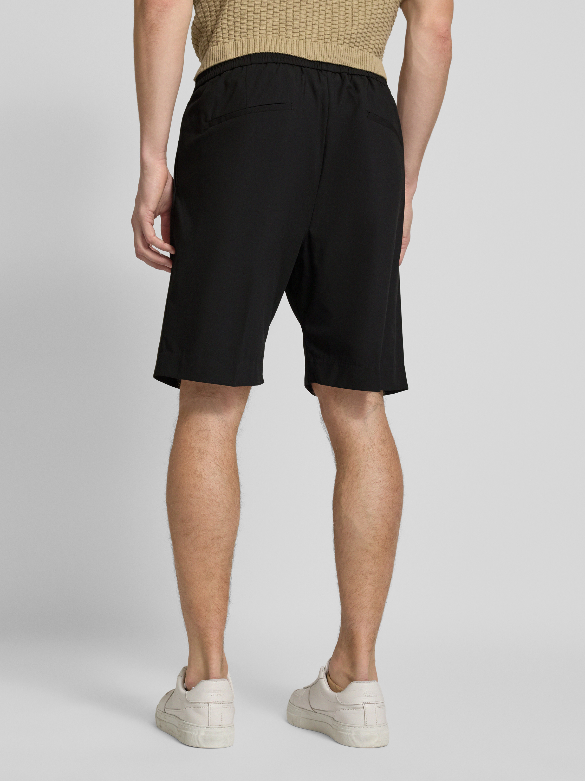 Regular fit korte broek met bandplooien, model 'NEIL' in zwart