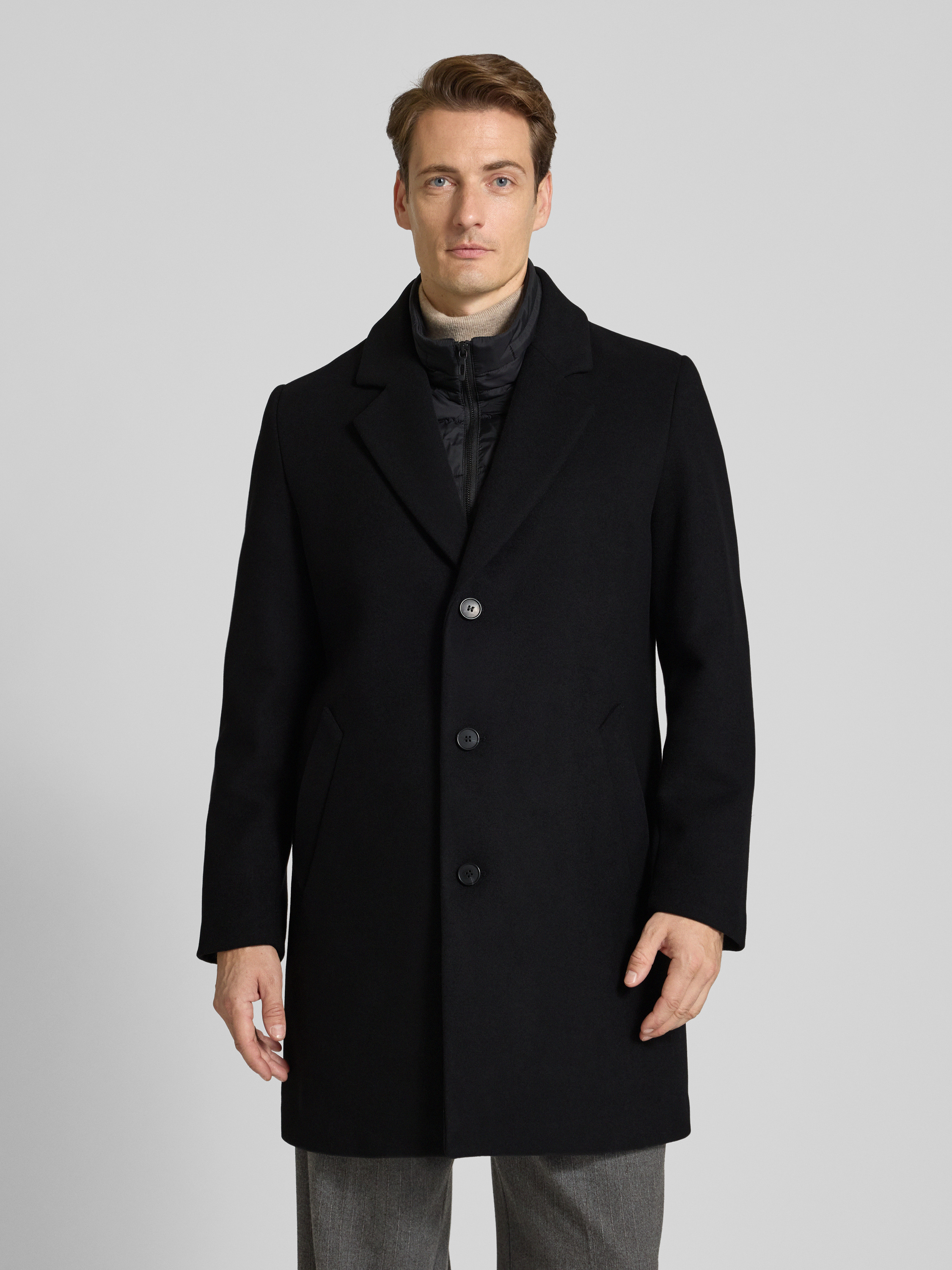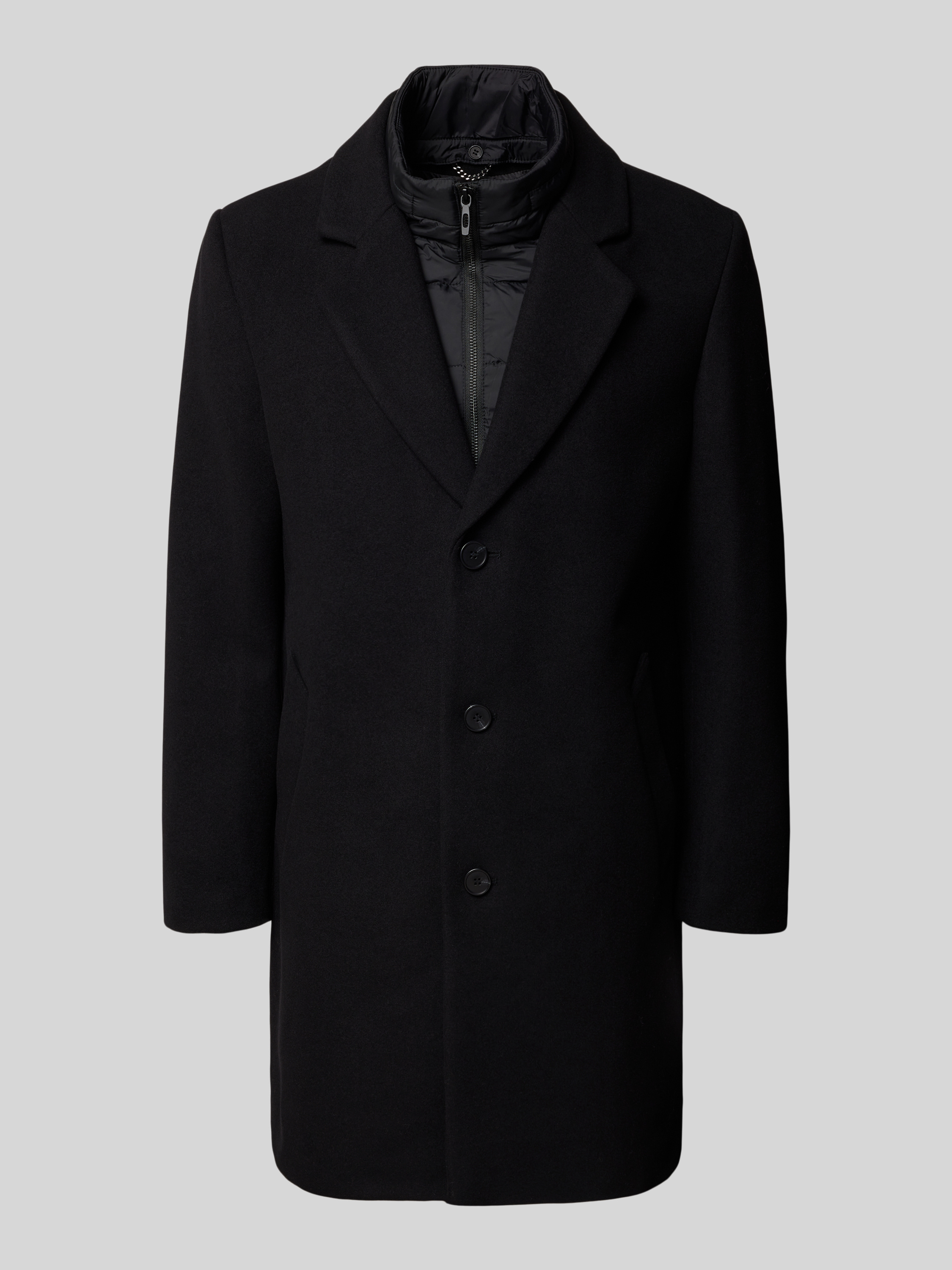 Regular fit lange jas met reverskraag, model 'Rupert' in zwart