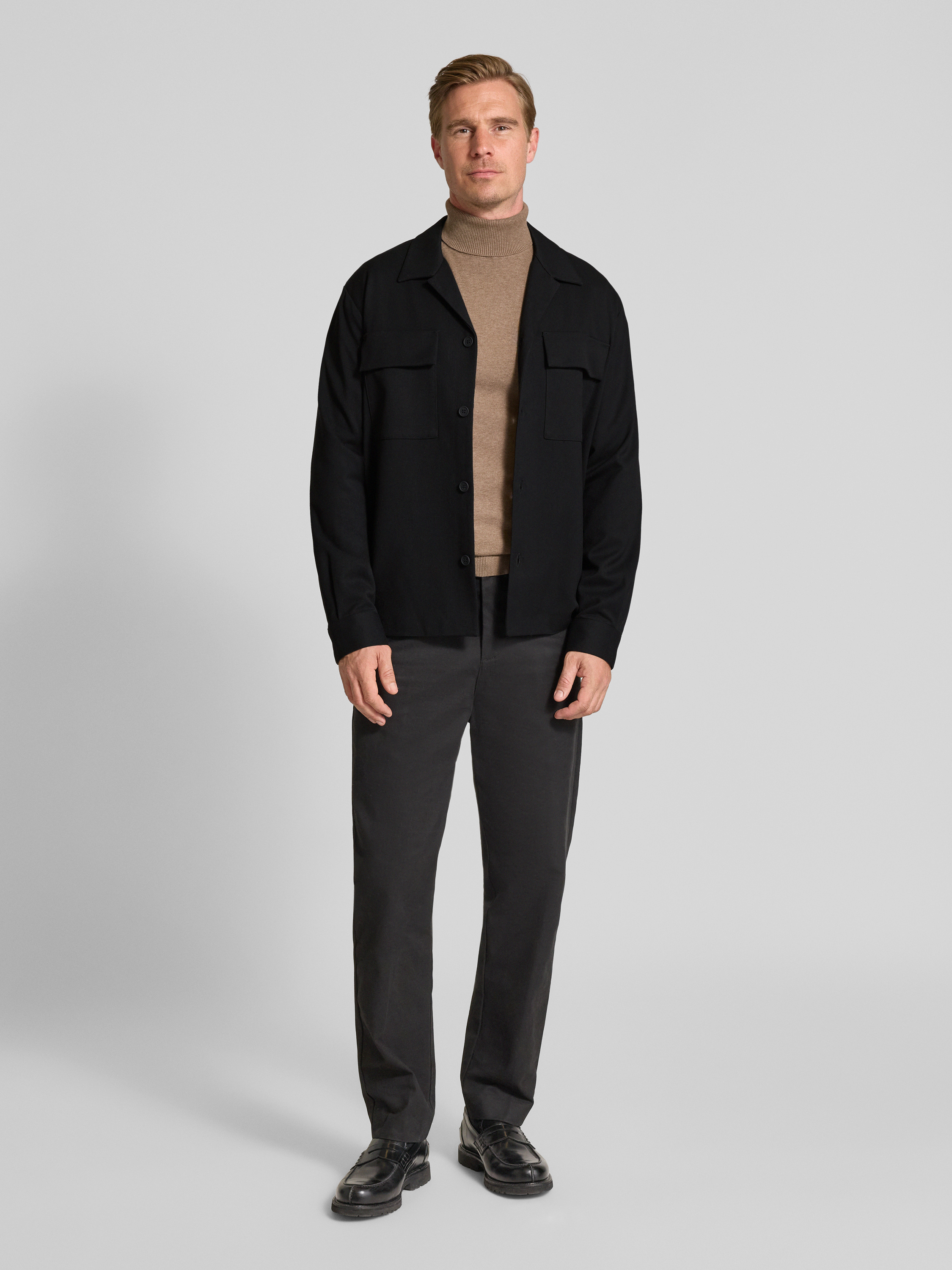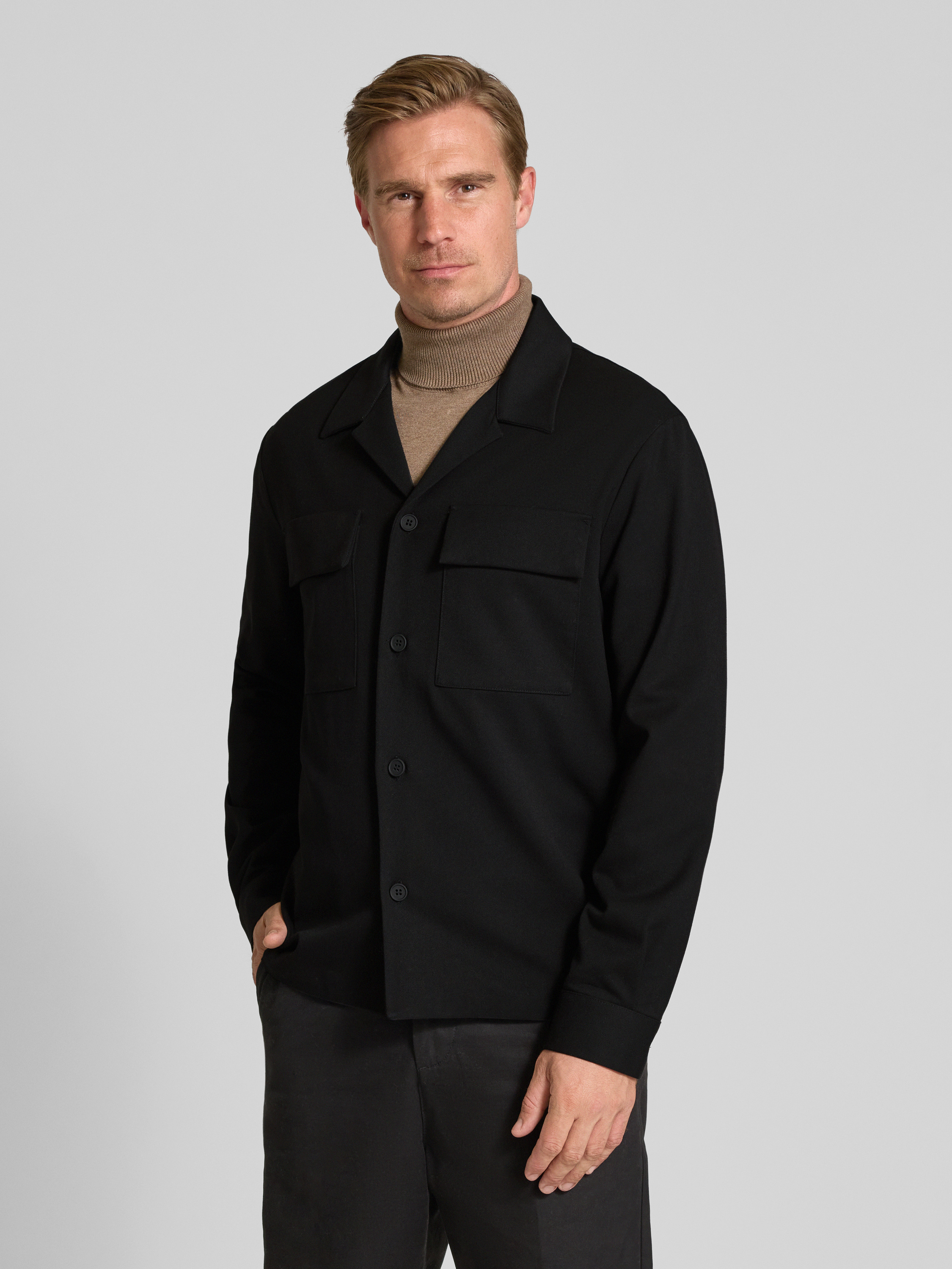 Regular fit overhemdjack met reverskraag in zwart