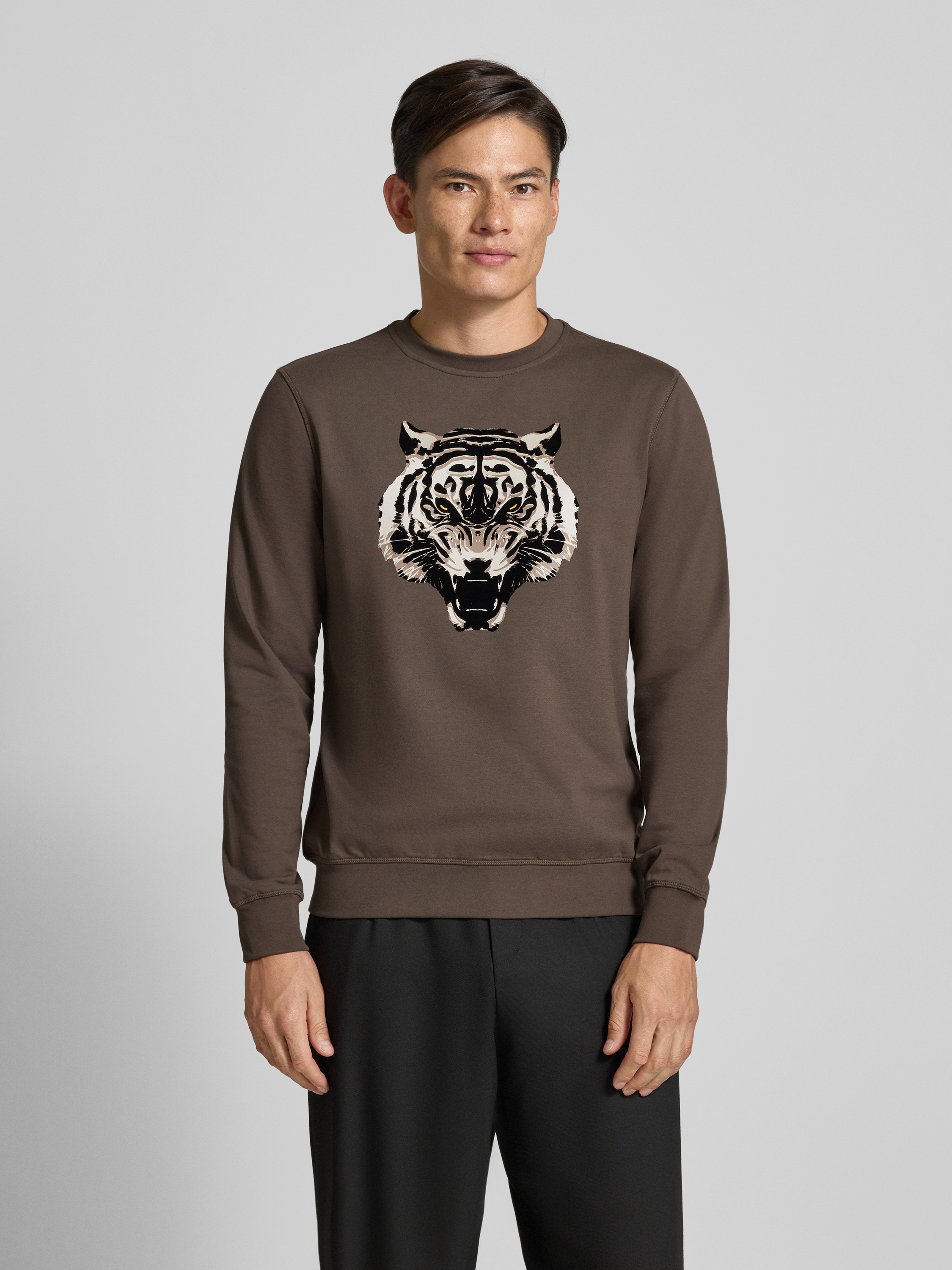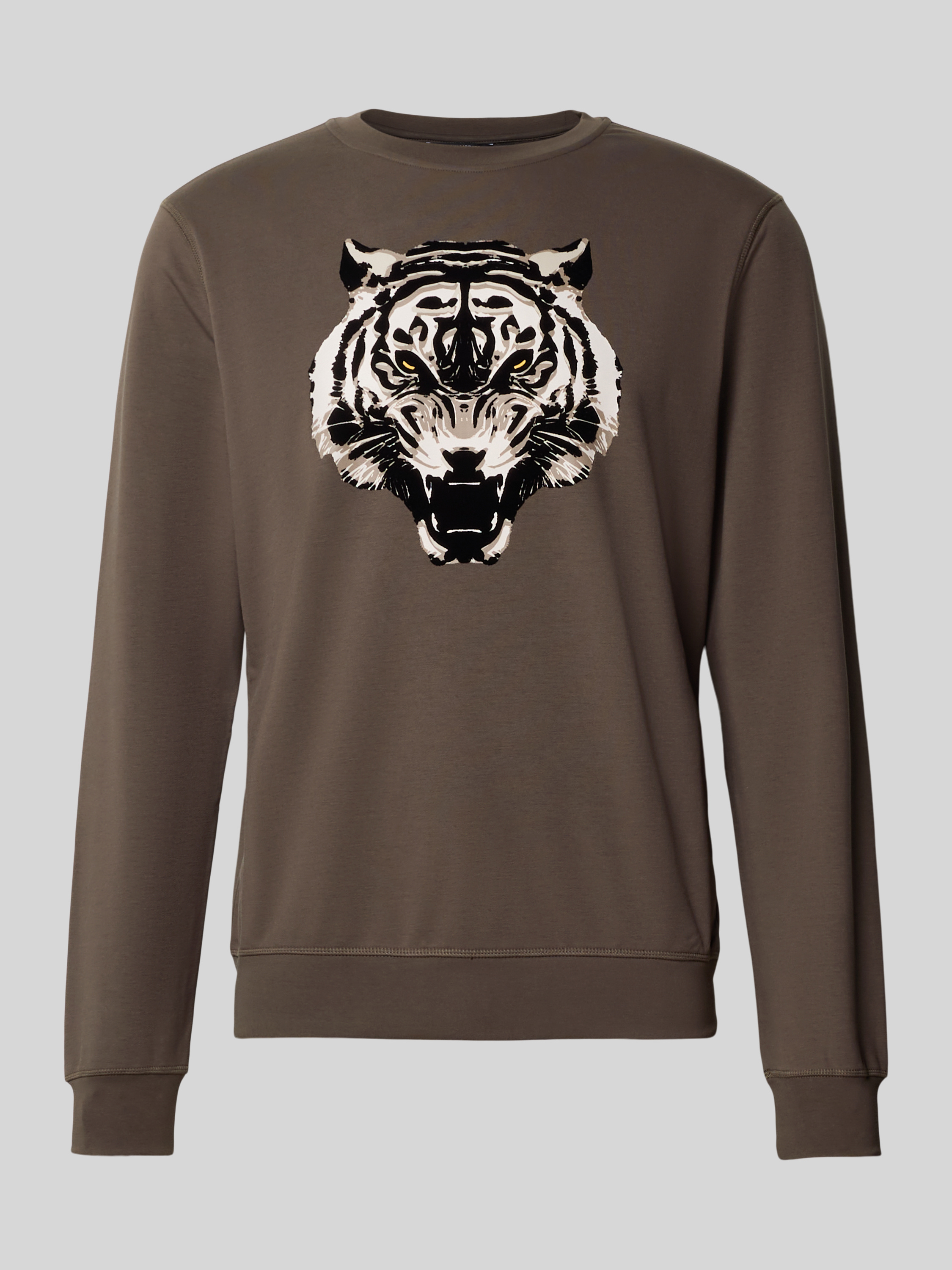 Regular fit sweatshirt met dierenprint in olijfgroen