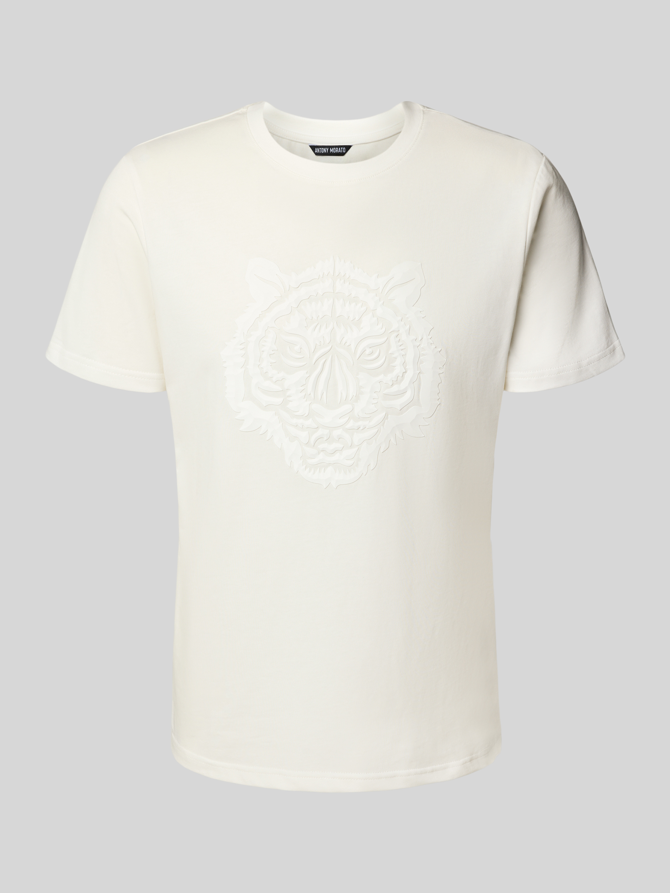 Regular fit T-shirt met dierenprint, model 'Jer' in offwhite
