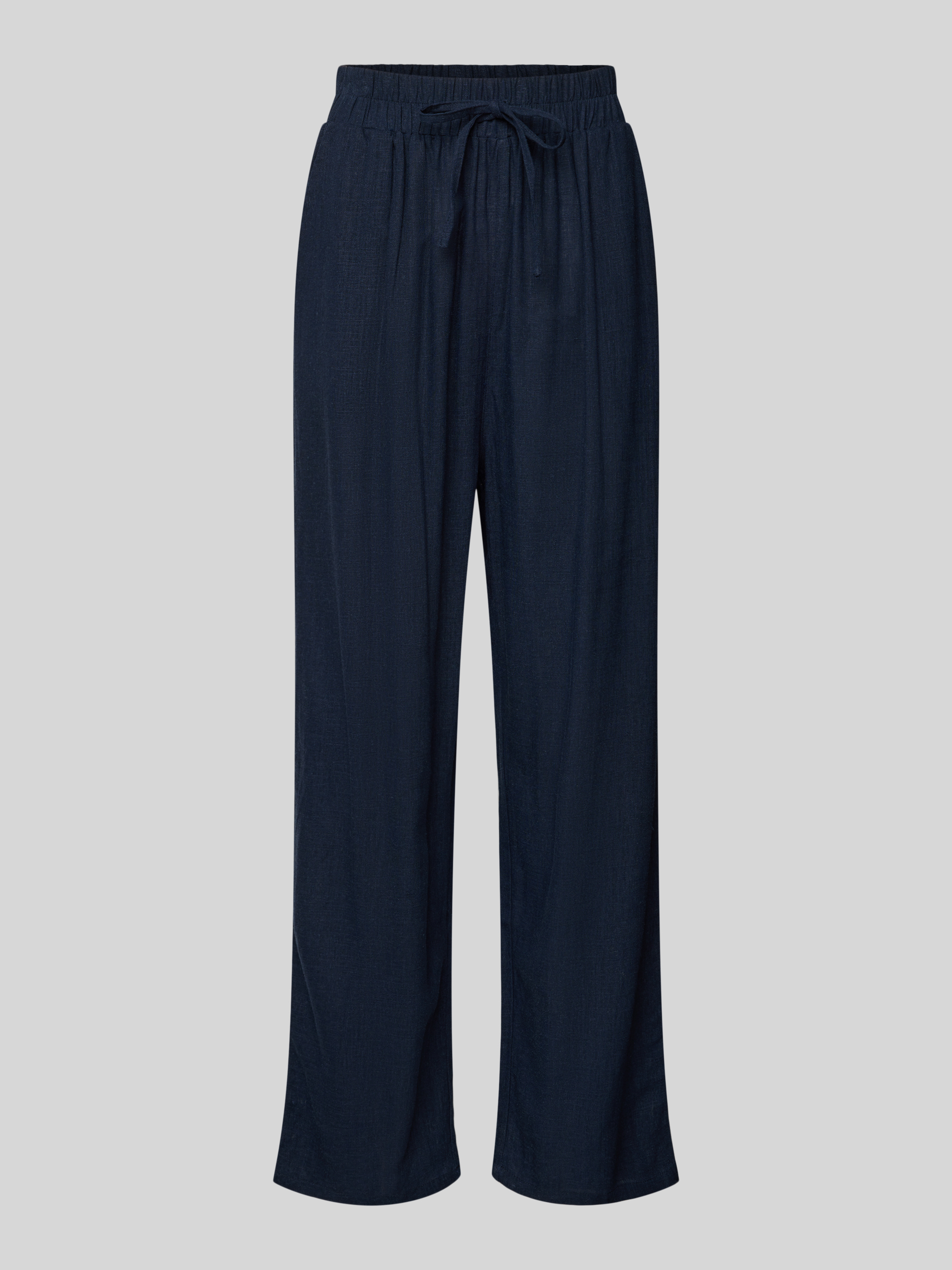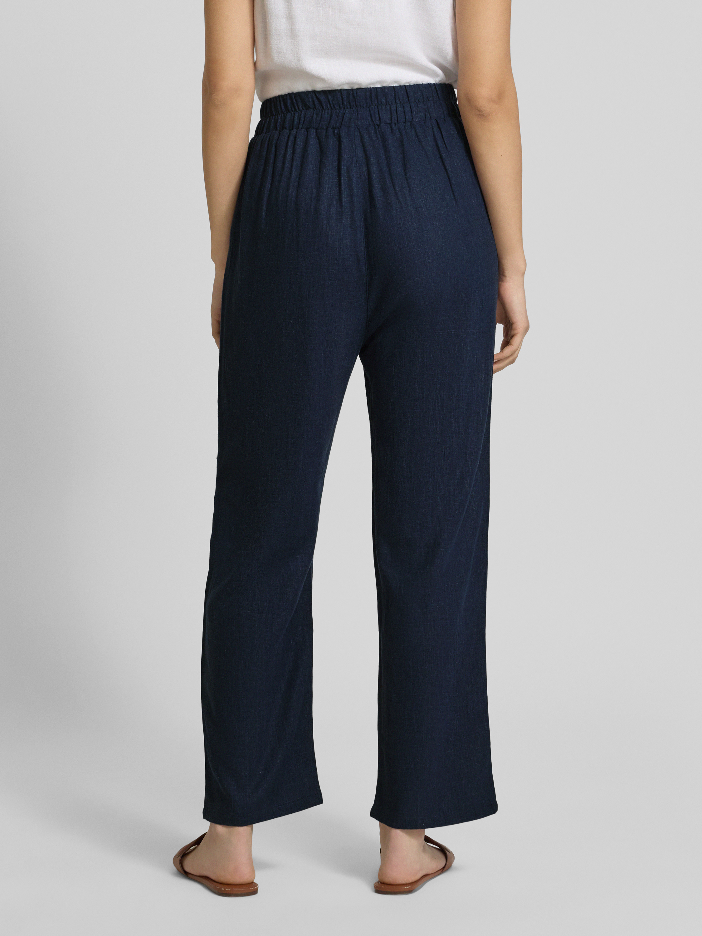 Broek van een mix van viscose en linnen met elastische band in marineblauw