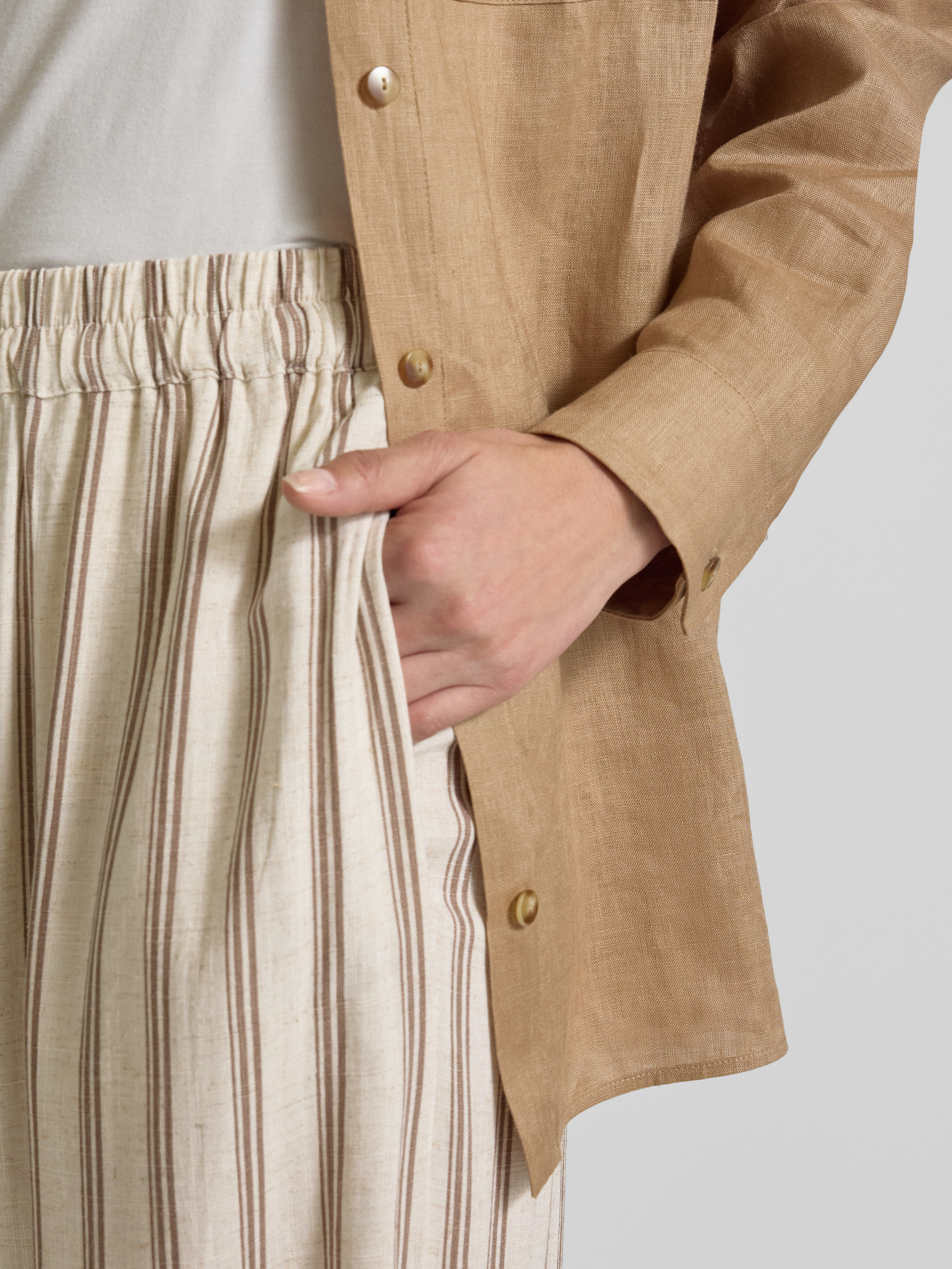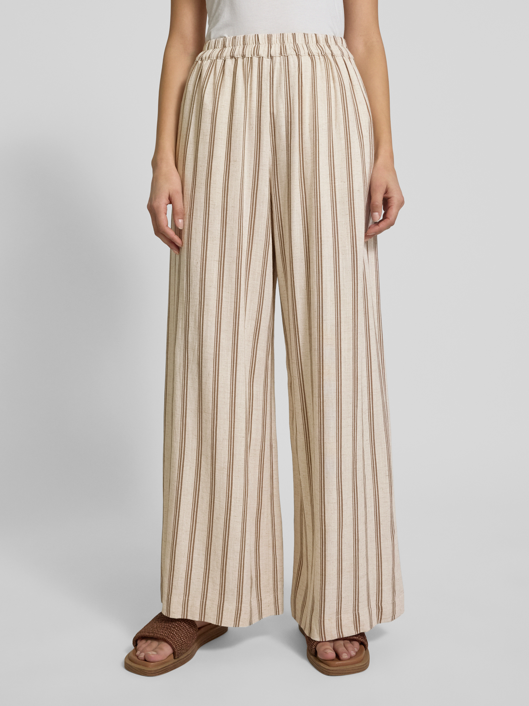 Broek van een mix van viscose en linnen met steekzakken in taupe